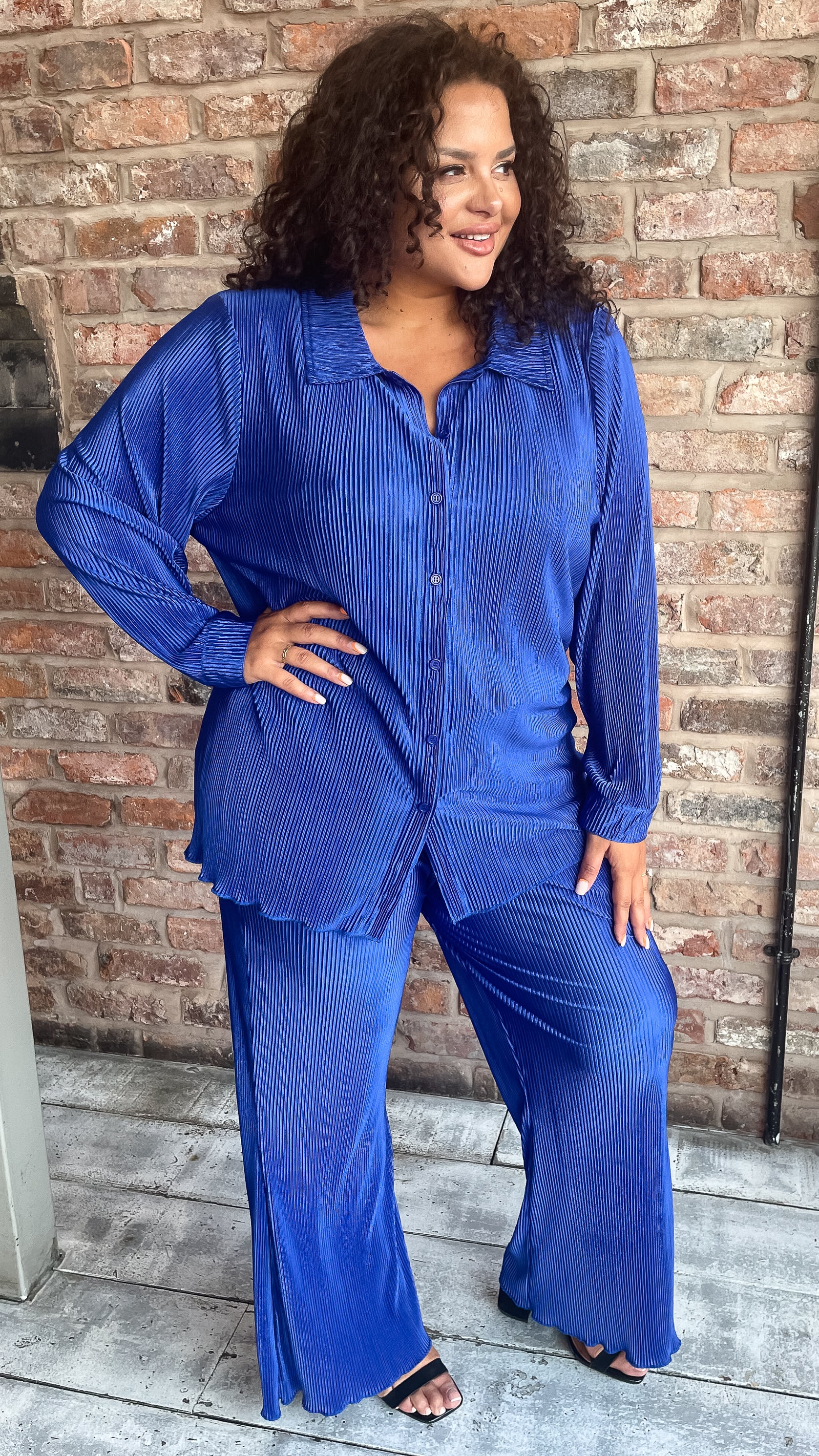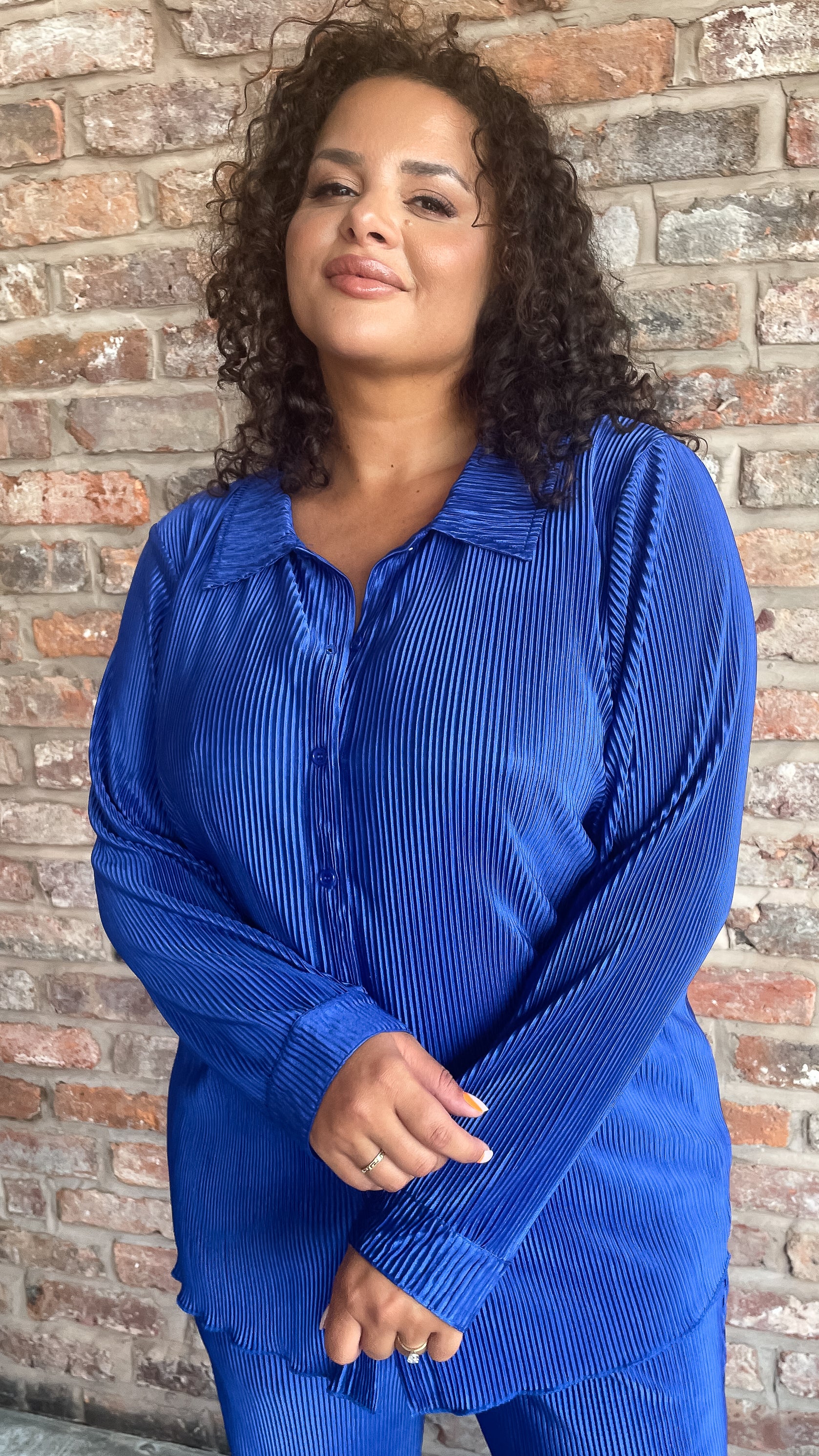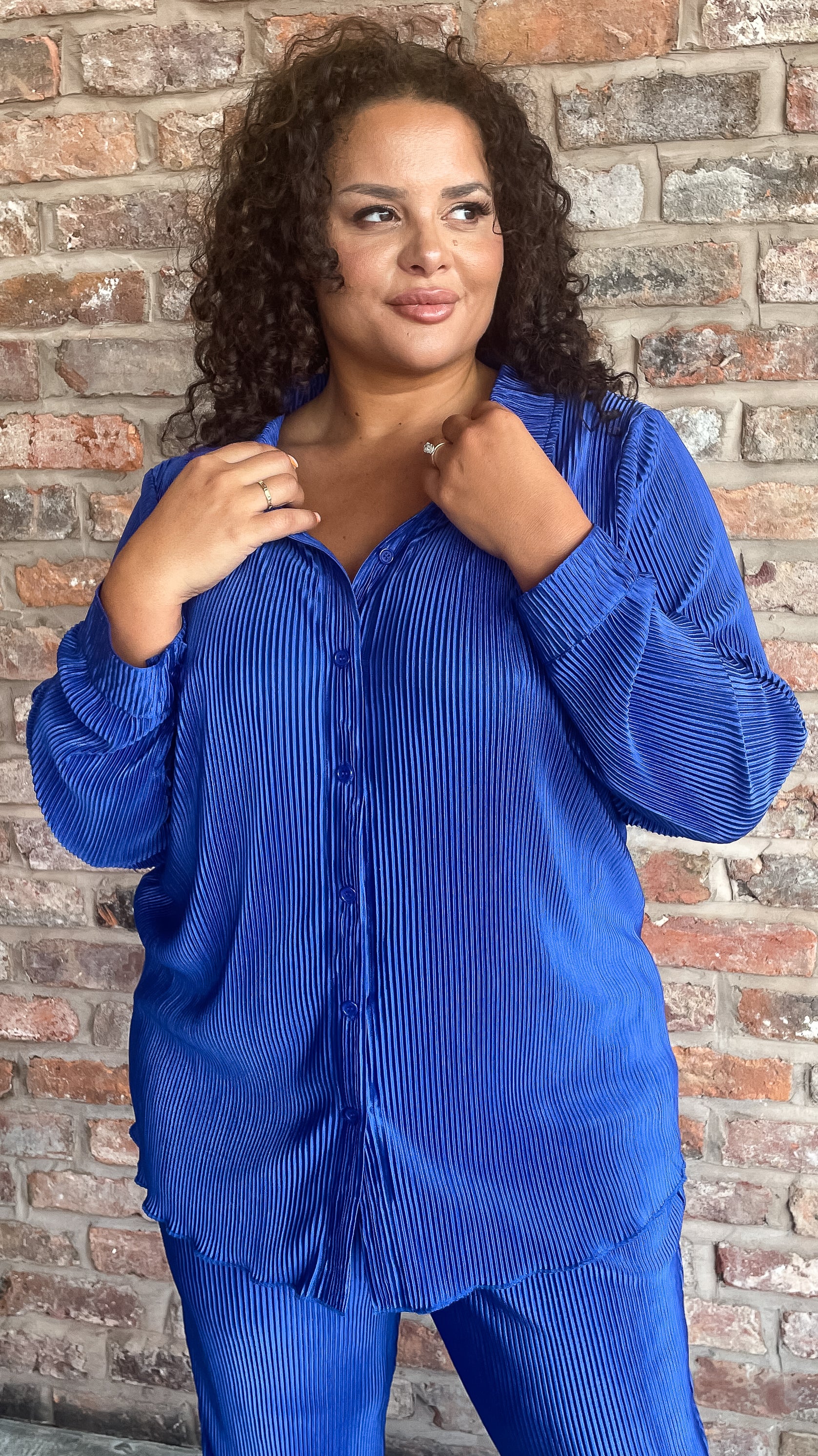 CurveWow Plisse Shirt Royal Blue