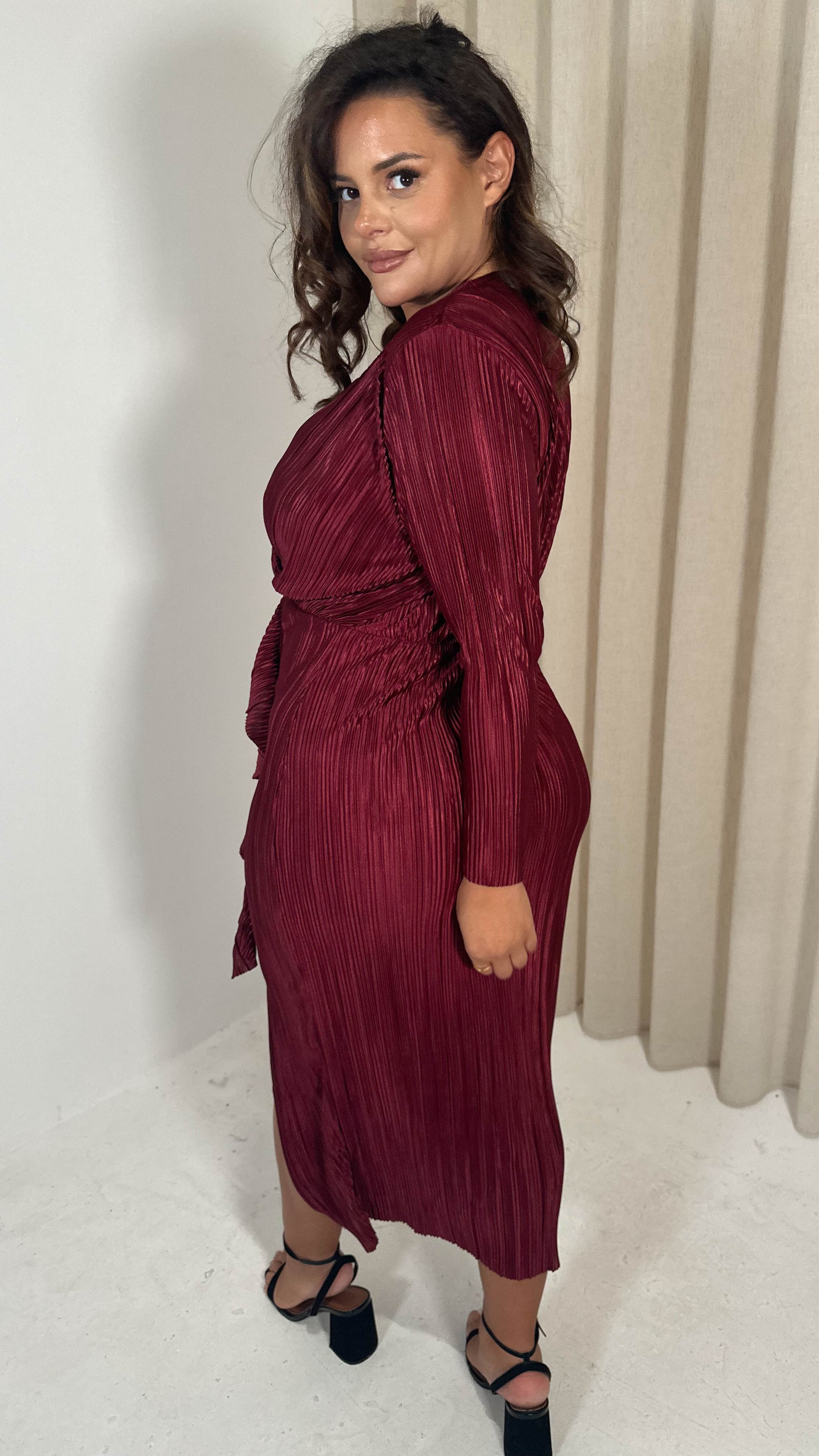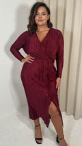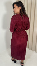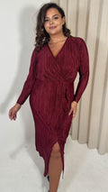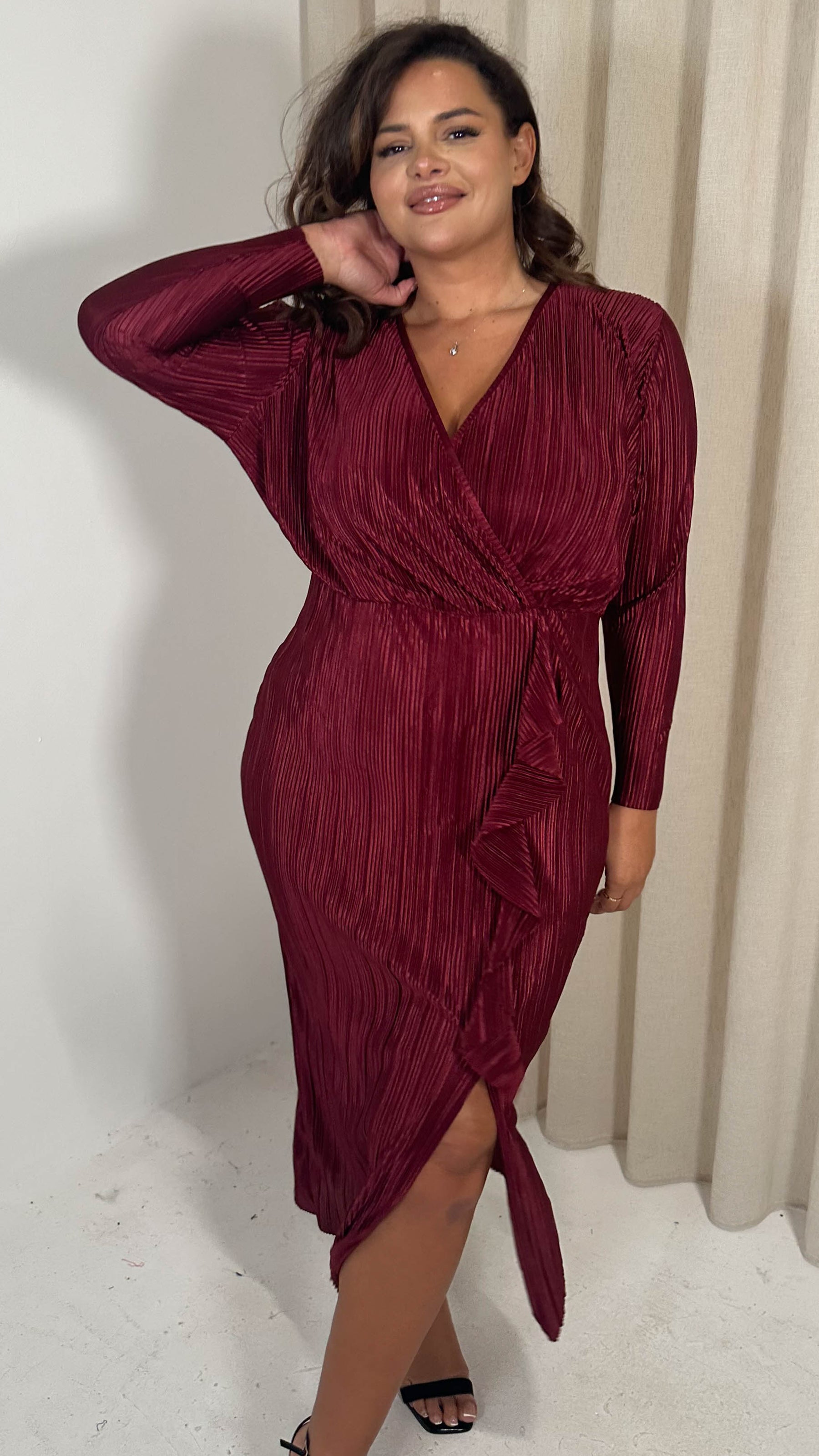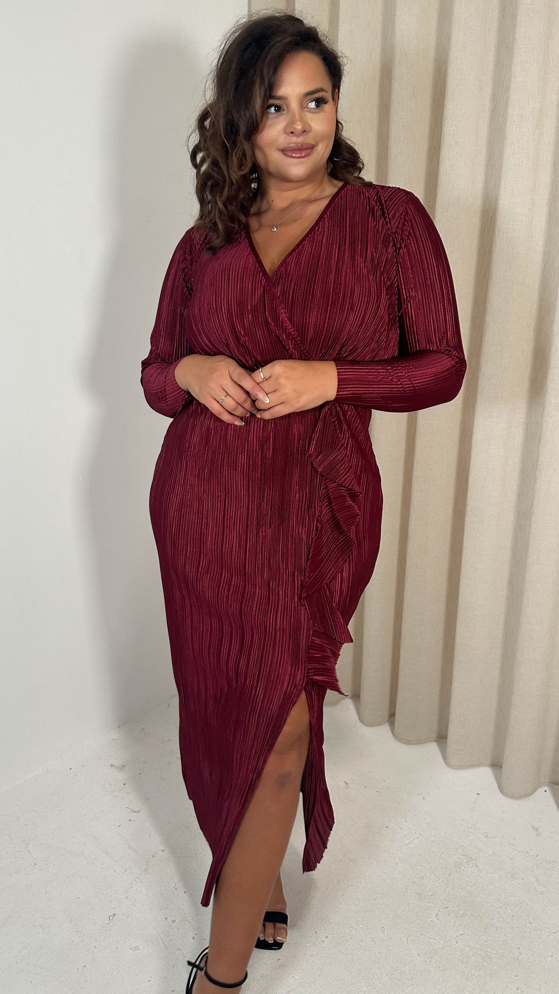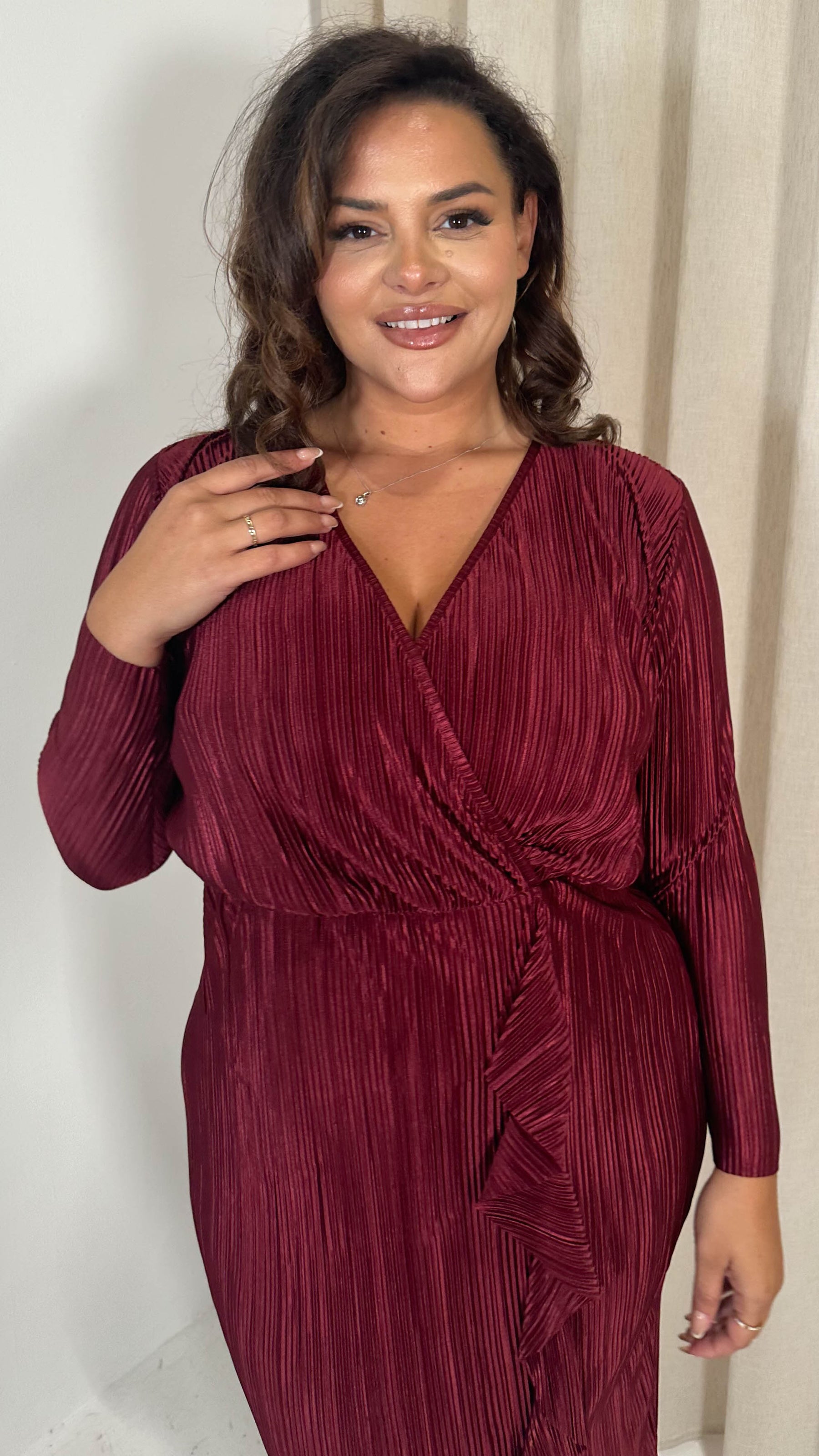 CurveWow Plisse Wrap Ruffle Maxi Dress Wine