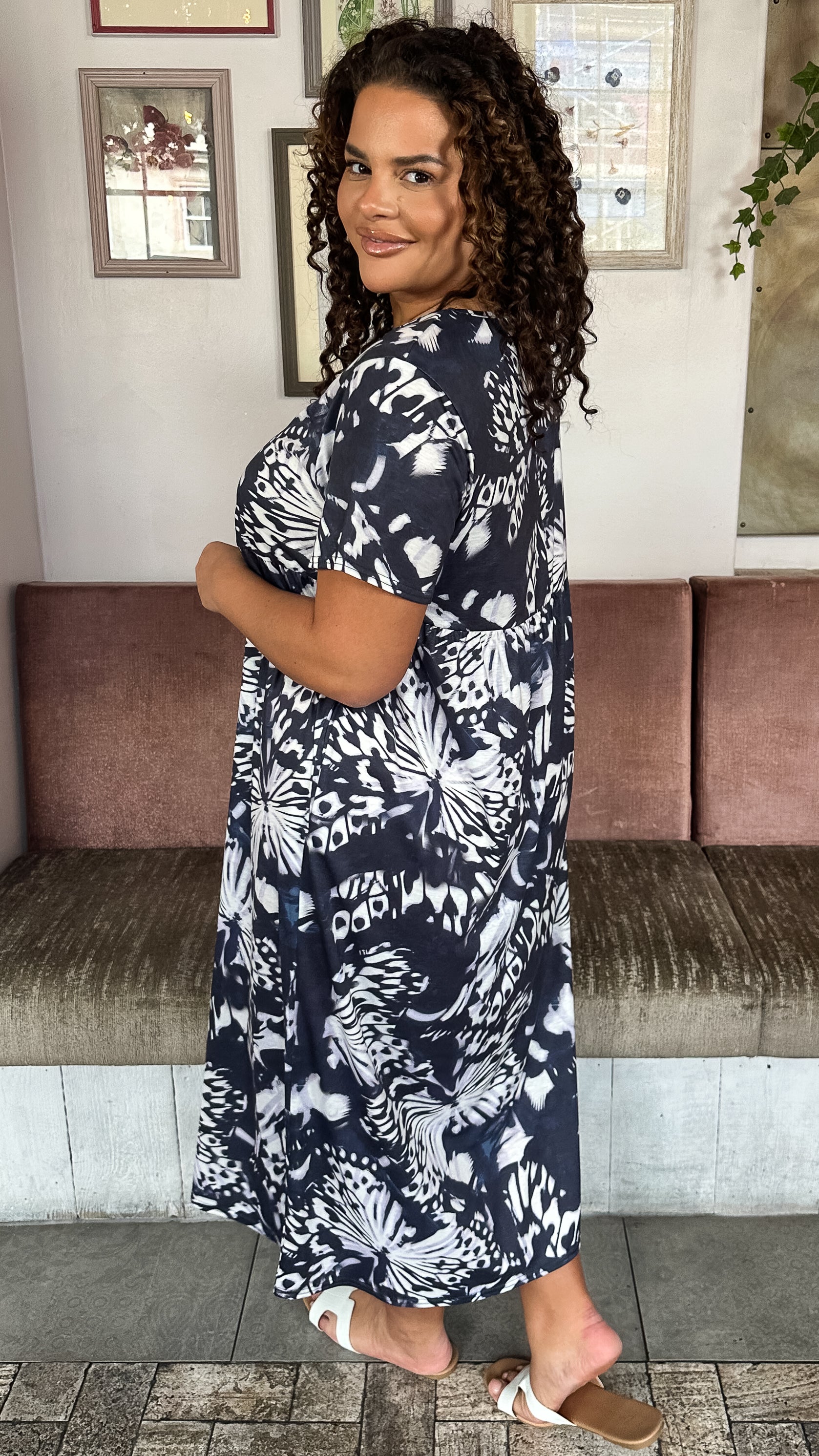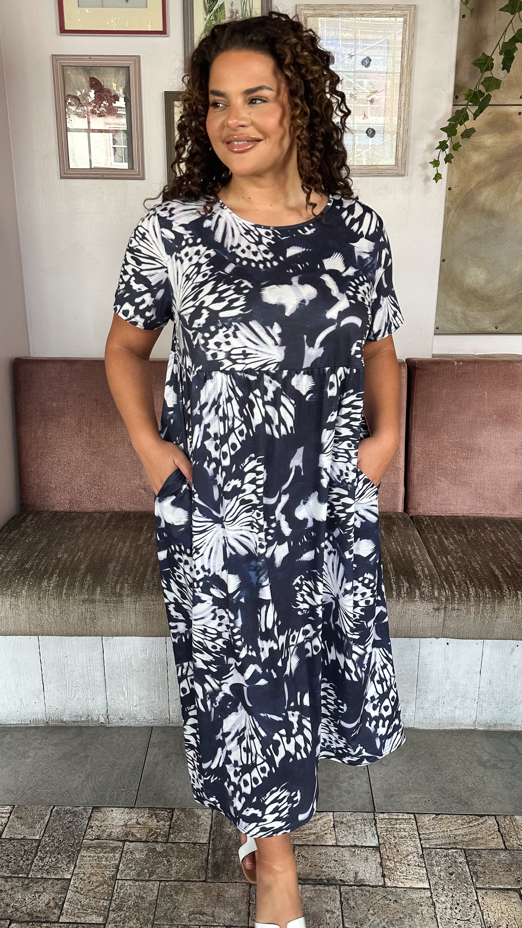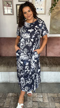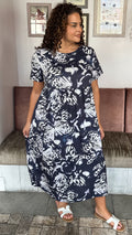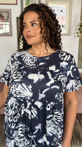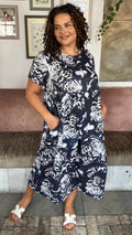 CurveWow Printed Pocket T-Shirt Dress Navy Butterfly