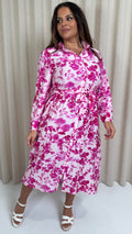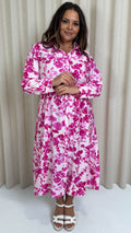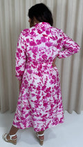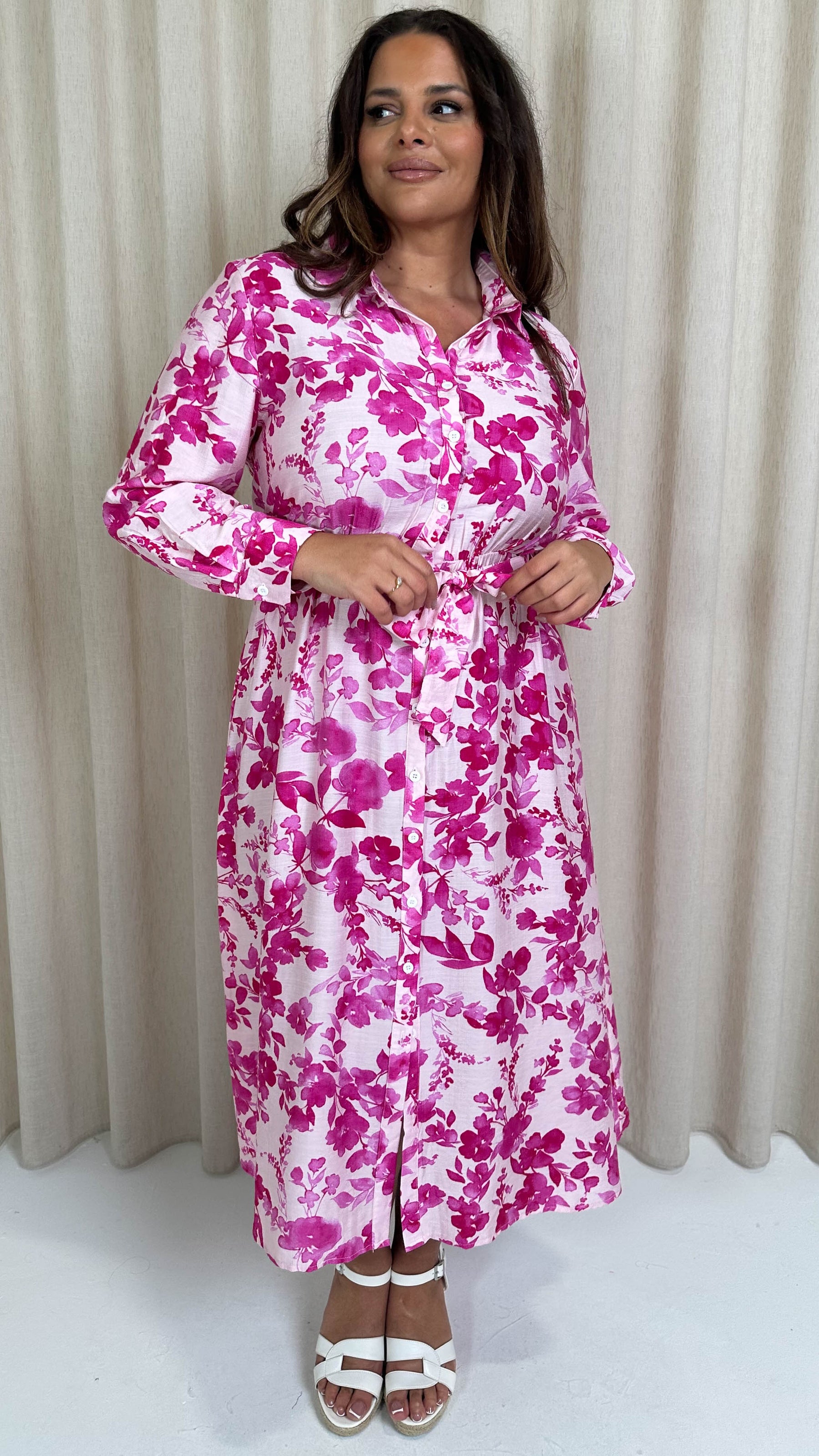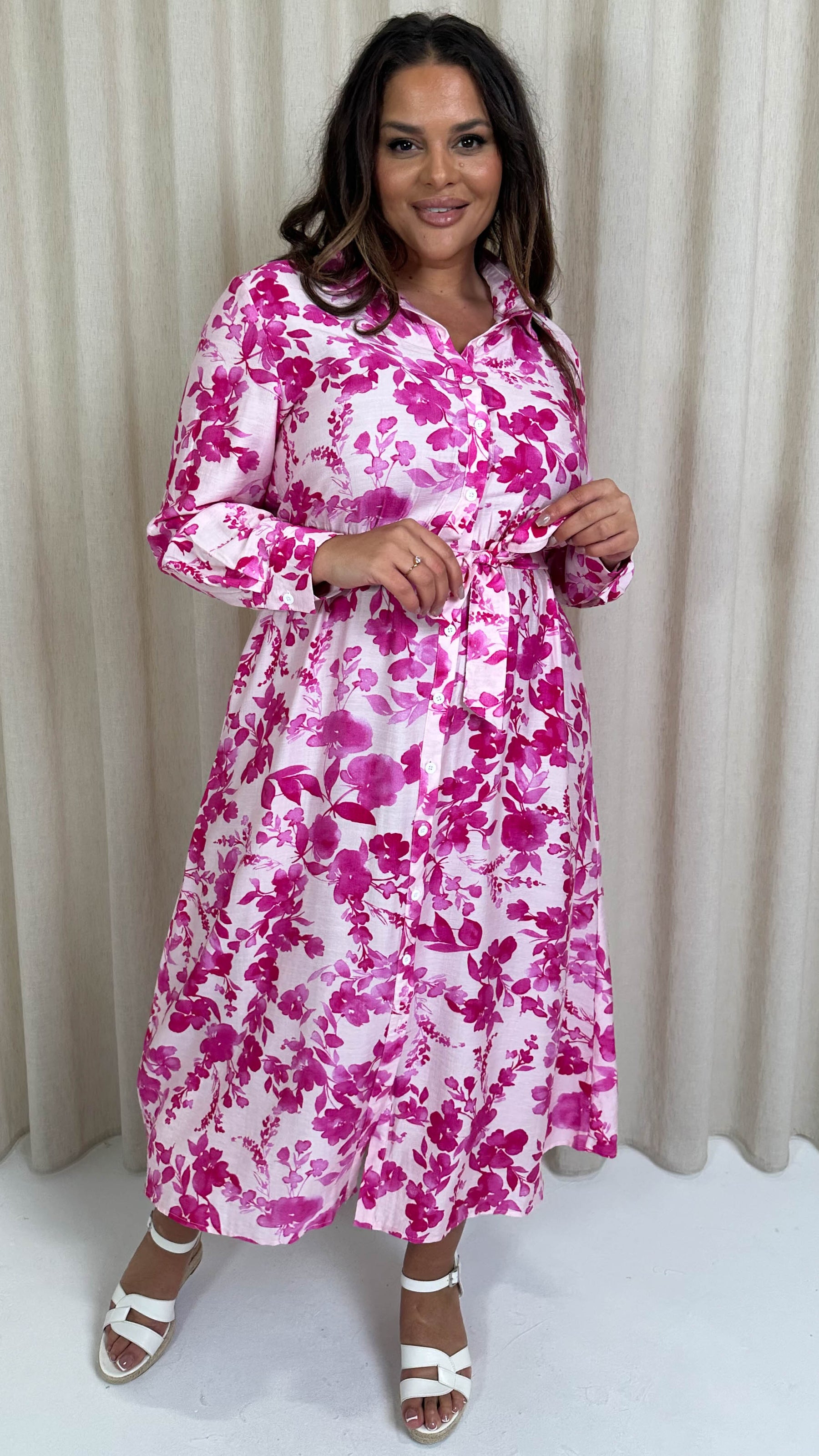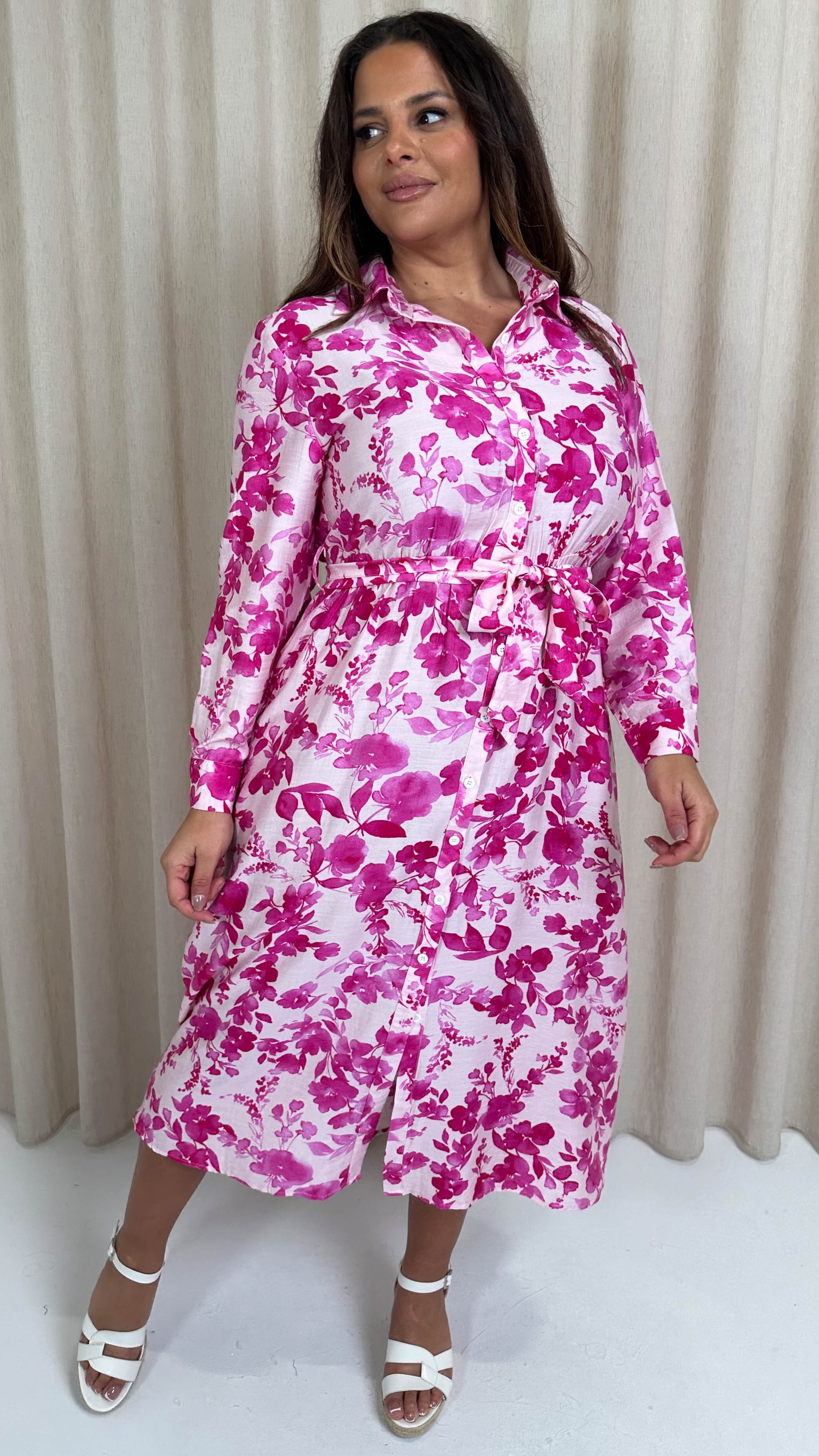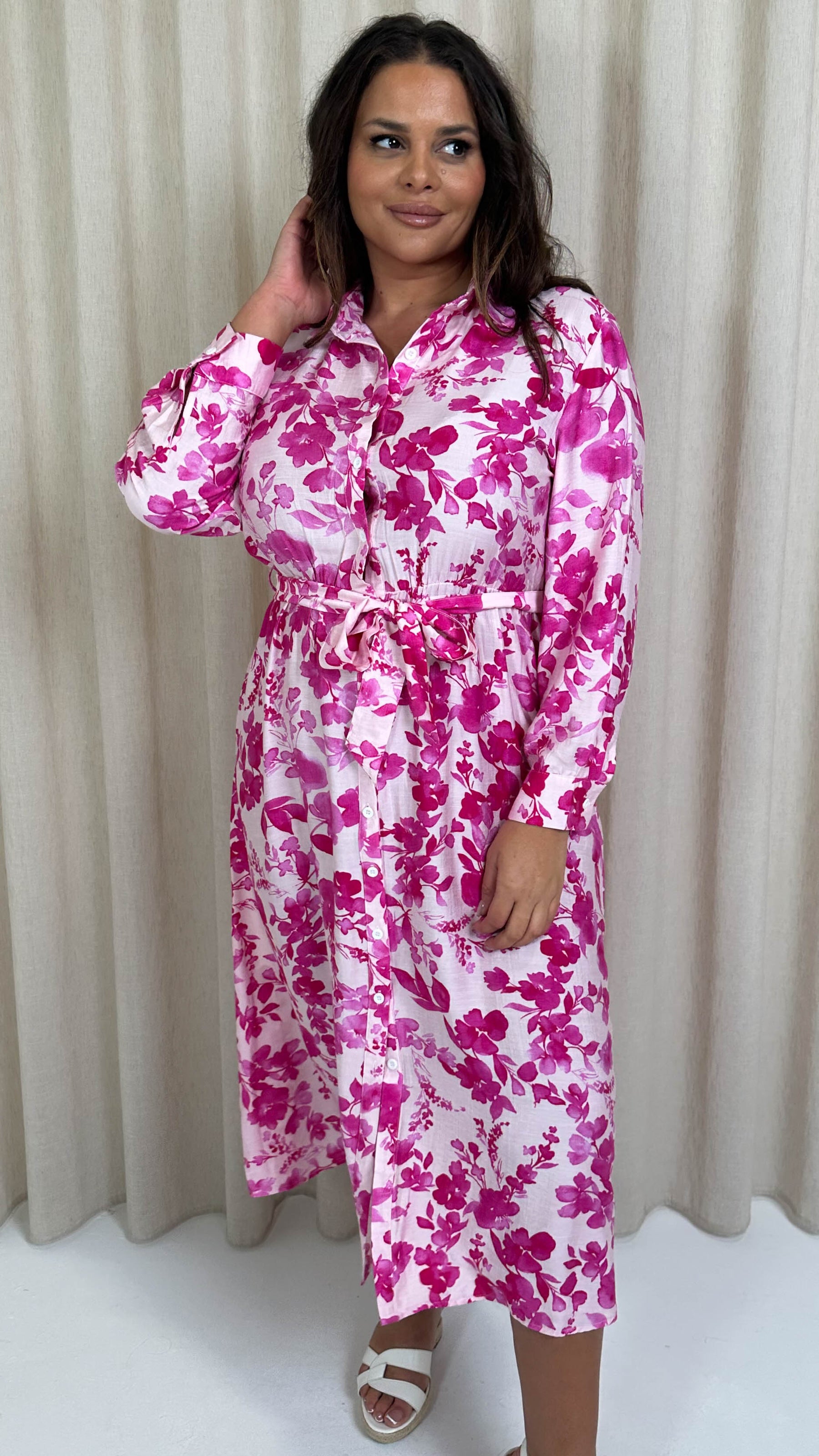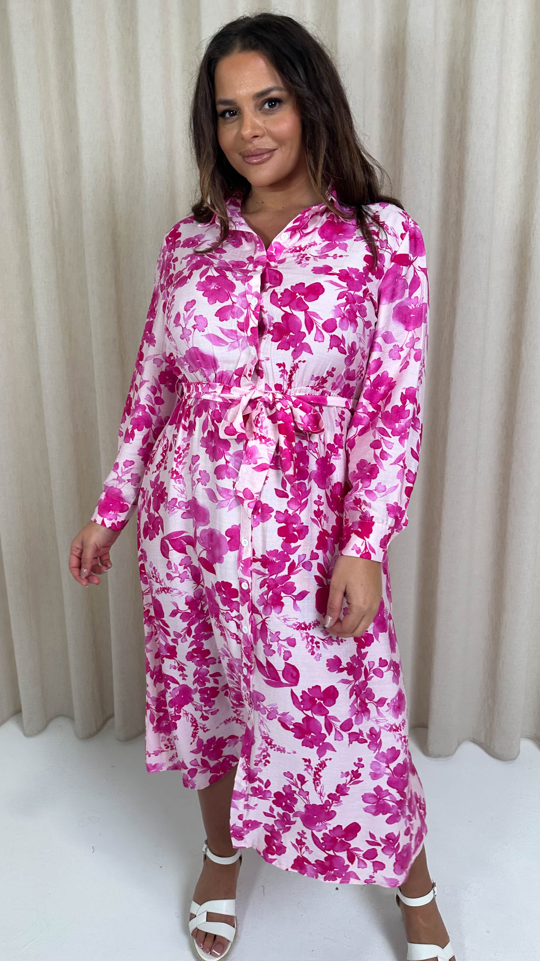 CurveWow Printed Shirt Midaxi Dress Pink Floral