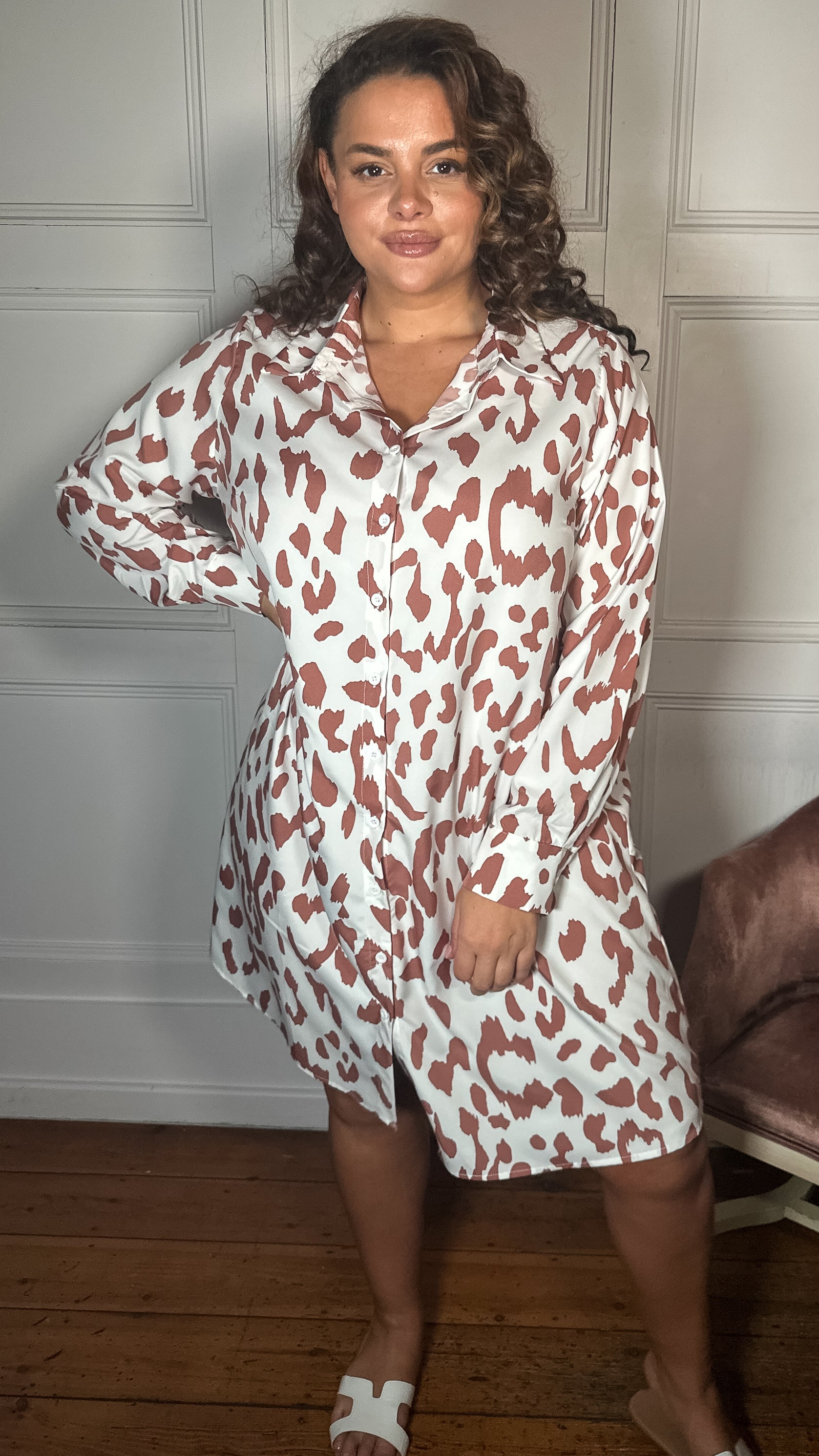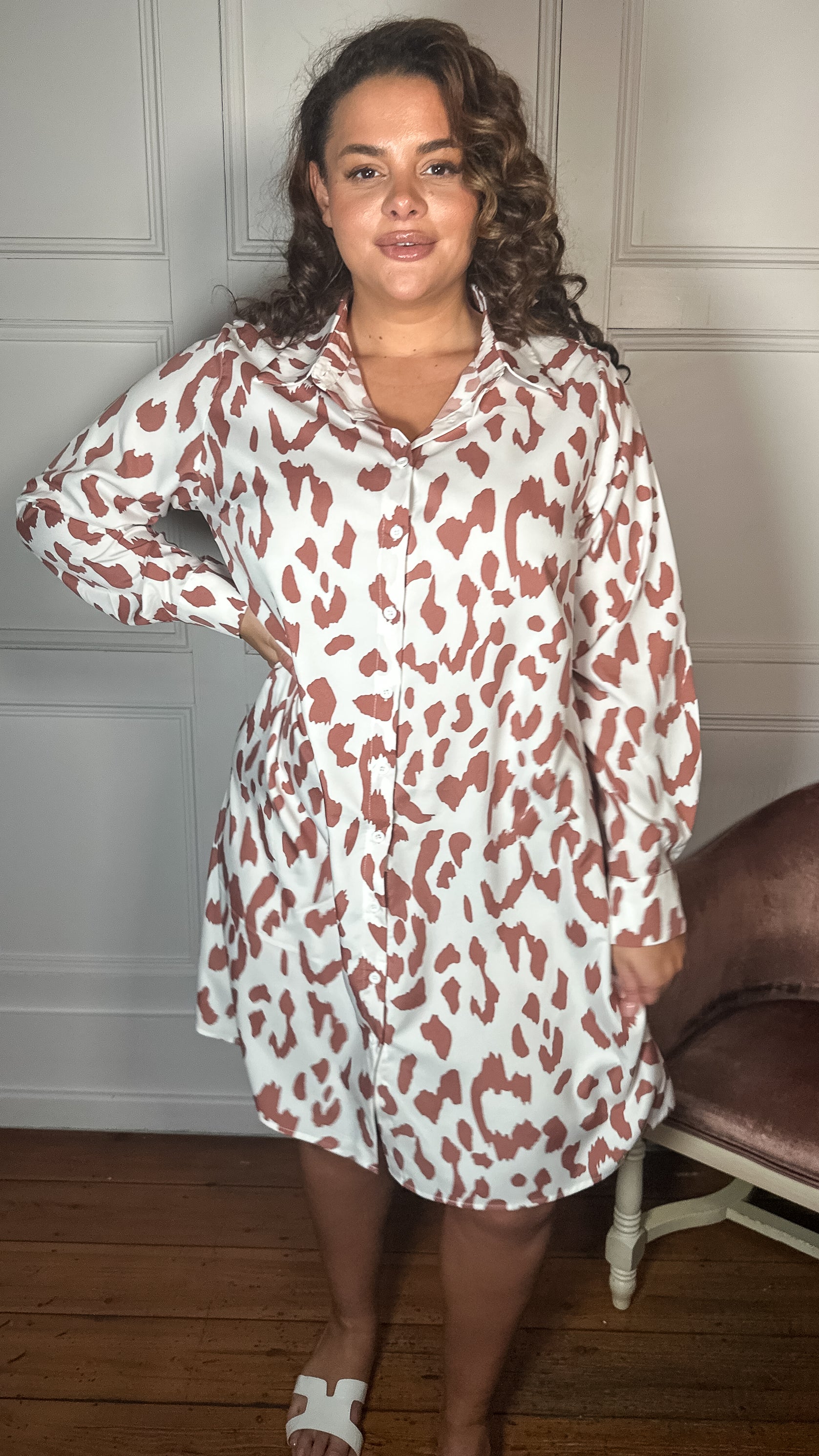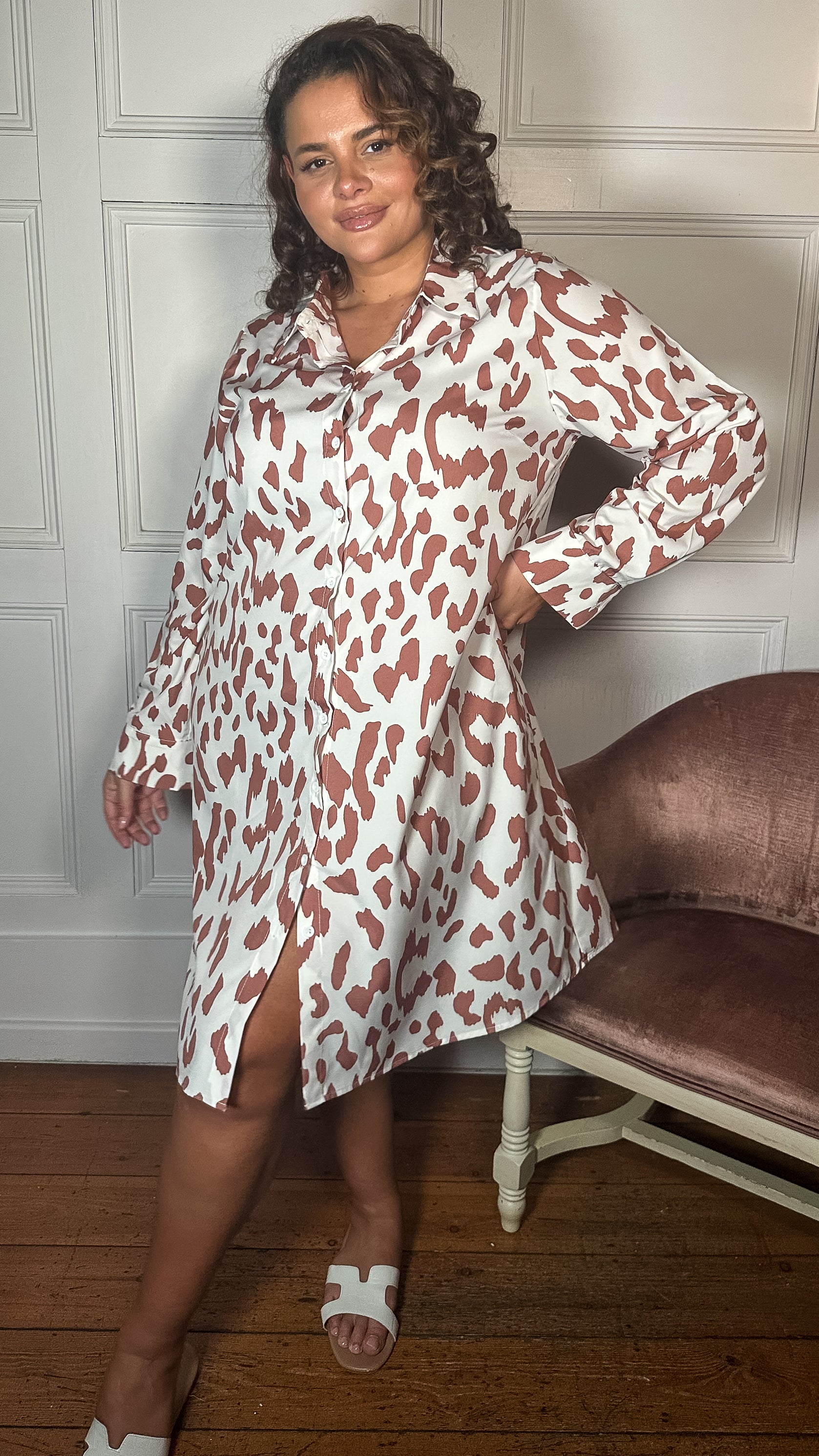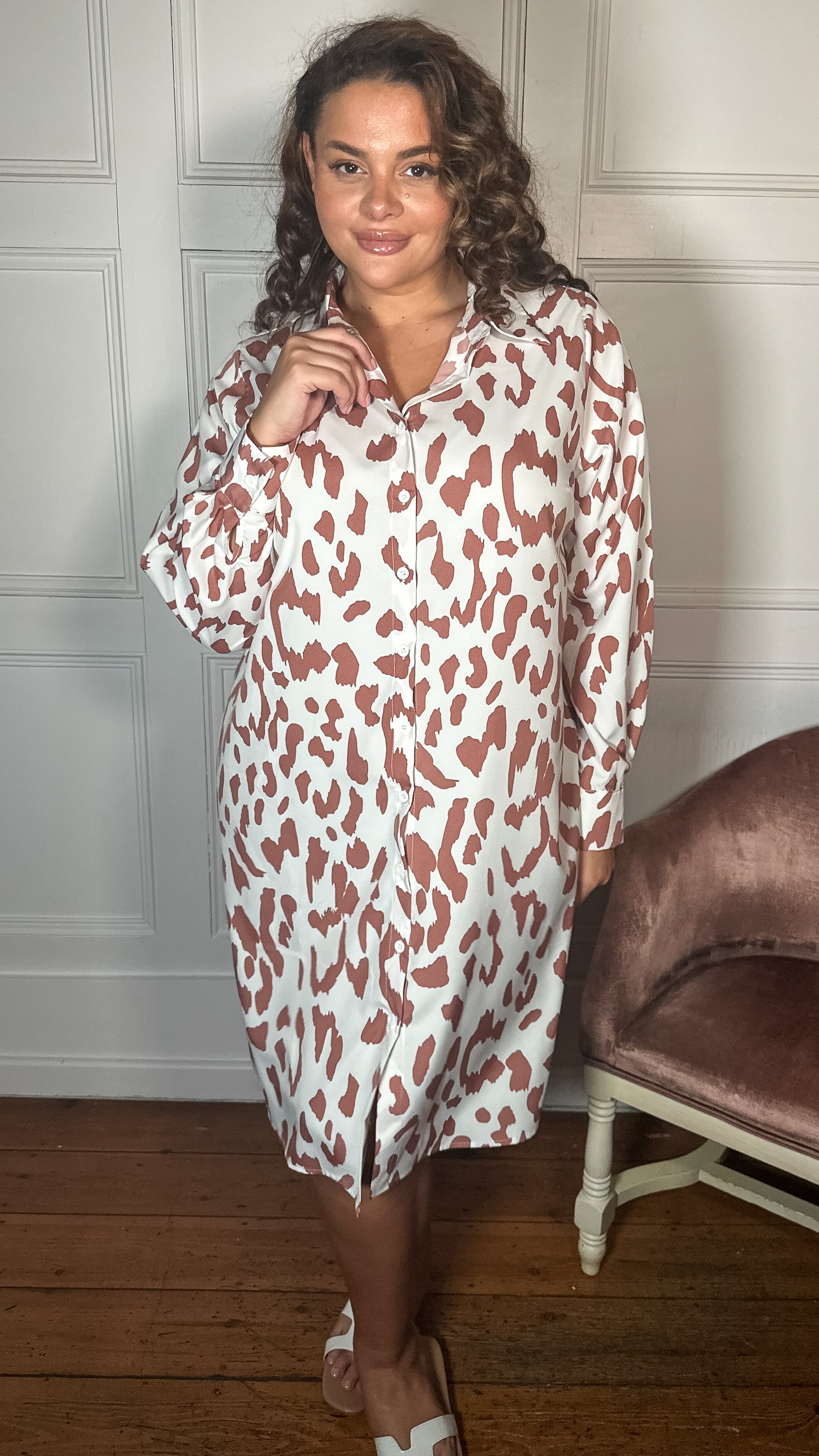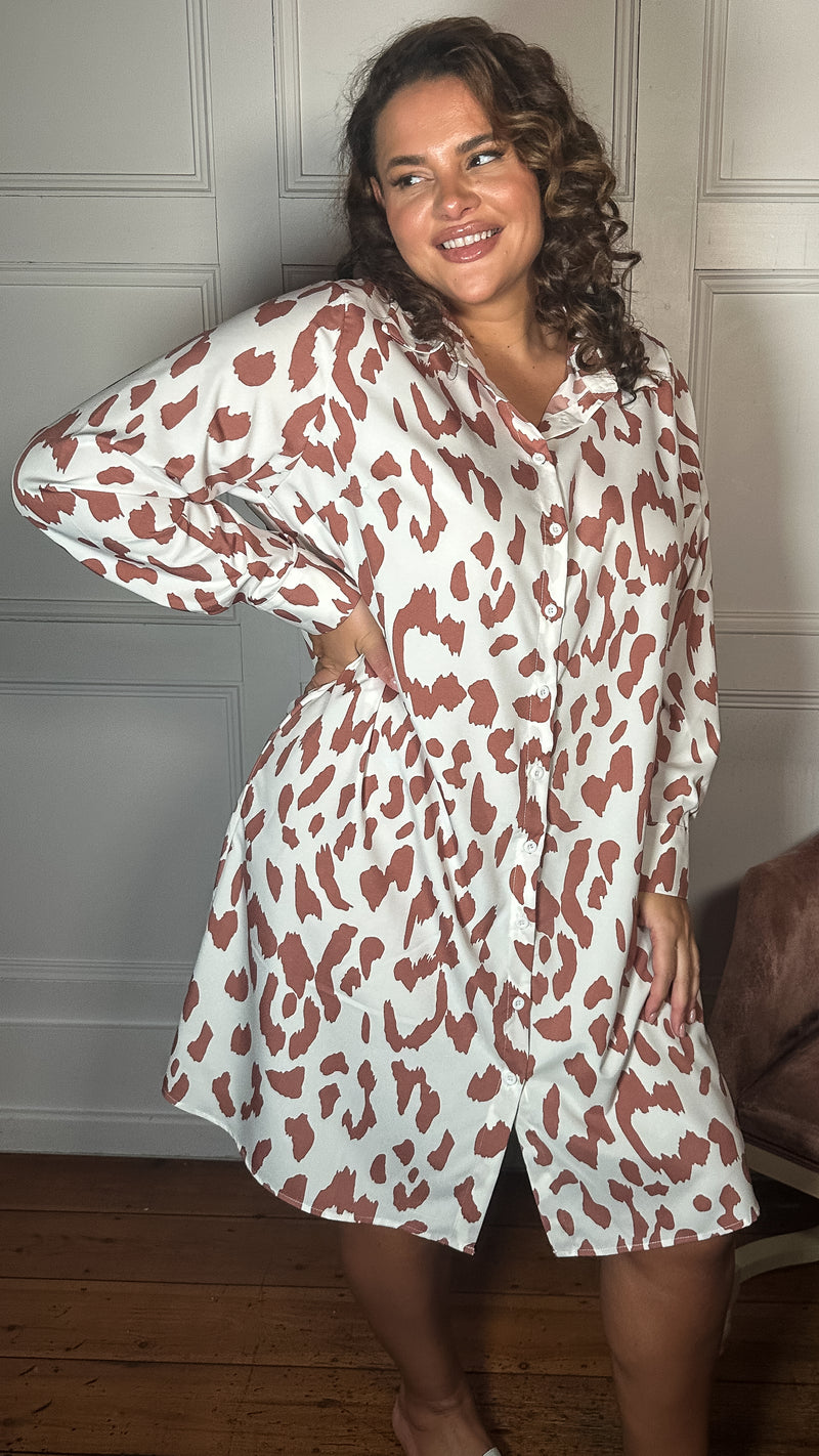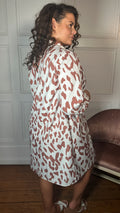 CurveWow Printed Shirt Dress White Animal