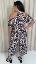 CurveWow Wide Leg Cold Shoulder Jumpsuit Blue Animal