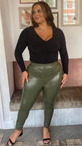 CurveWow PU Leggings Bottle Green