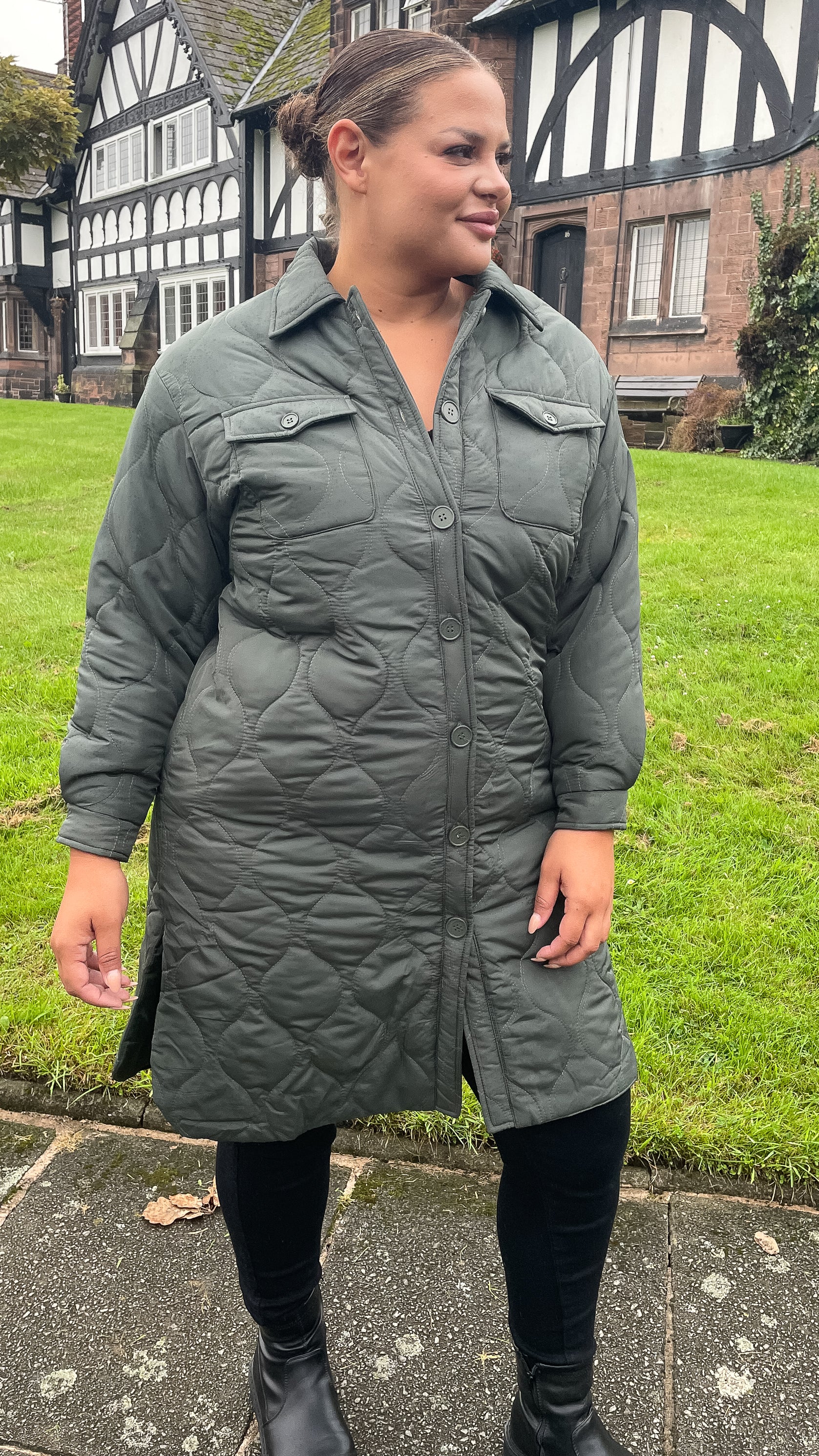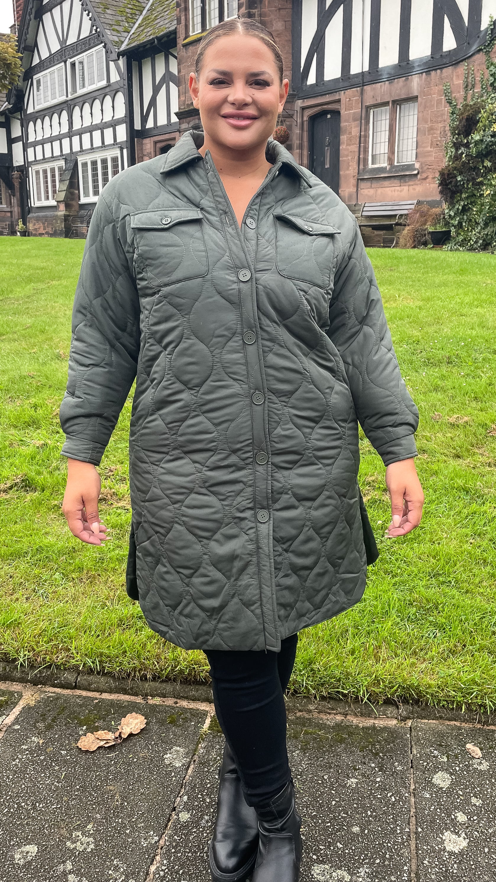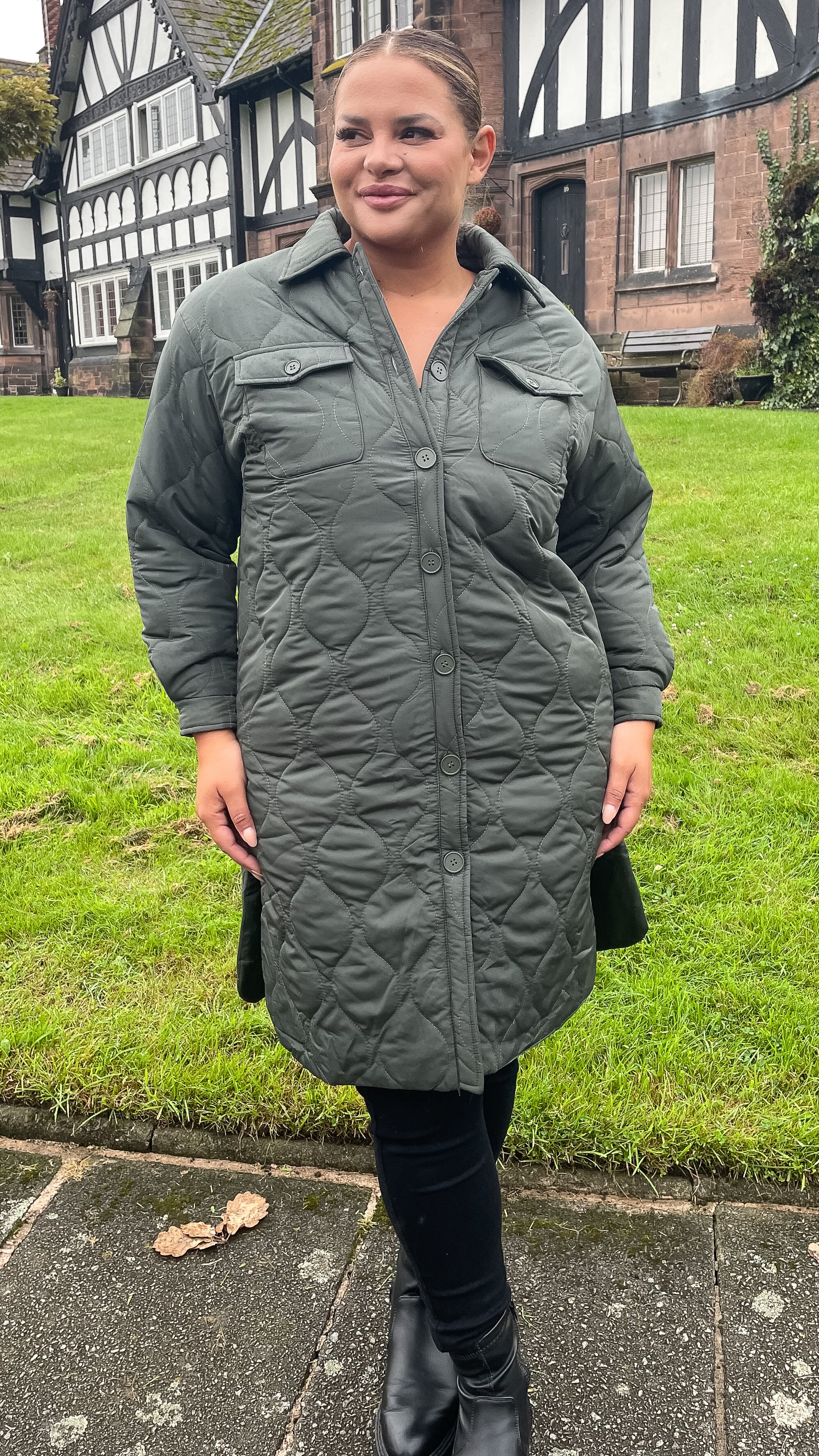 CurveWow Quilted Coat Khaki