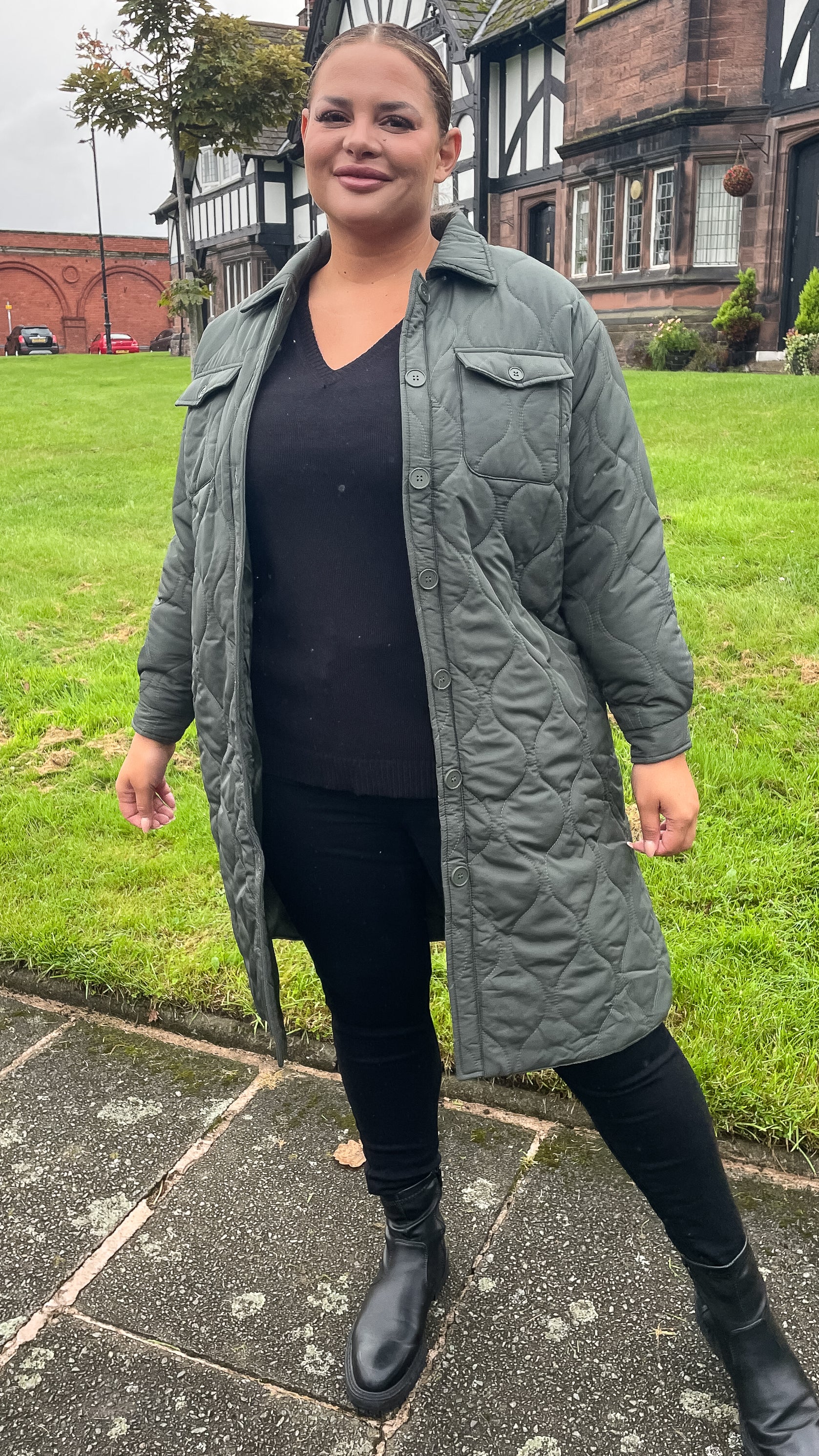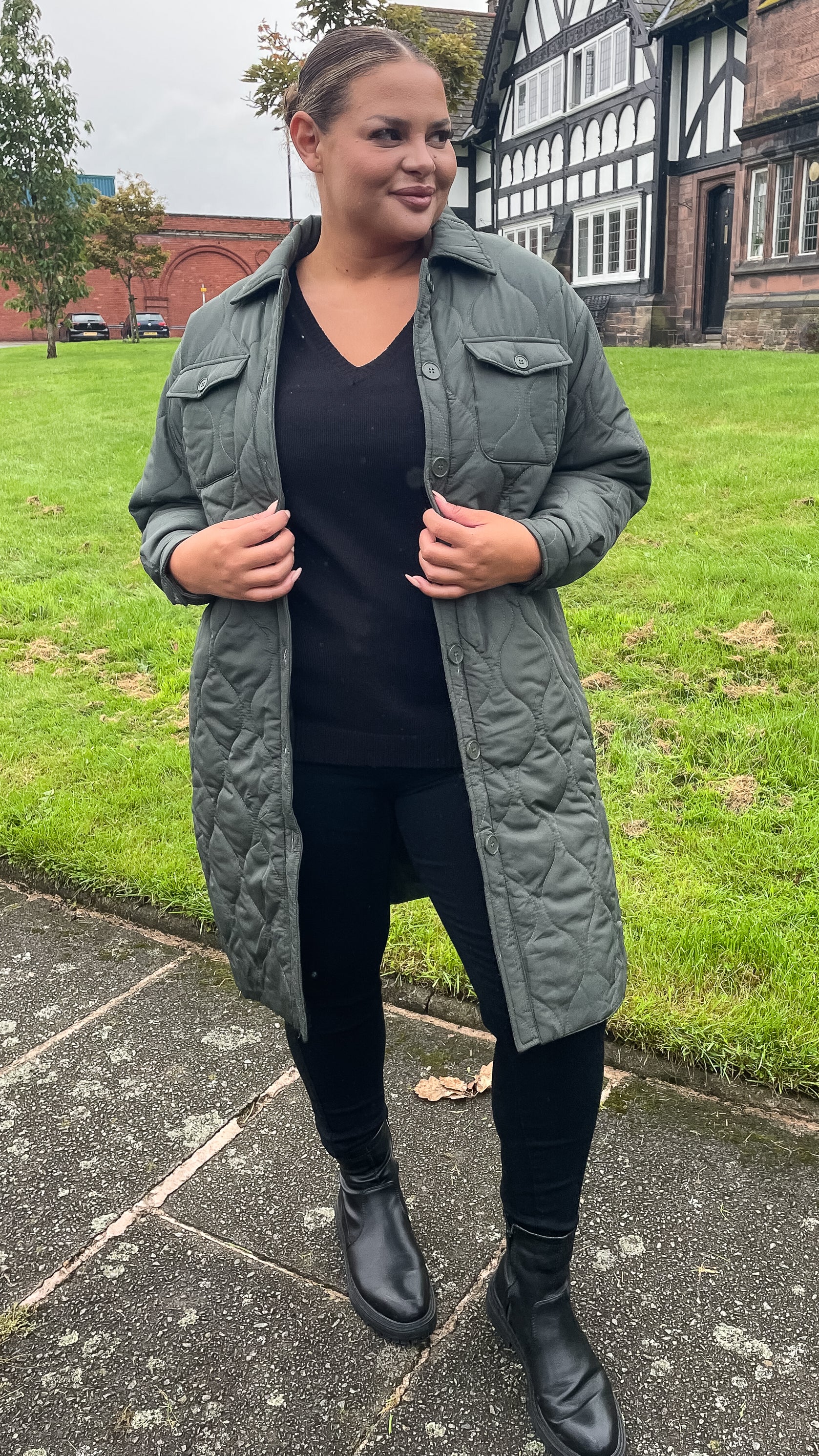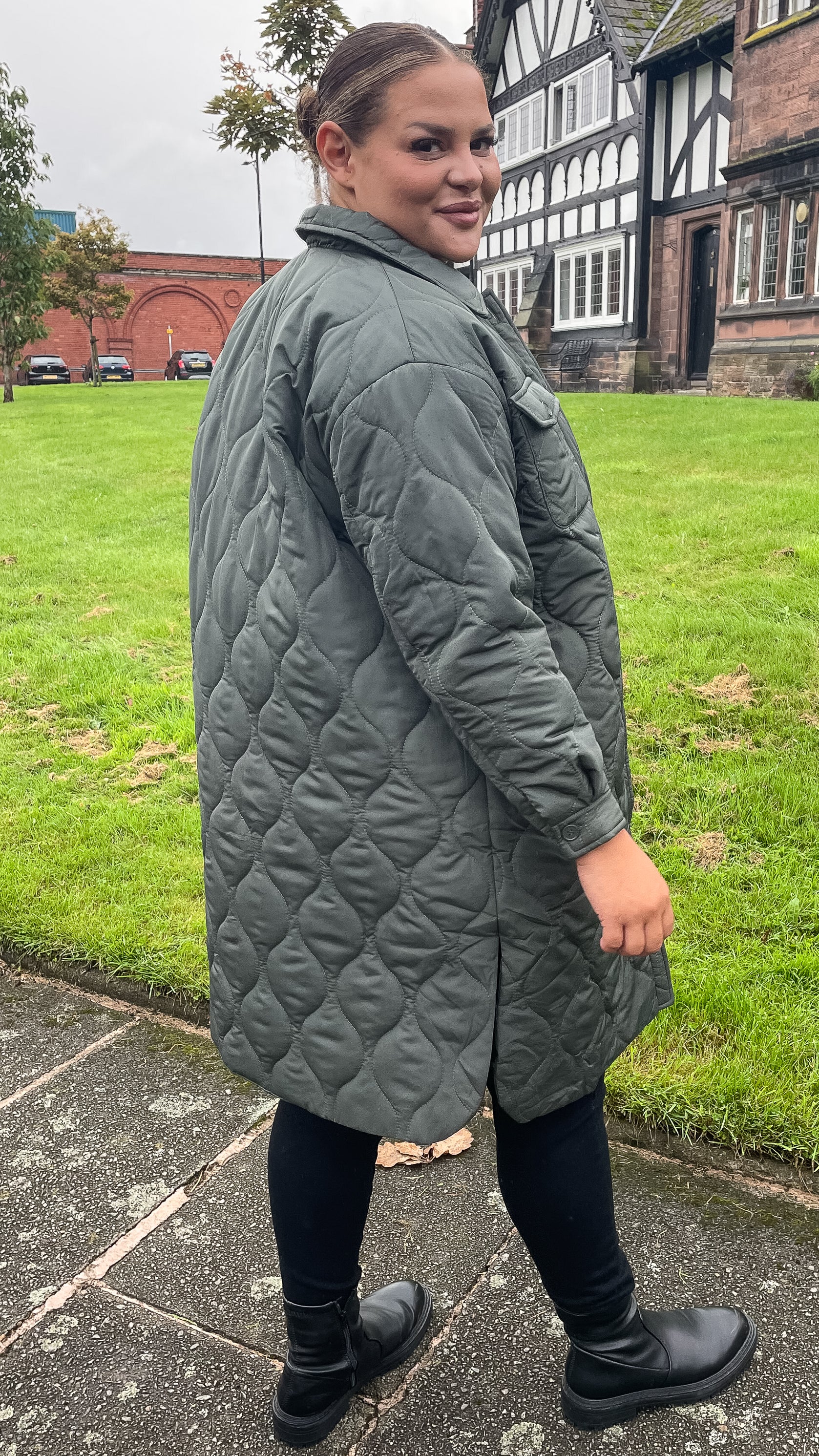 CurveWow Quilted Coat Khaki
