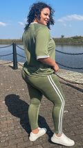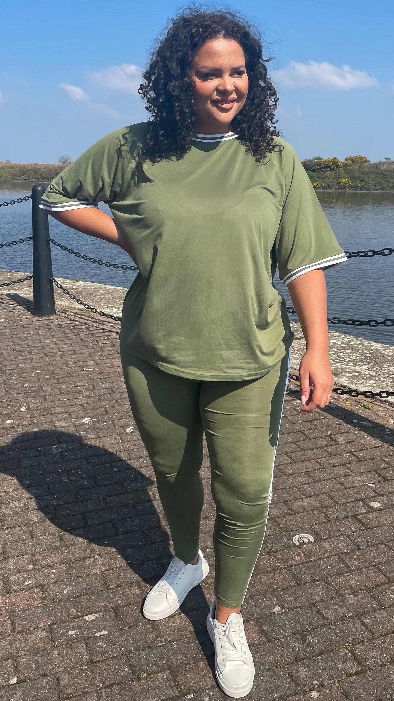 CurveWow Raglan Sleeve Top & Leggings Khaki & White