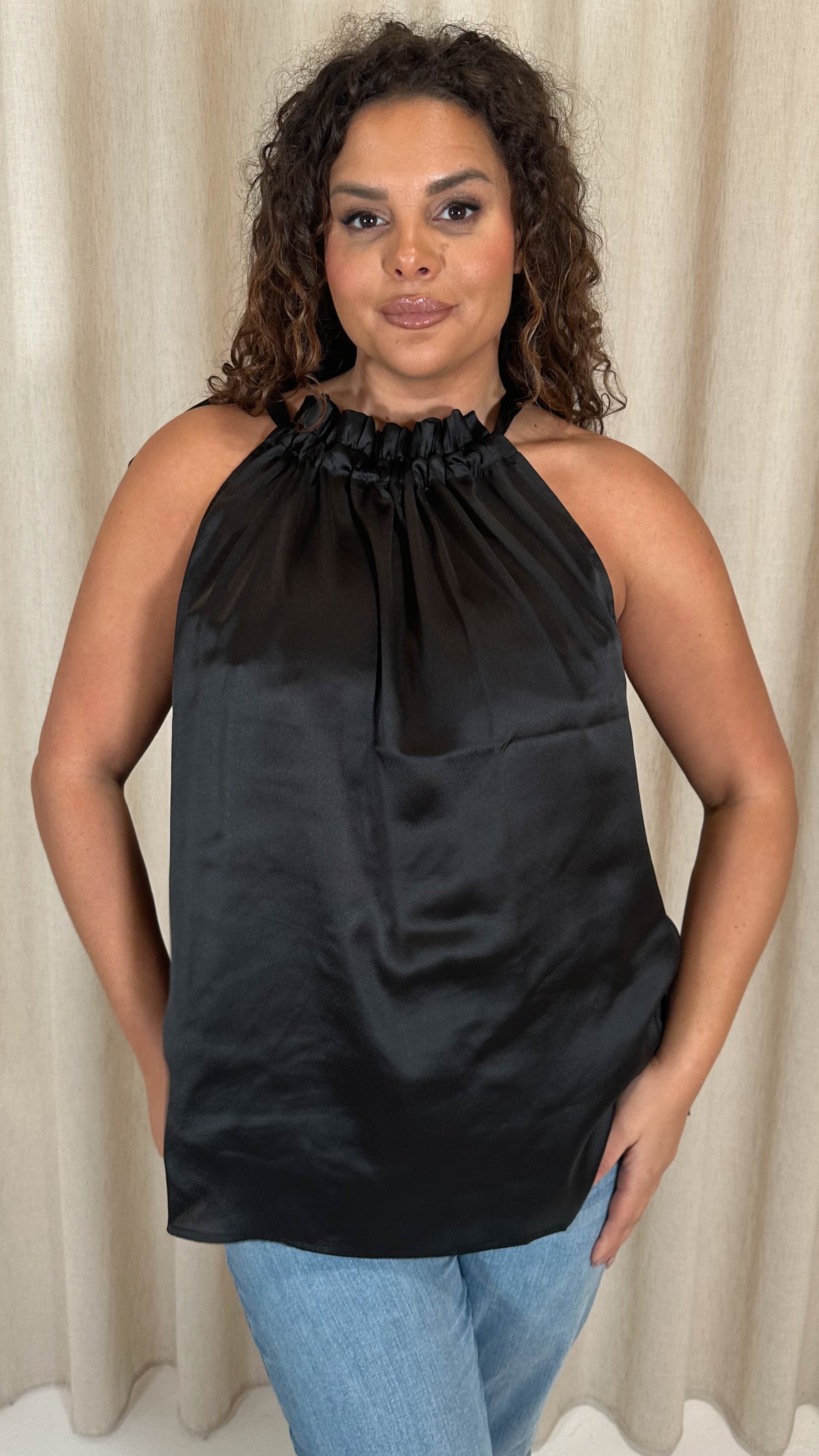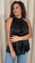 CurveWow Mesh Angel Sleeve Twist Neck Top Black