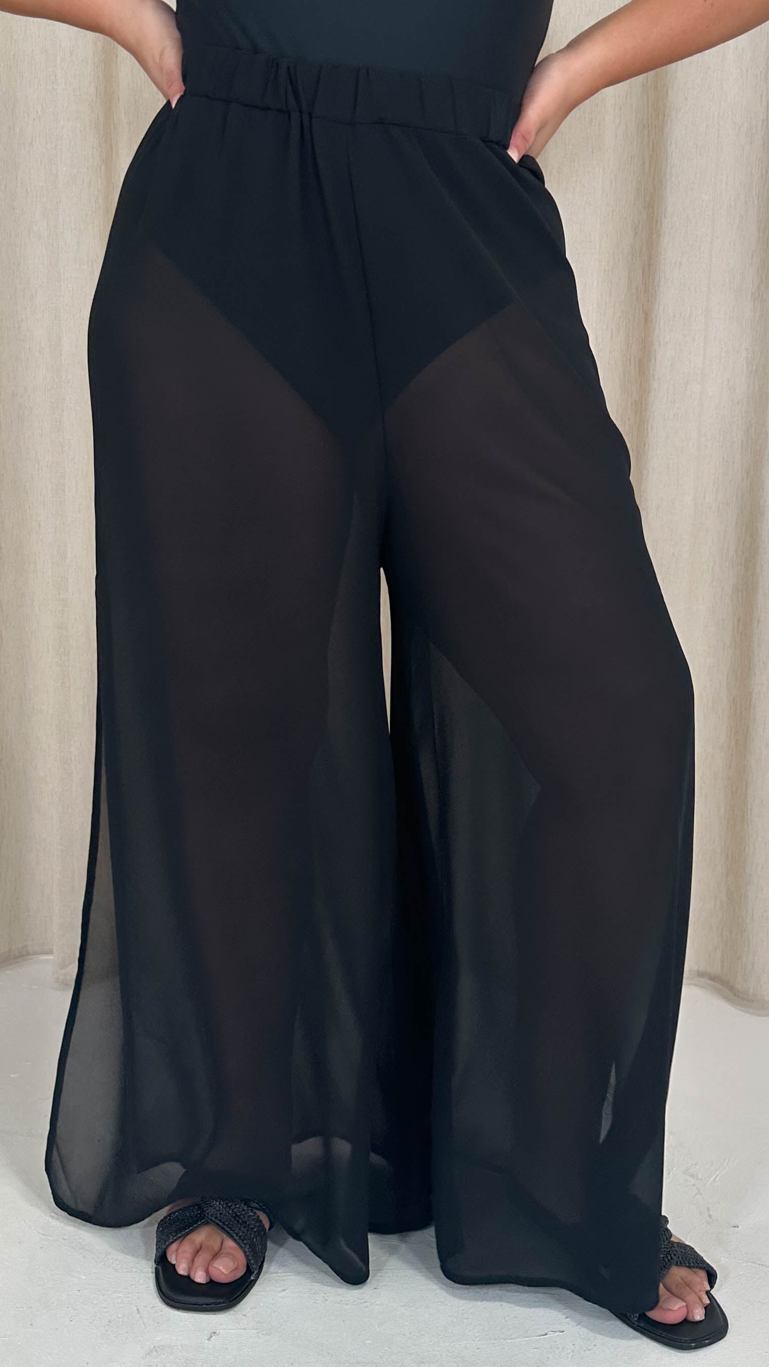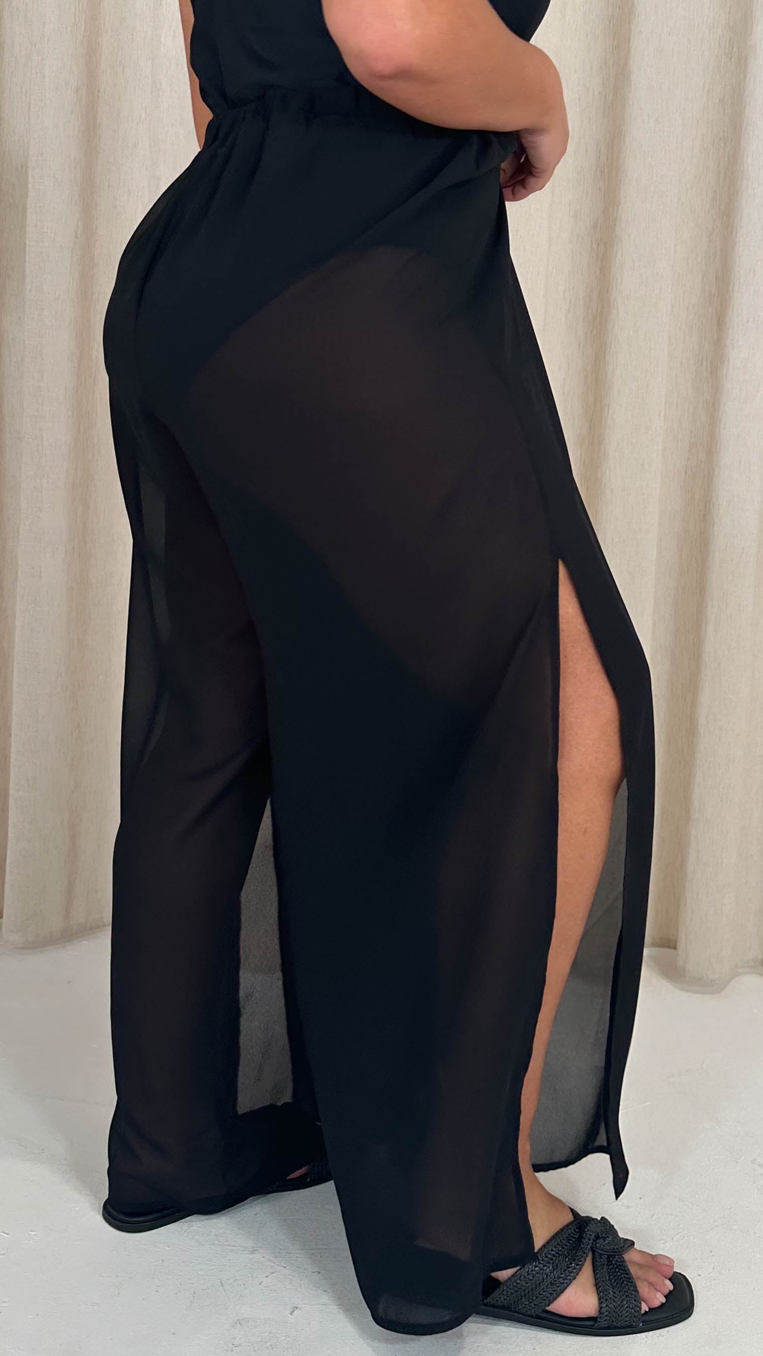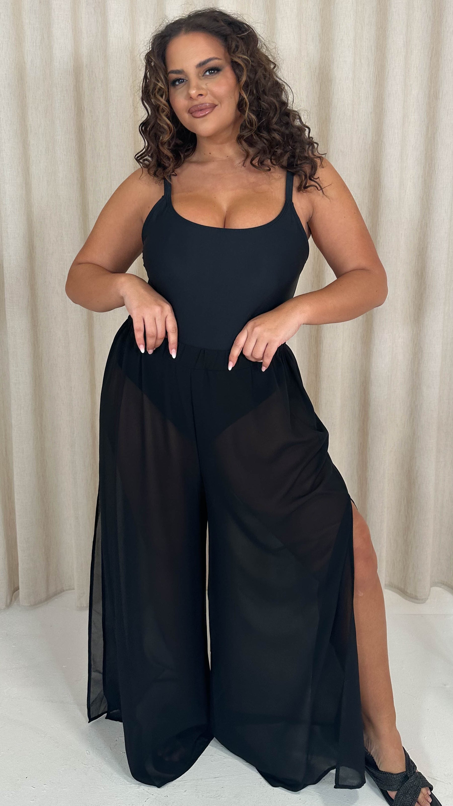 CurveWow Sheer Split Leg Beach Trousers Black