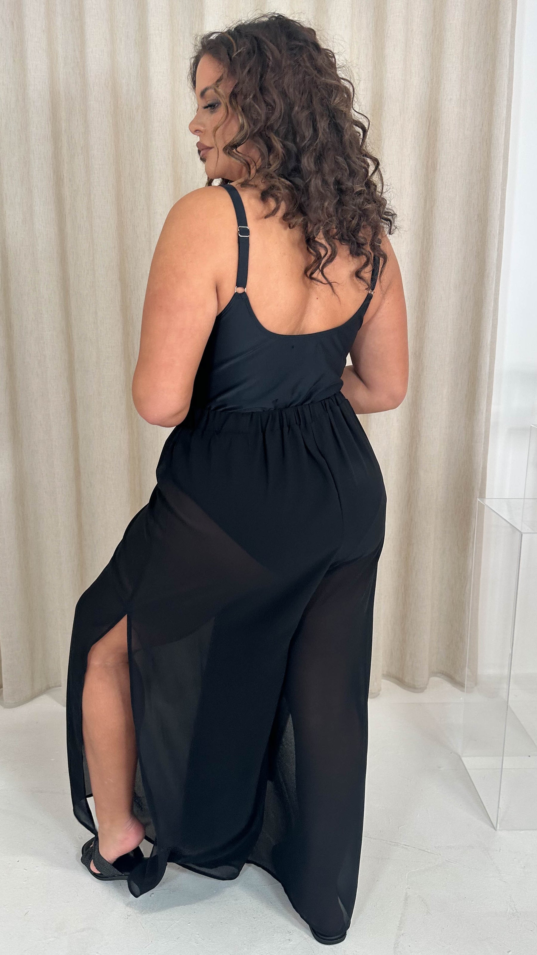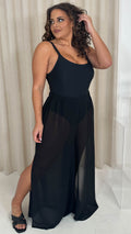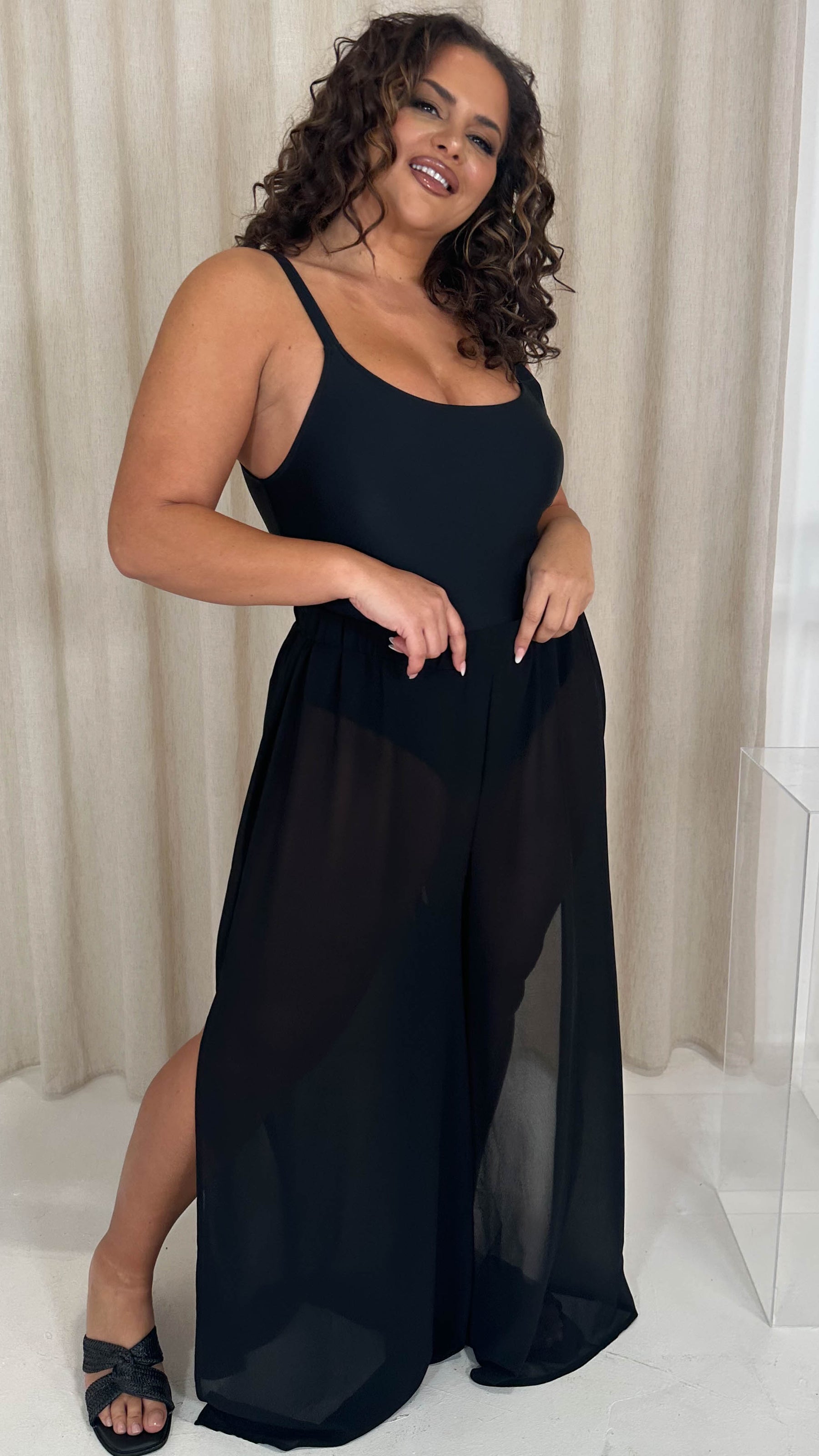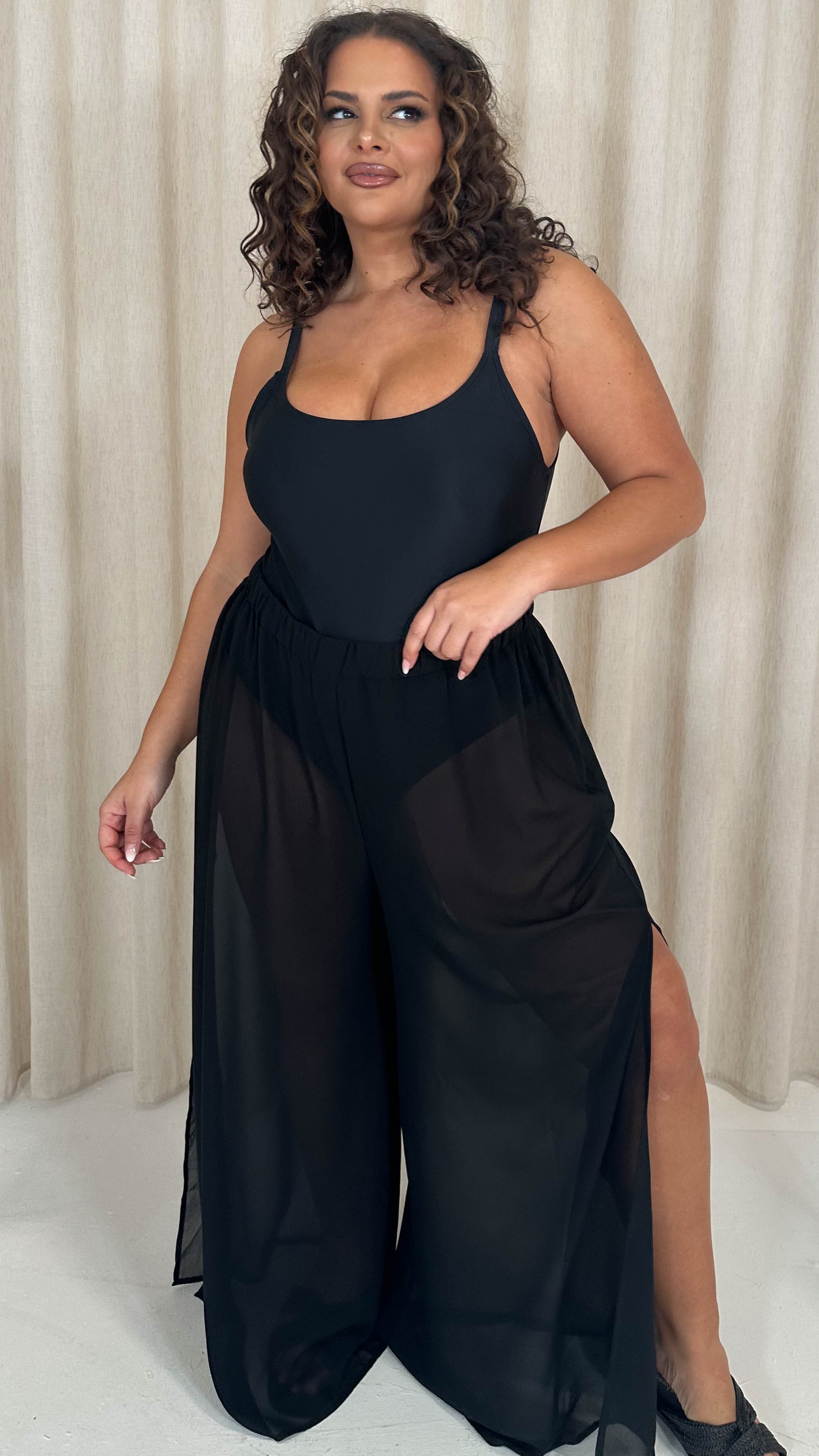CurveWow Sheer Split Leg Beach Trousers Black