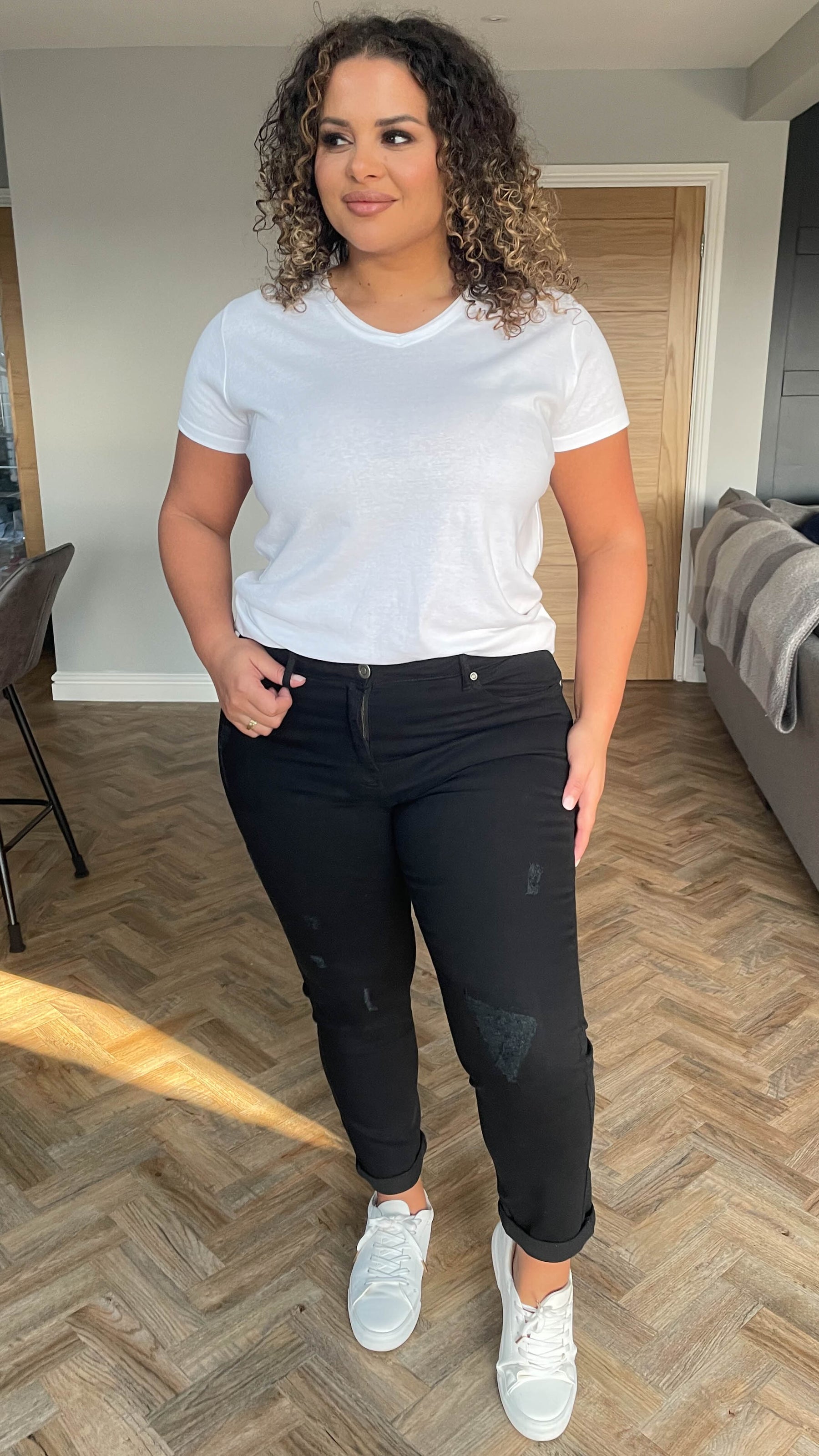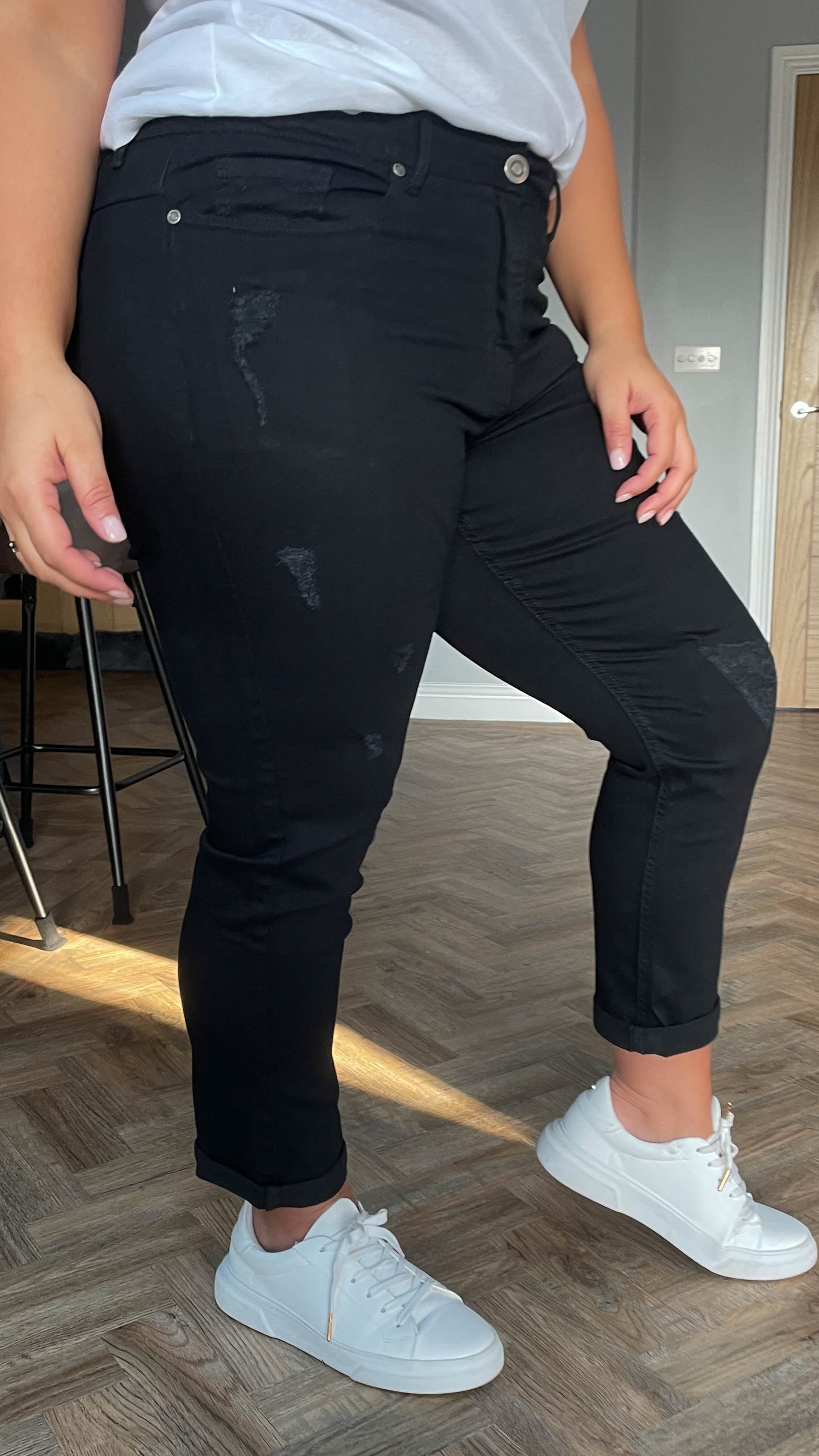 CurveWow Slim Ripped Boyfriend Jean - Black