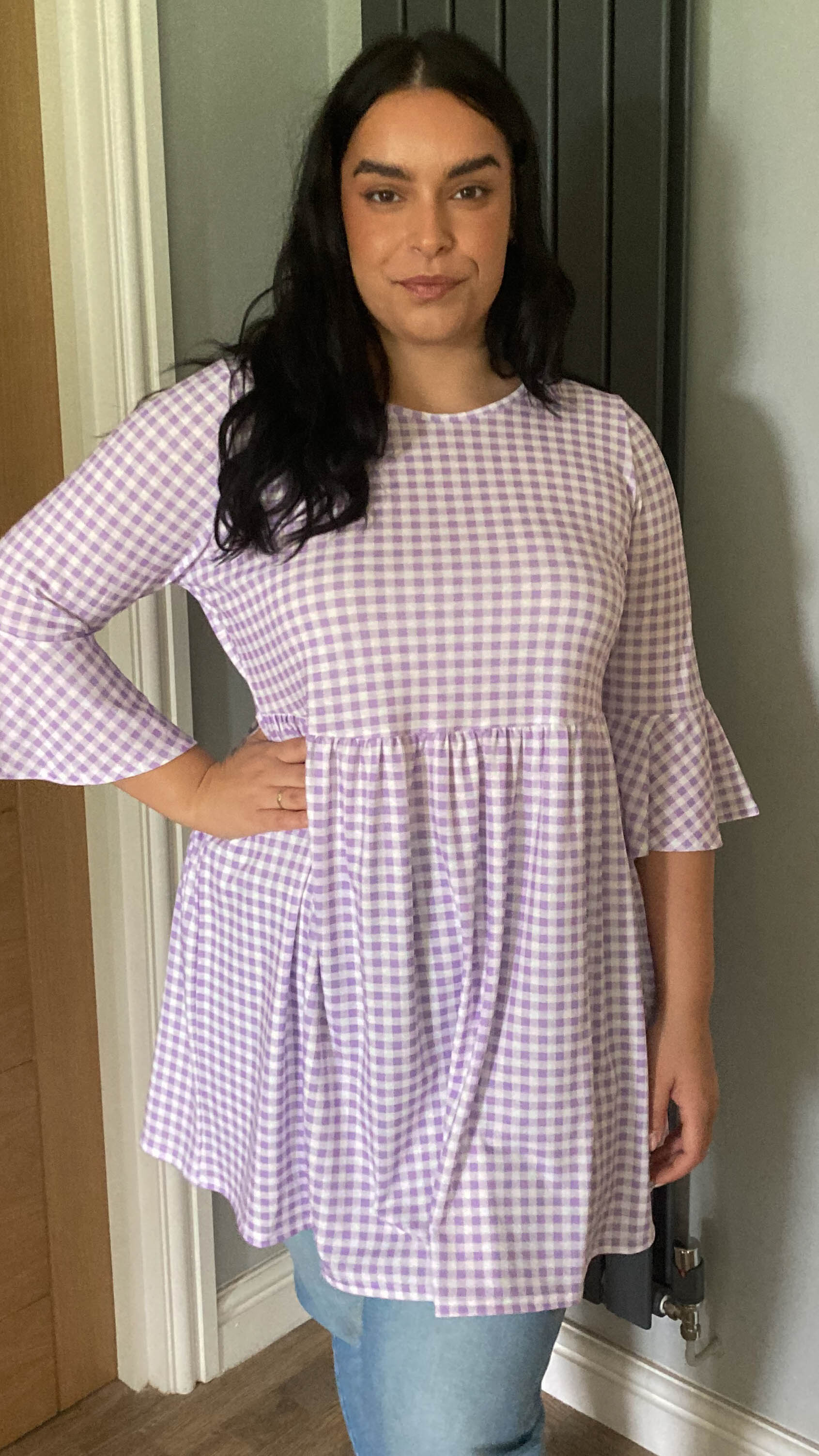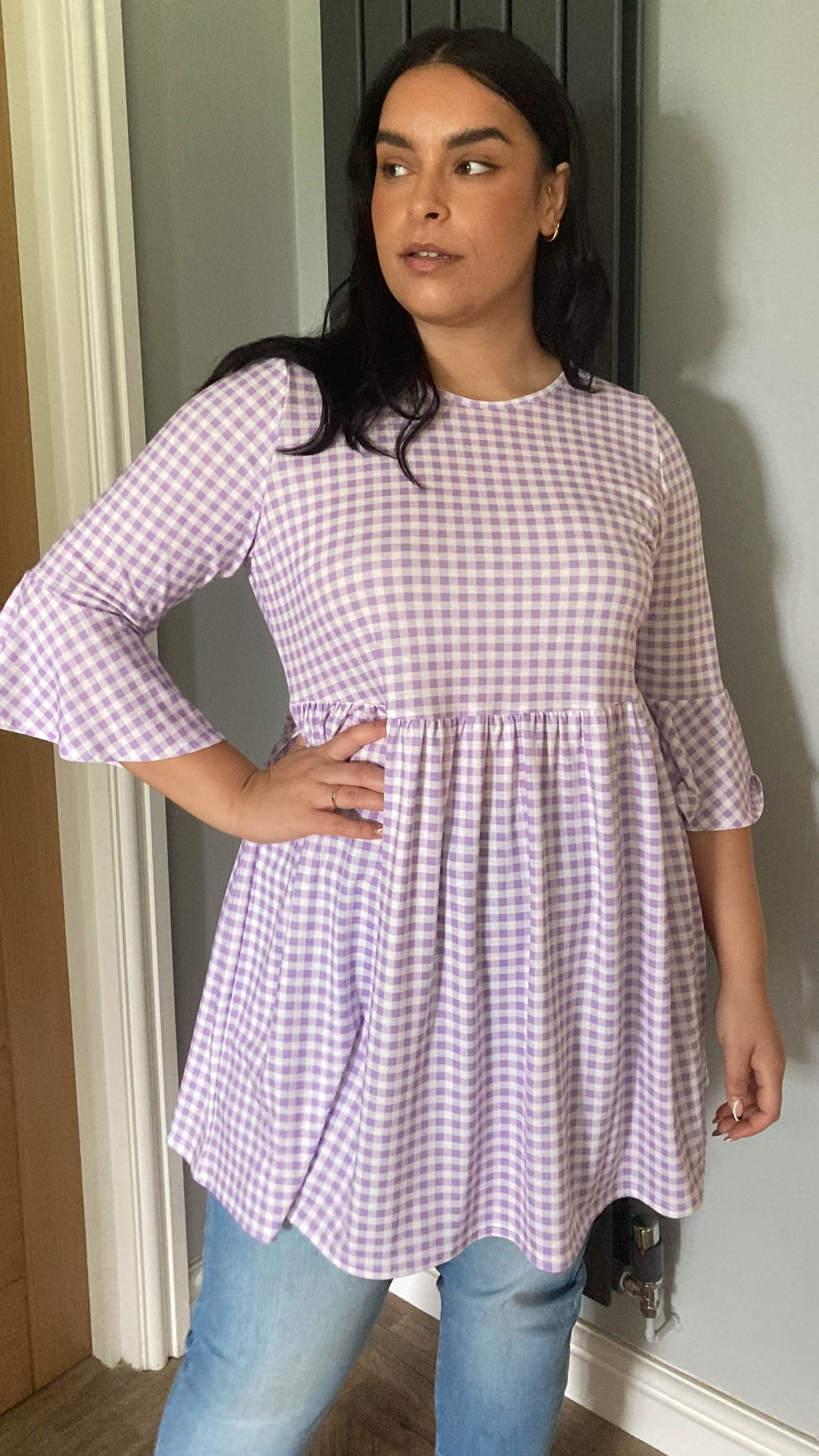 CurveWow Longline Smock Top Lilac Gingham