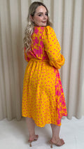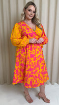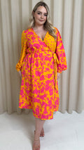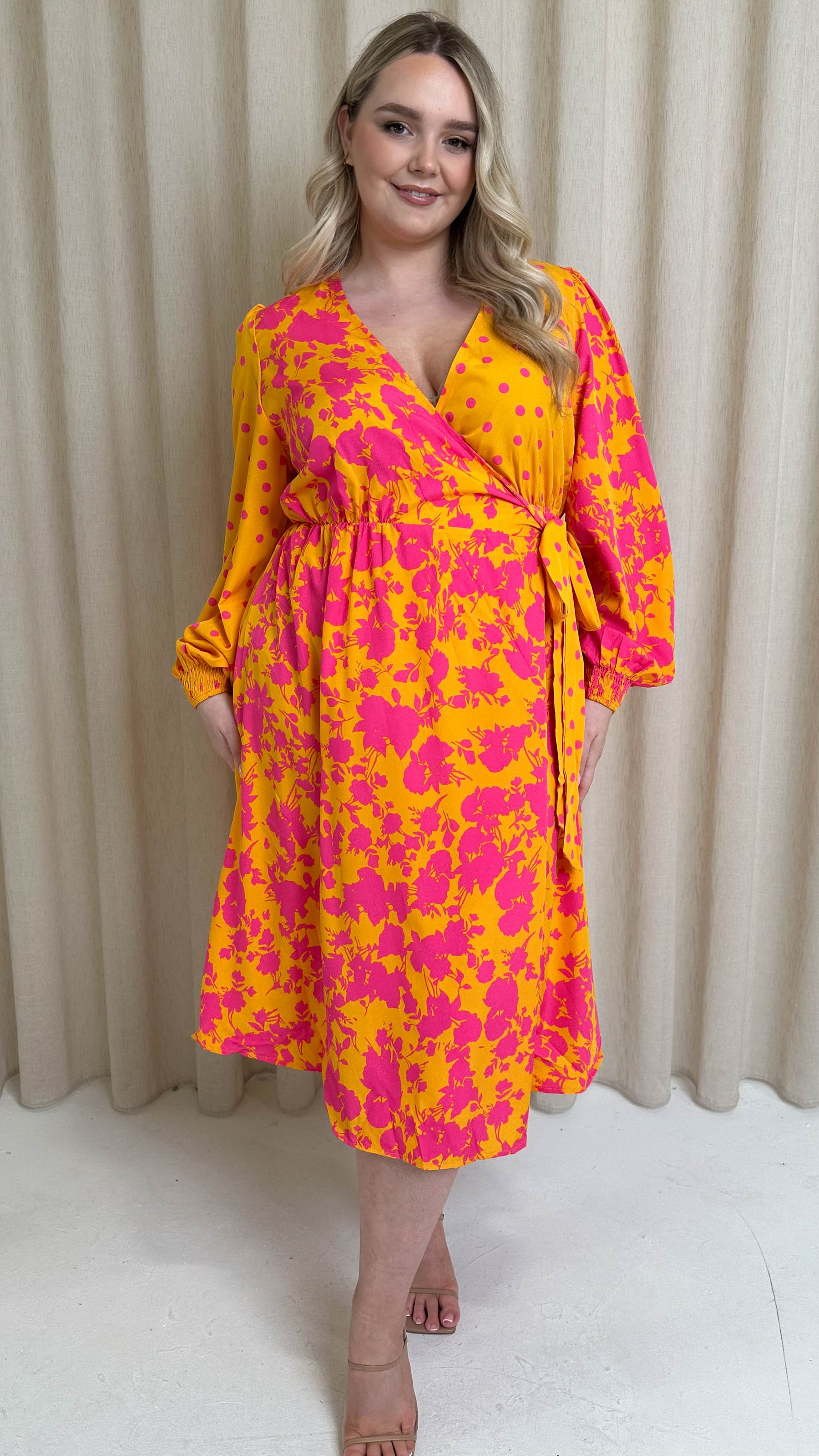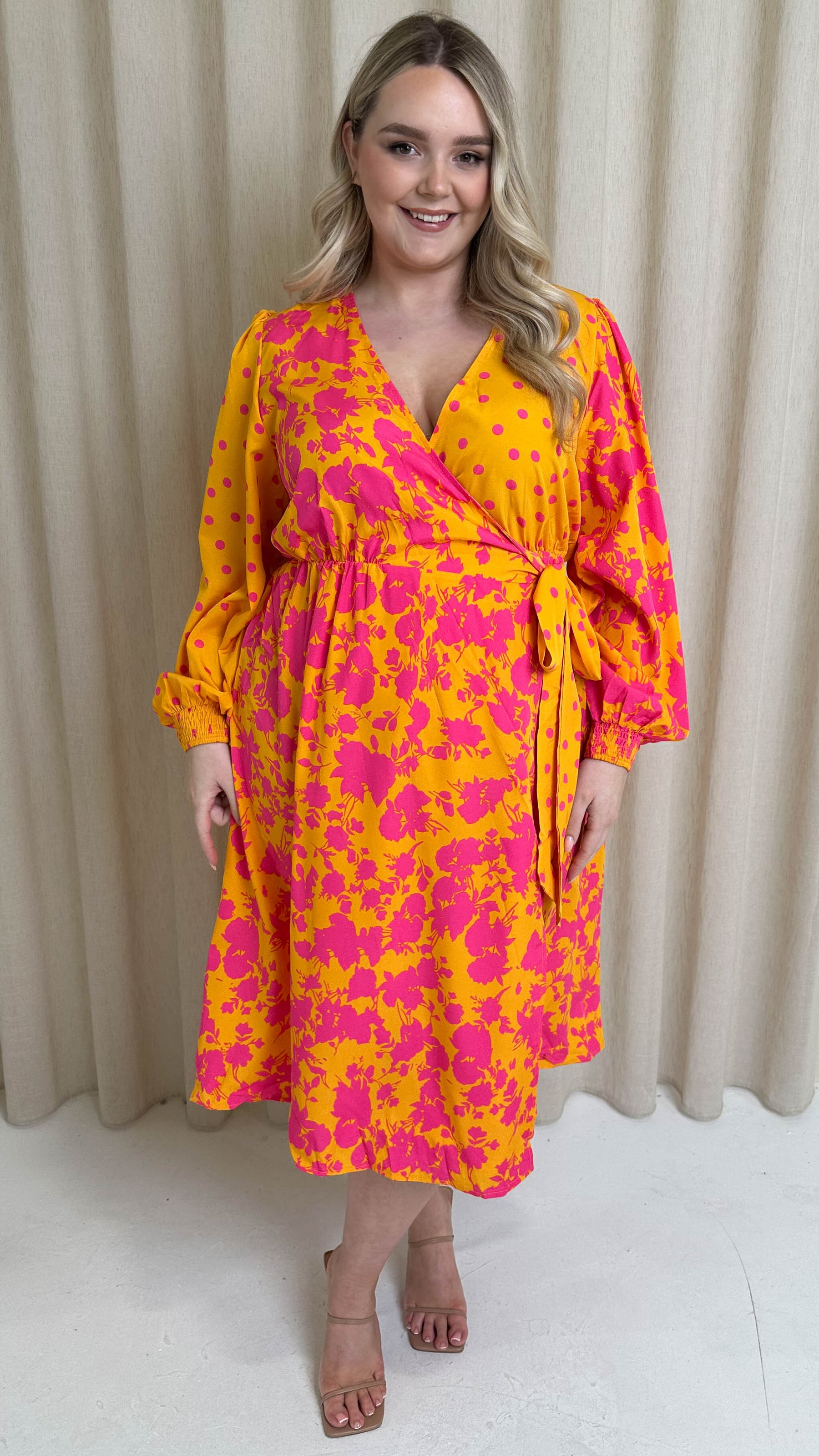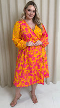 CurveWow Splice Wrap Midi Dress Pink/Orange