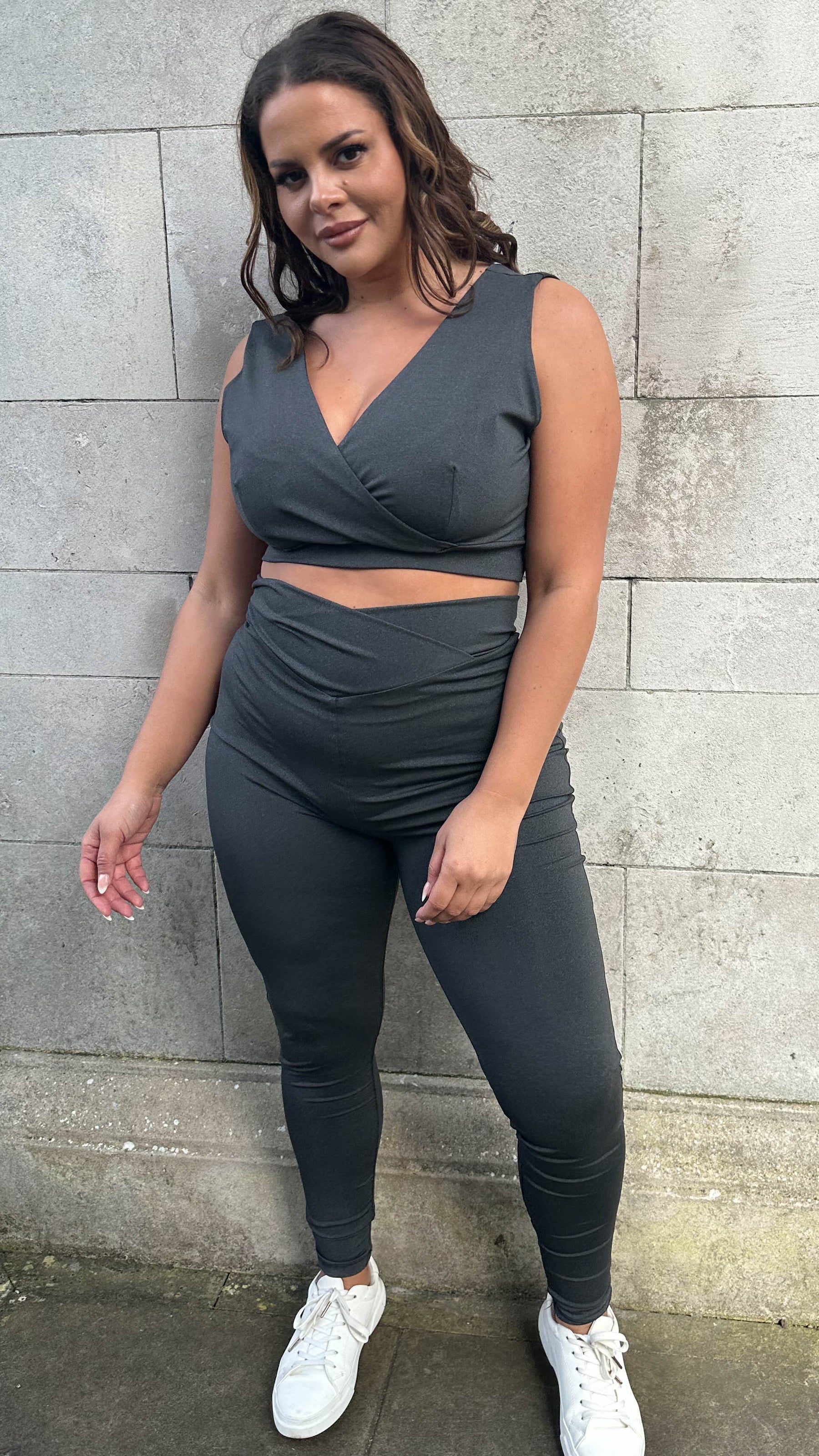 CurveWow Sportswear Wrap Waisted Legging Charcoal