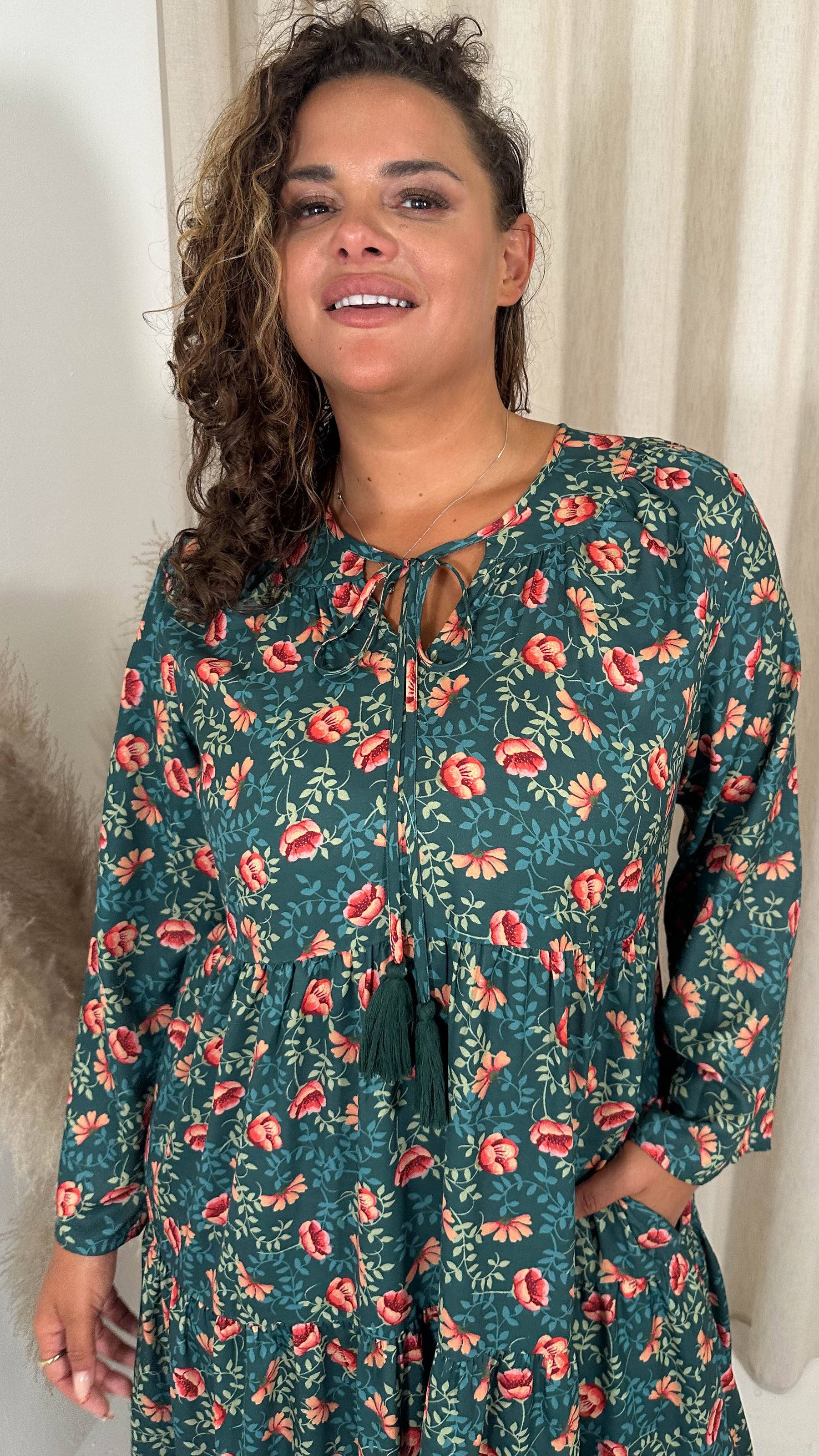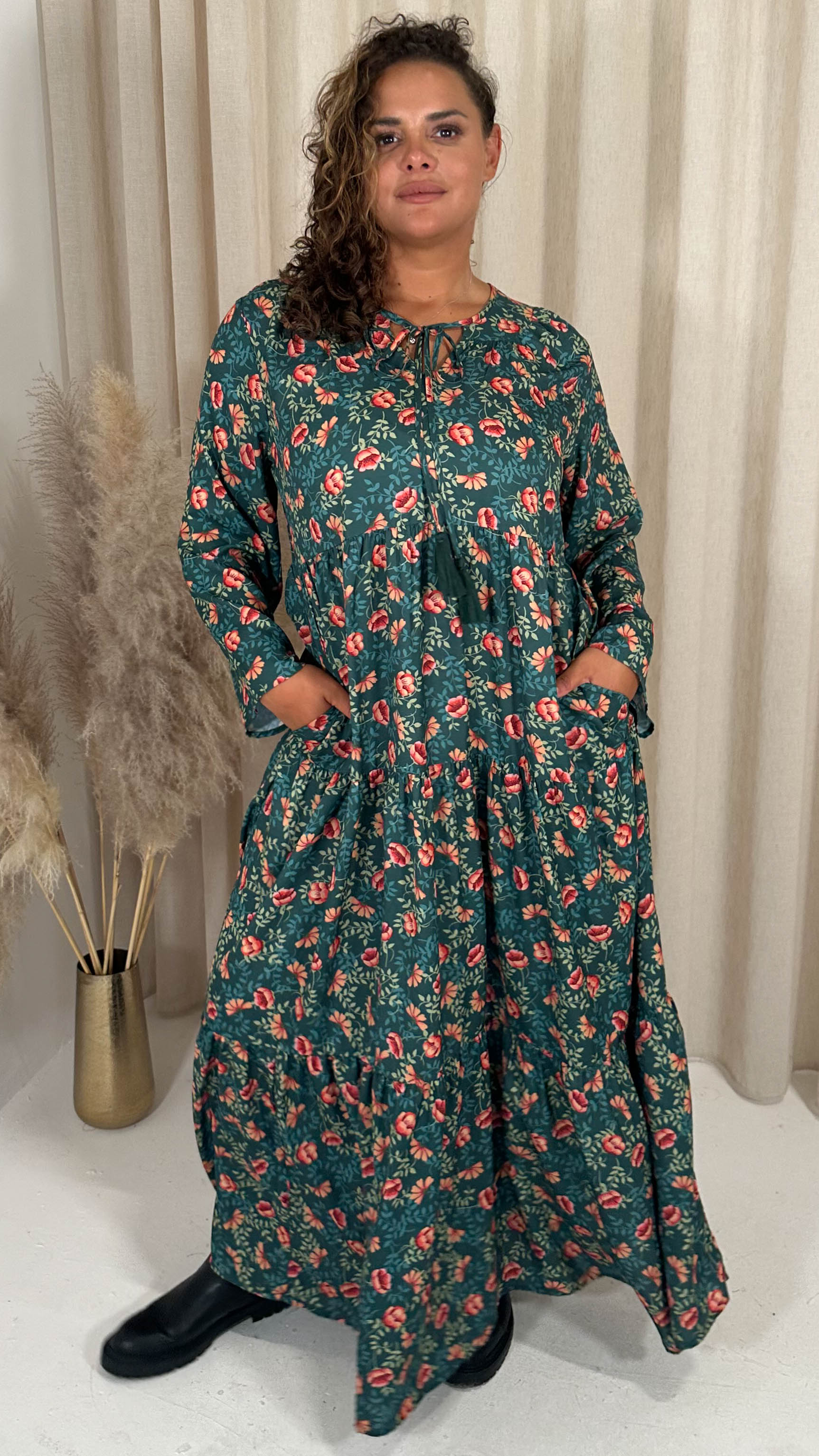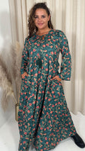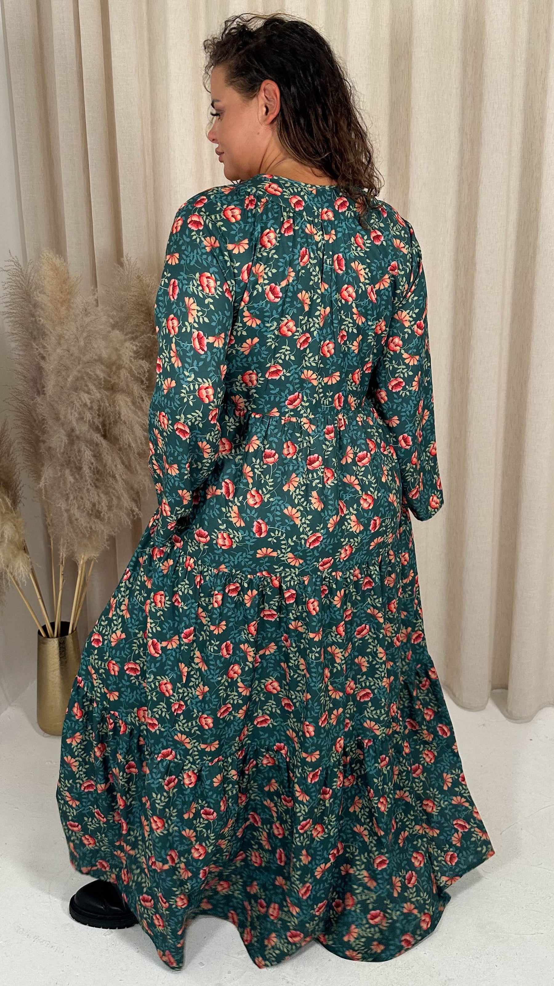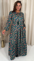 CurveWow Tassel Tiered Maxi Dress Green Floral