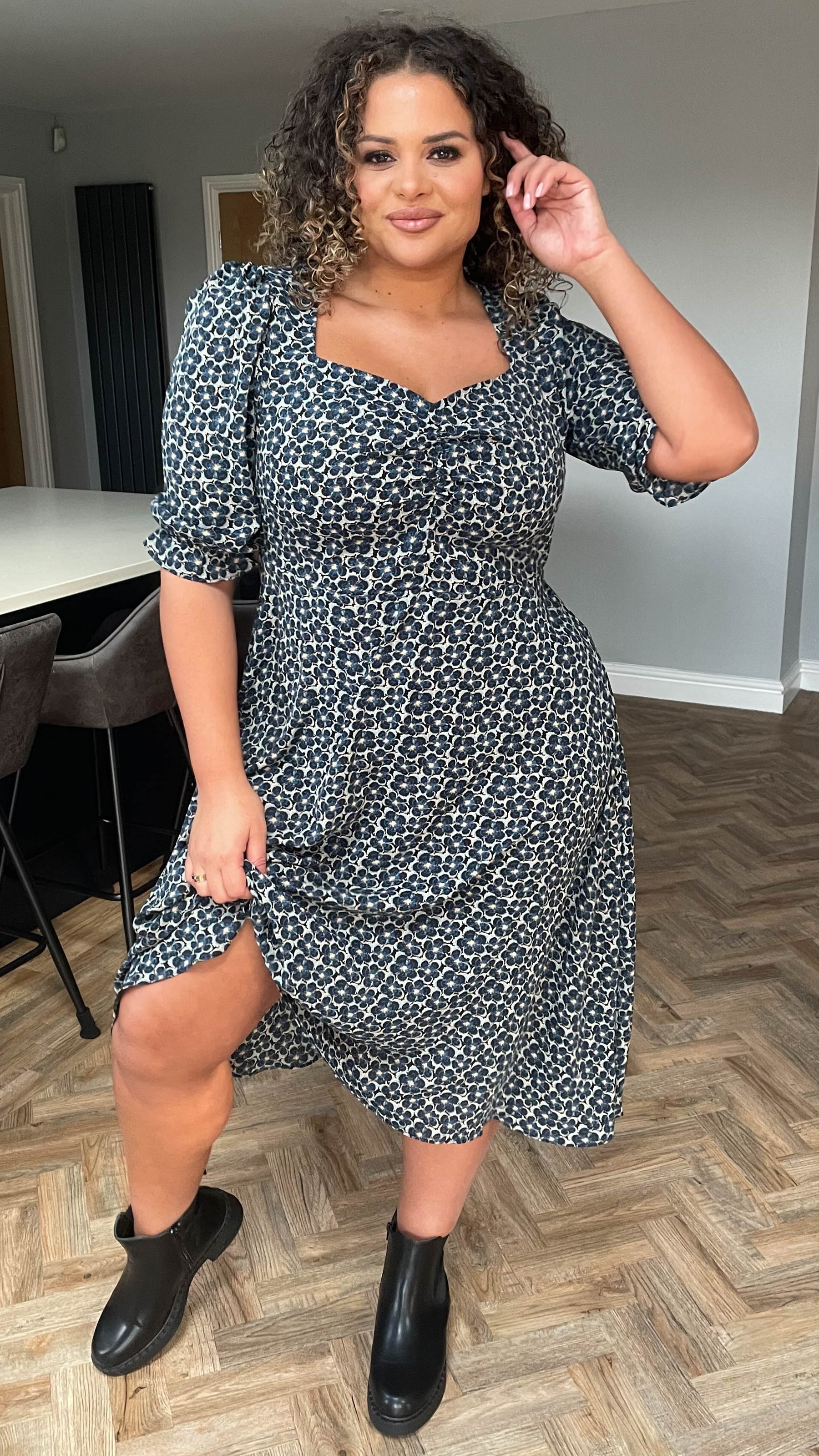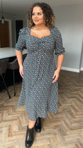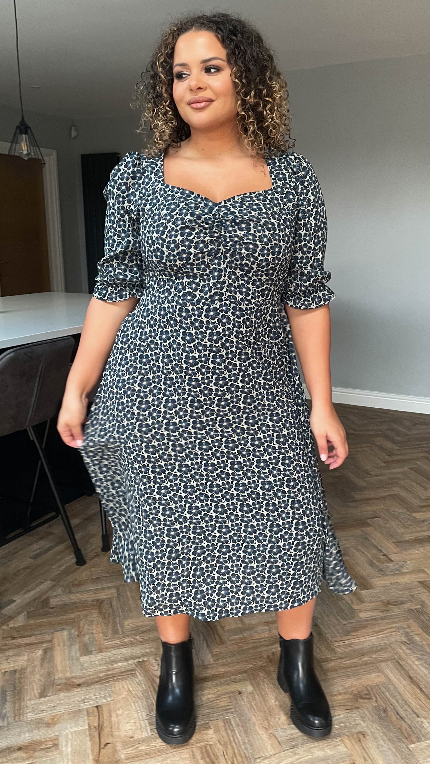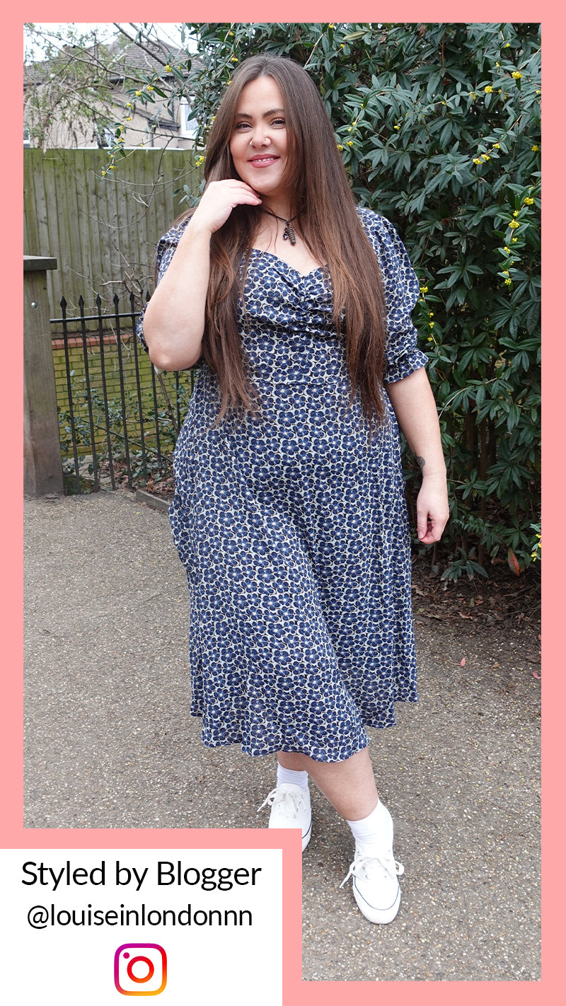 CurveWow Sweetheart Neck Midi Dress Blue Floral