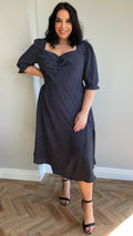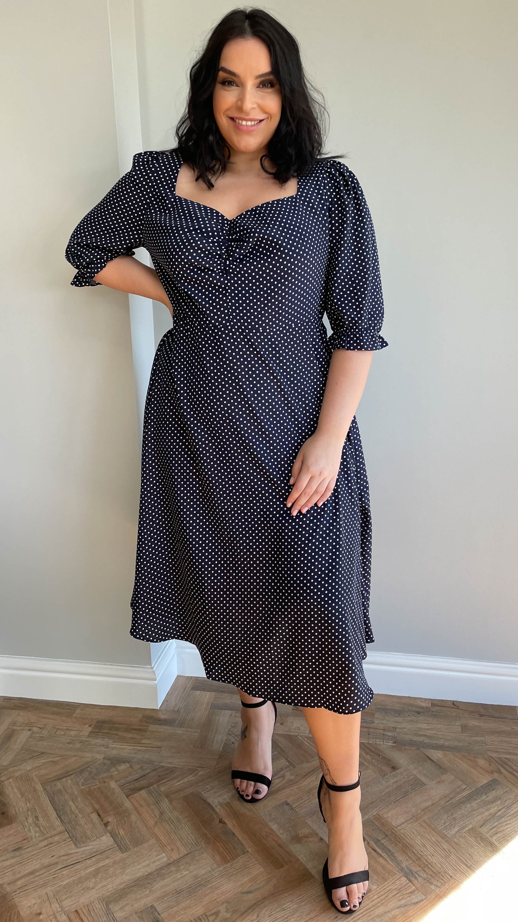 CurveWow Sweetheart Neck Midi Dress Navy Spot