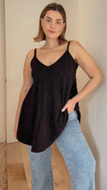 CurveWow Swing Cami Top Black & Rose Gold Glitter