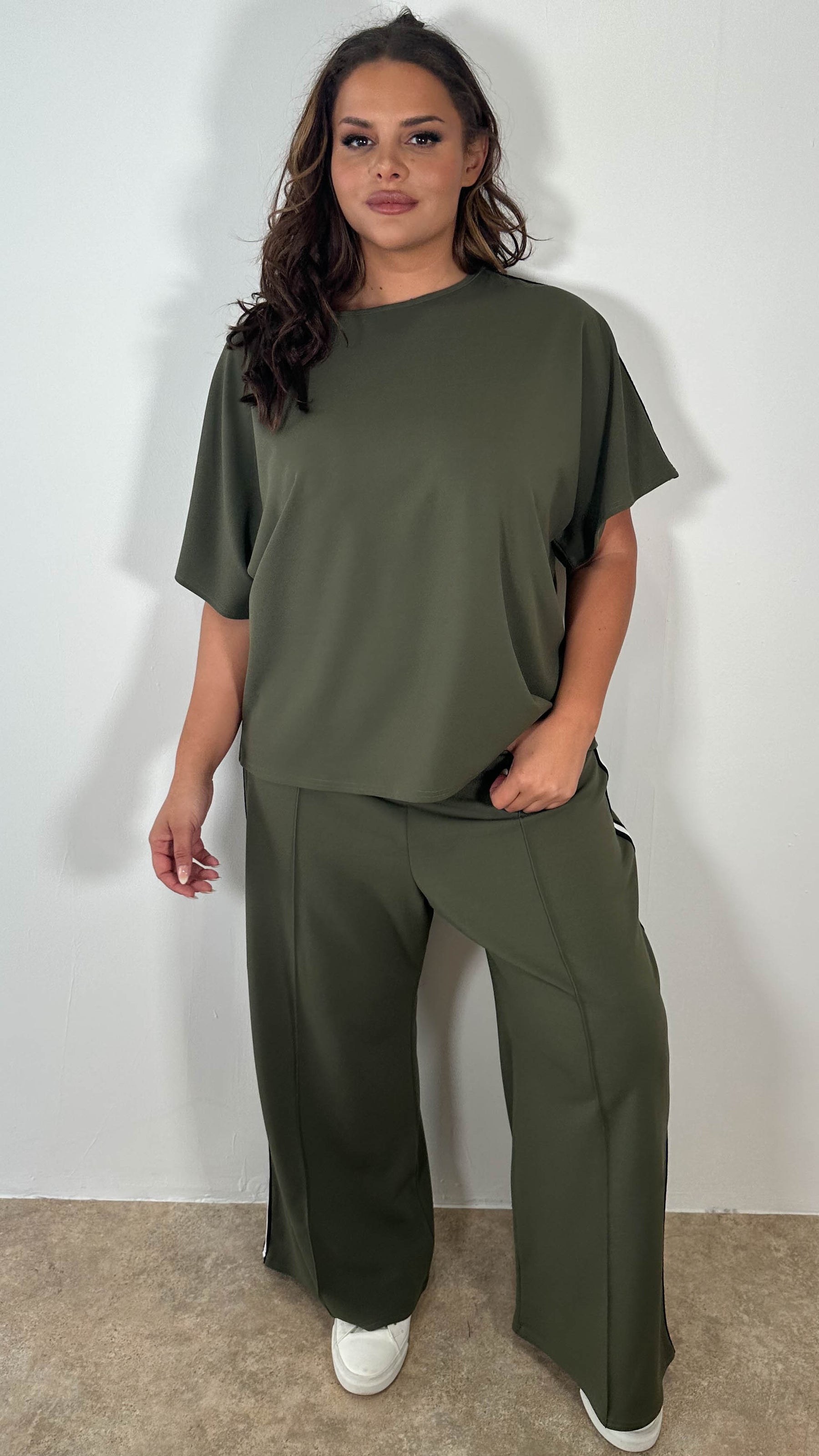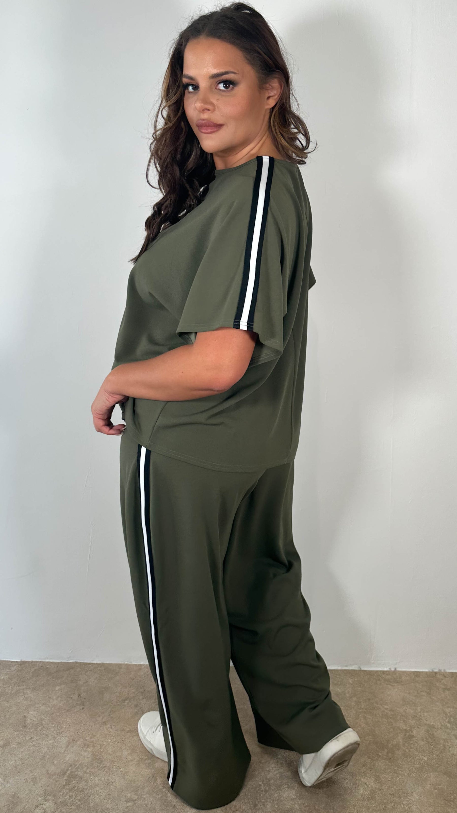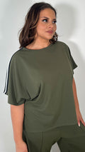CurveWow Tape Shoulder Boxy Top Co-Ord Khaki