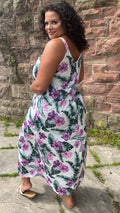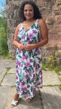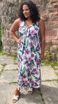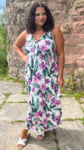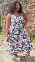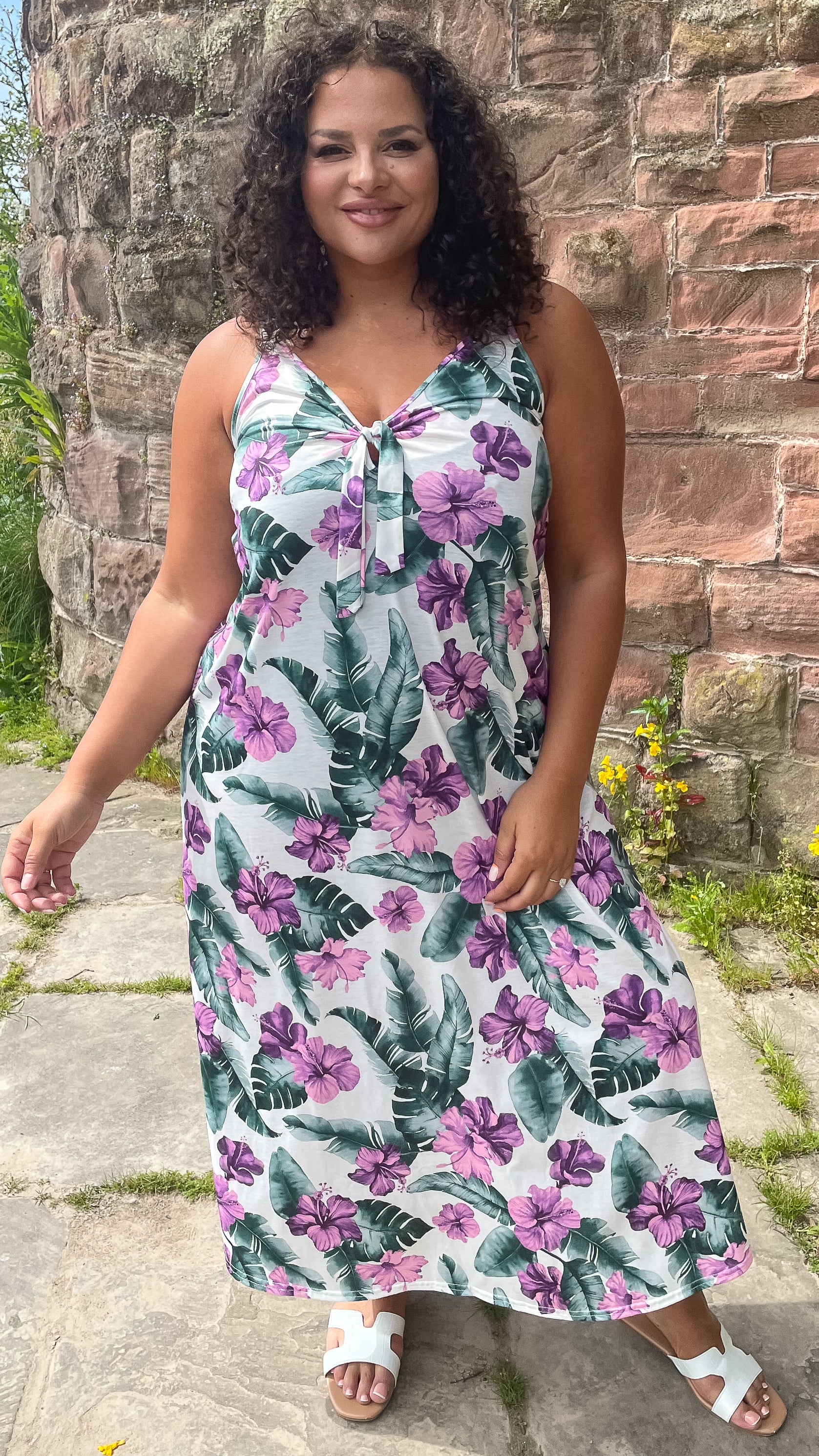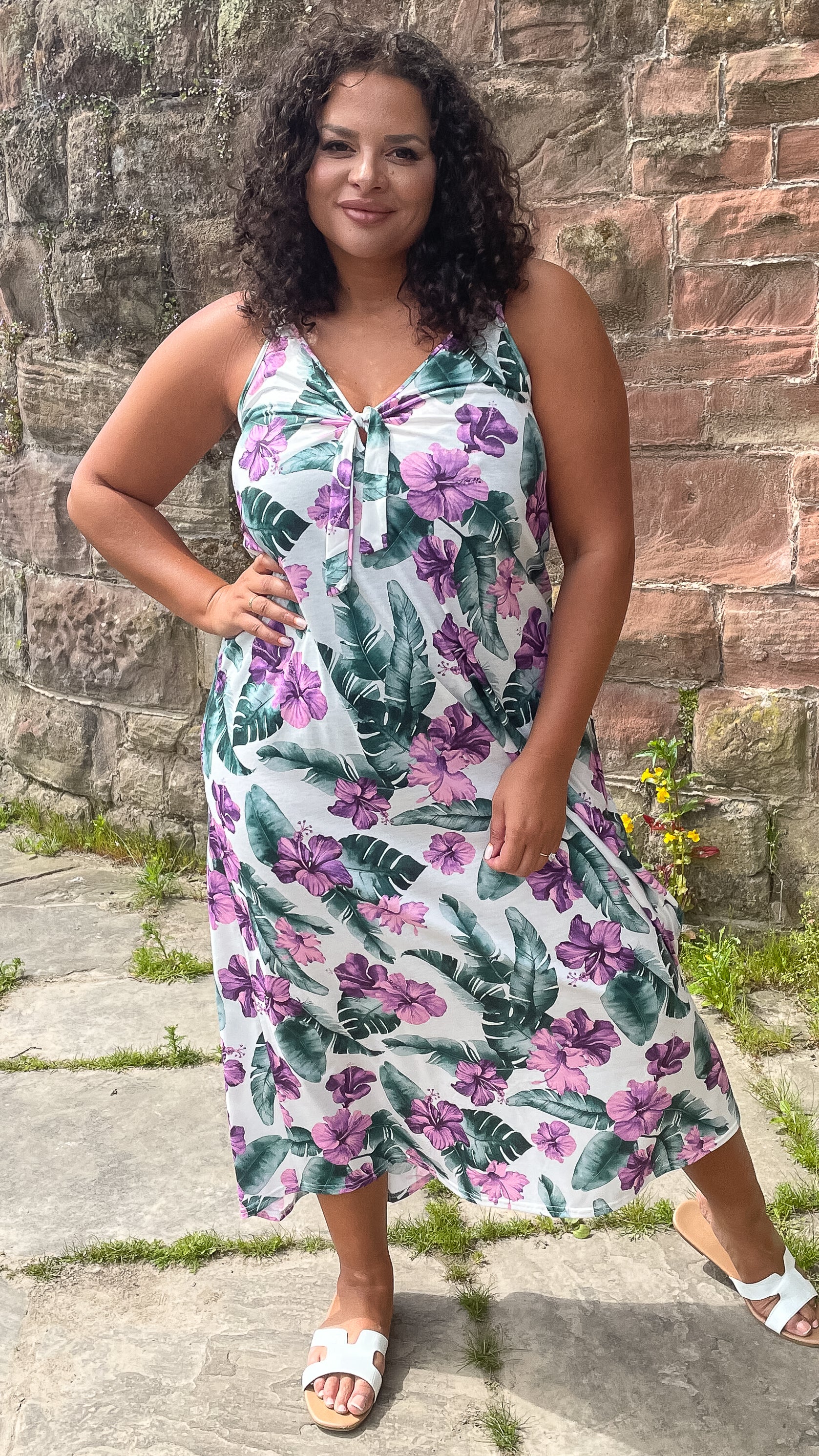 CurveWow Tie Bust Maxi Dress White Purple Floral