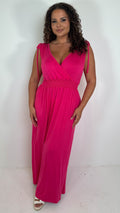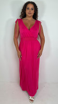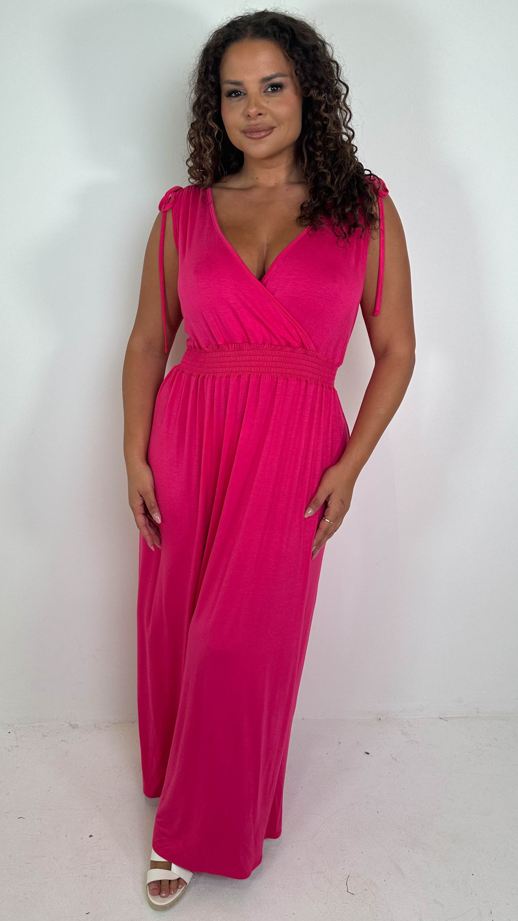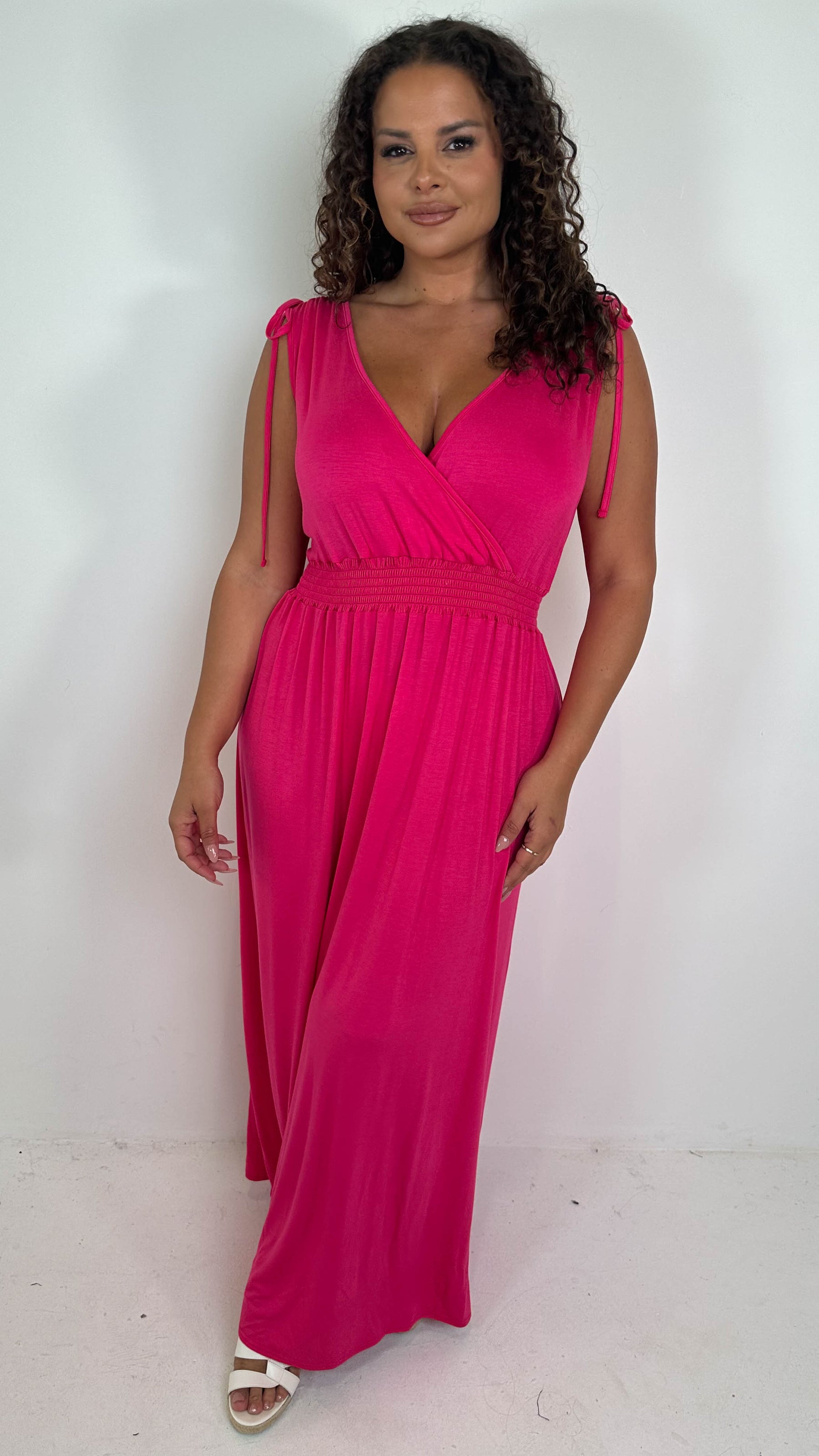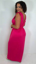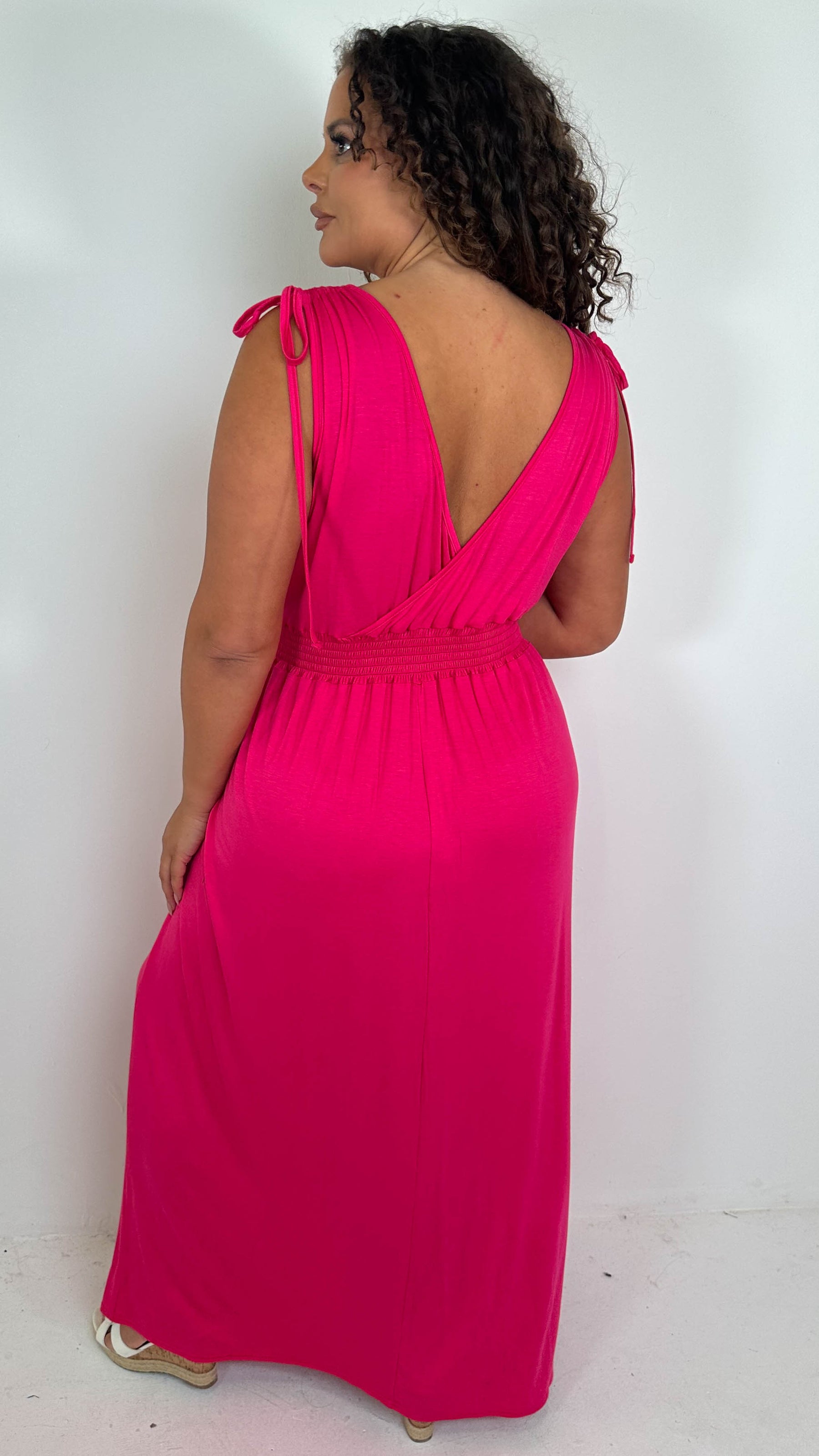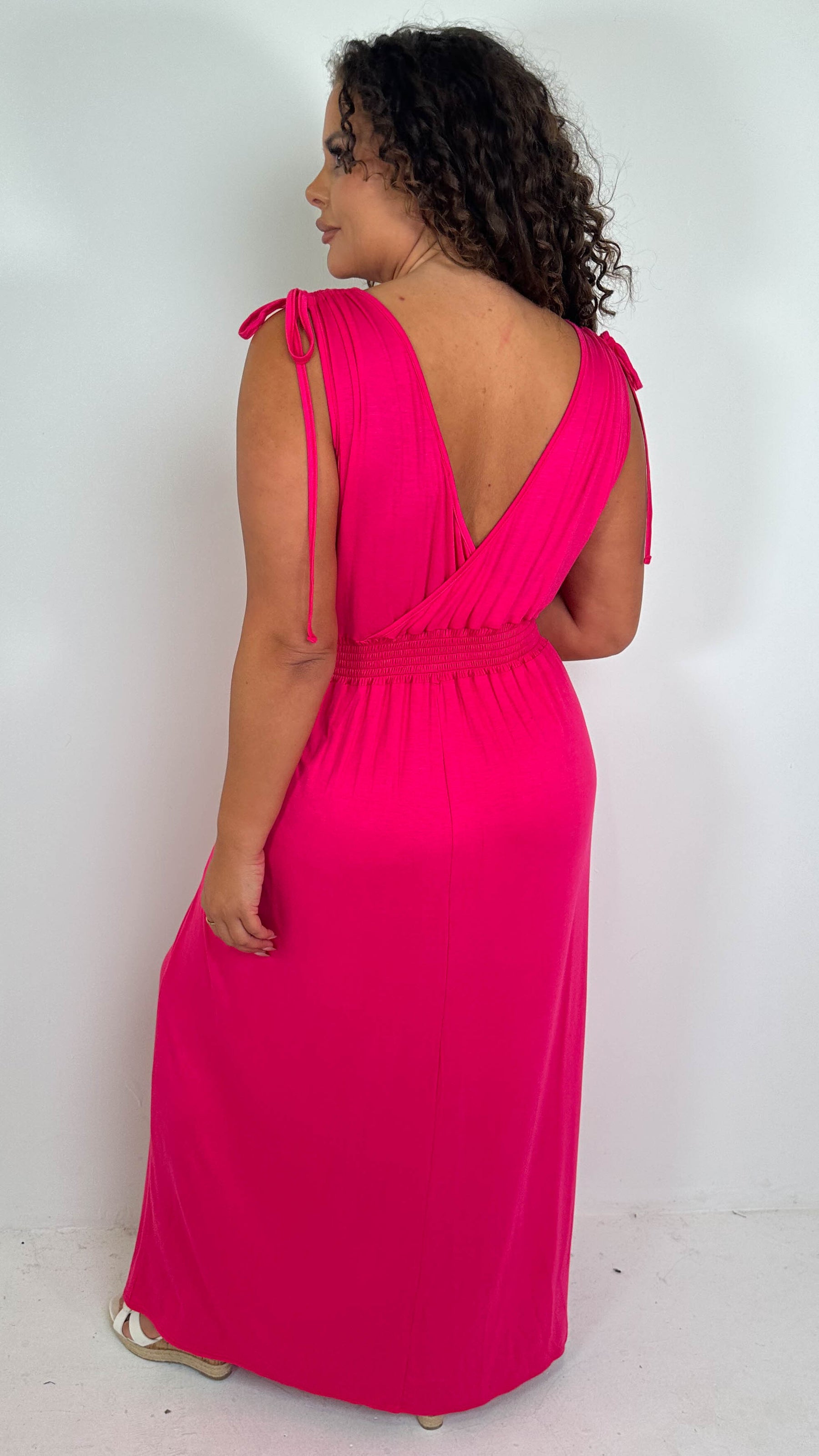 CurveWow Tie Shoulder Shirred Waist Maxi Dress Cerise