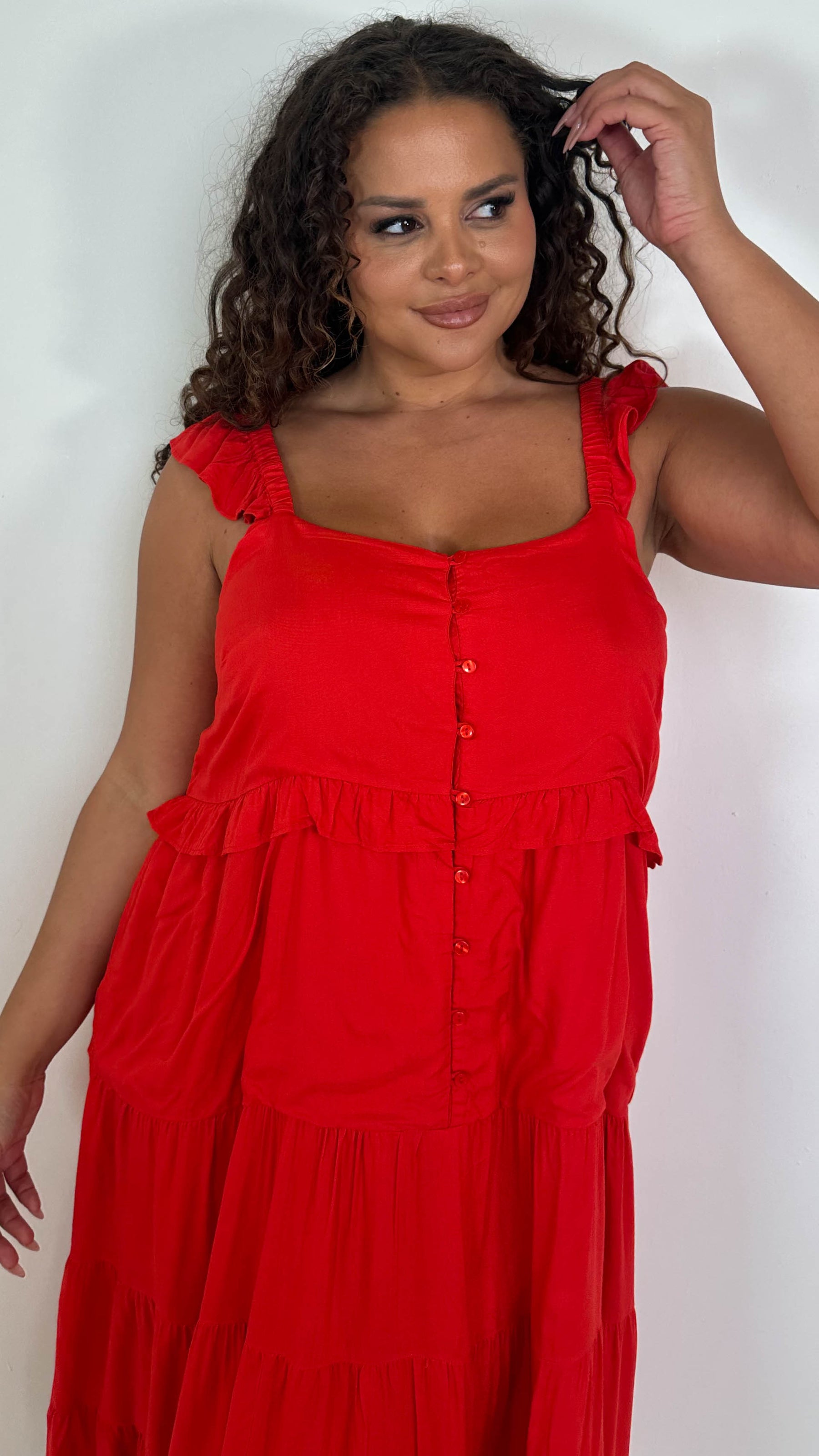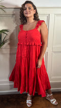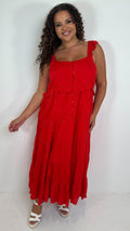CurveWow Tiered Maxi Dress Red