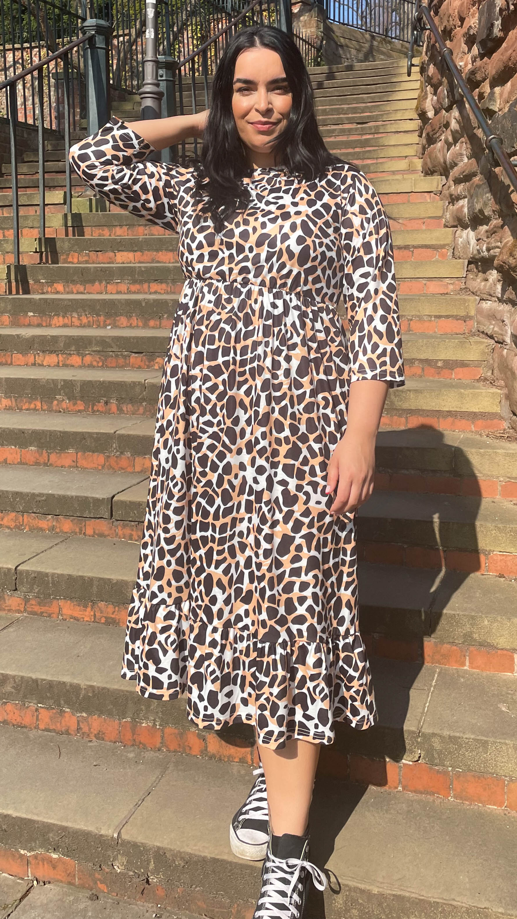 CurveWow Tiered Smock Dress Giraffe Print