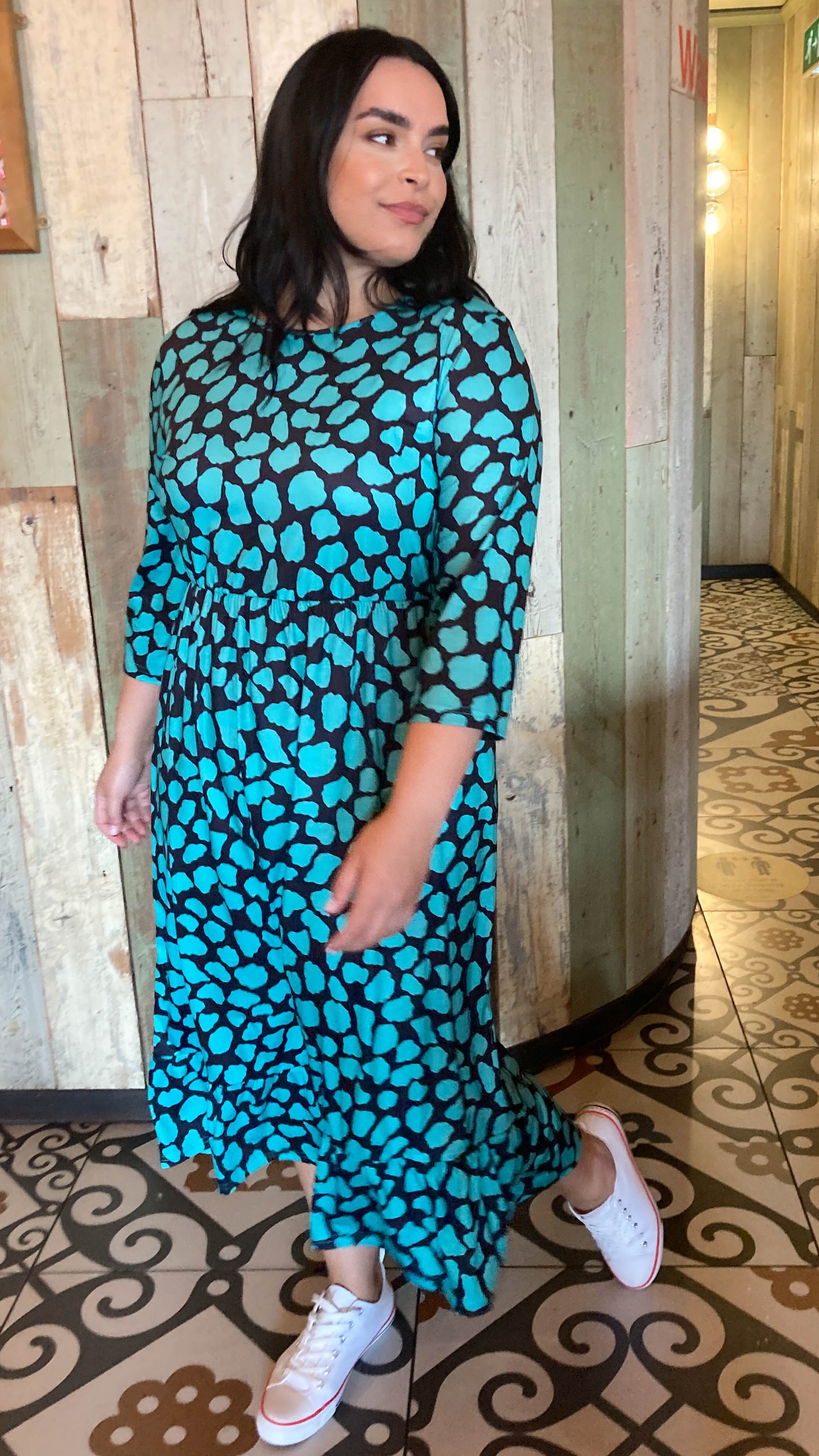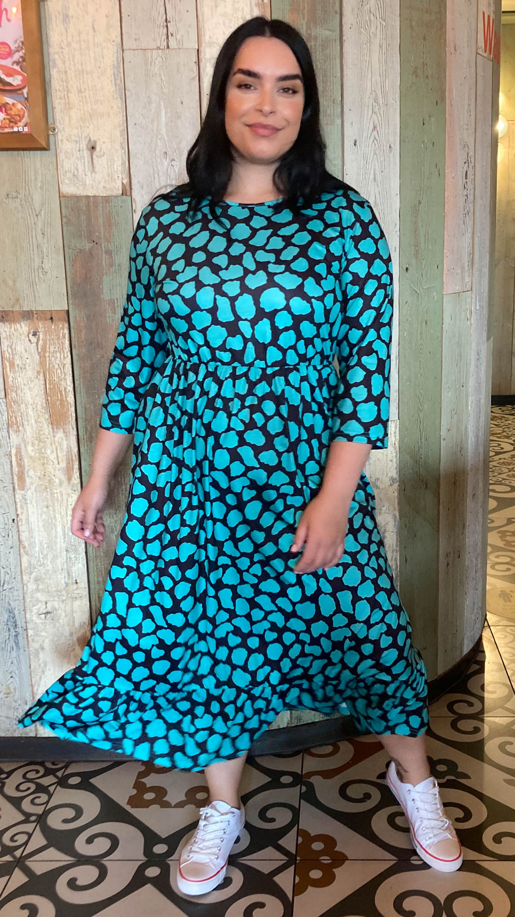 CurveWow Tiered Smock Dress Green Croc