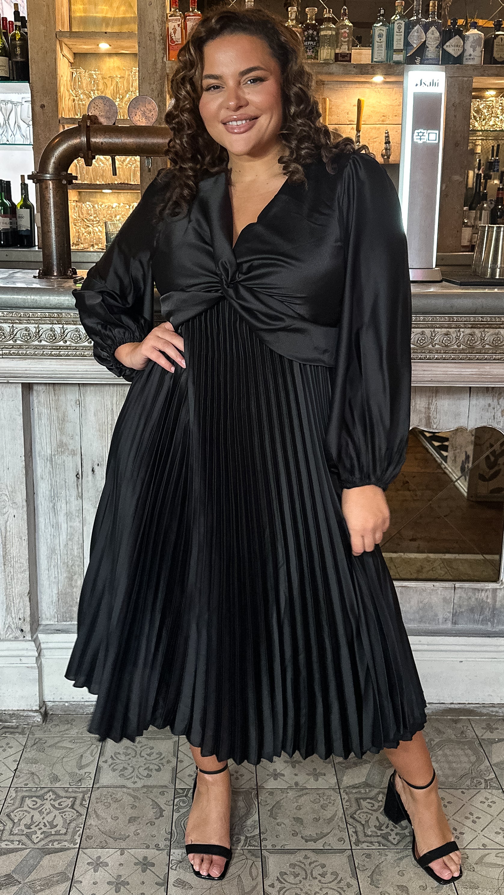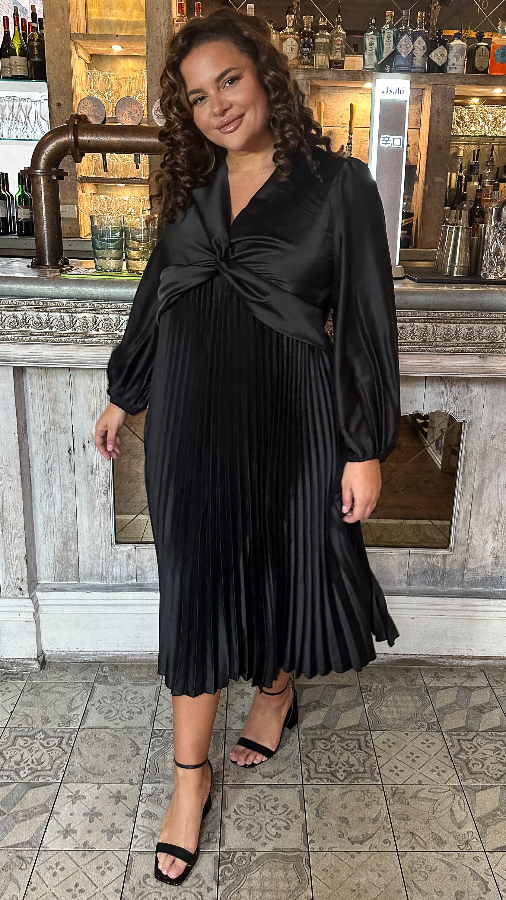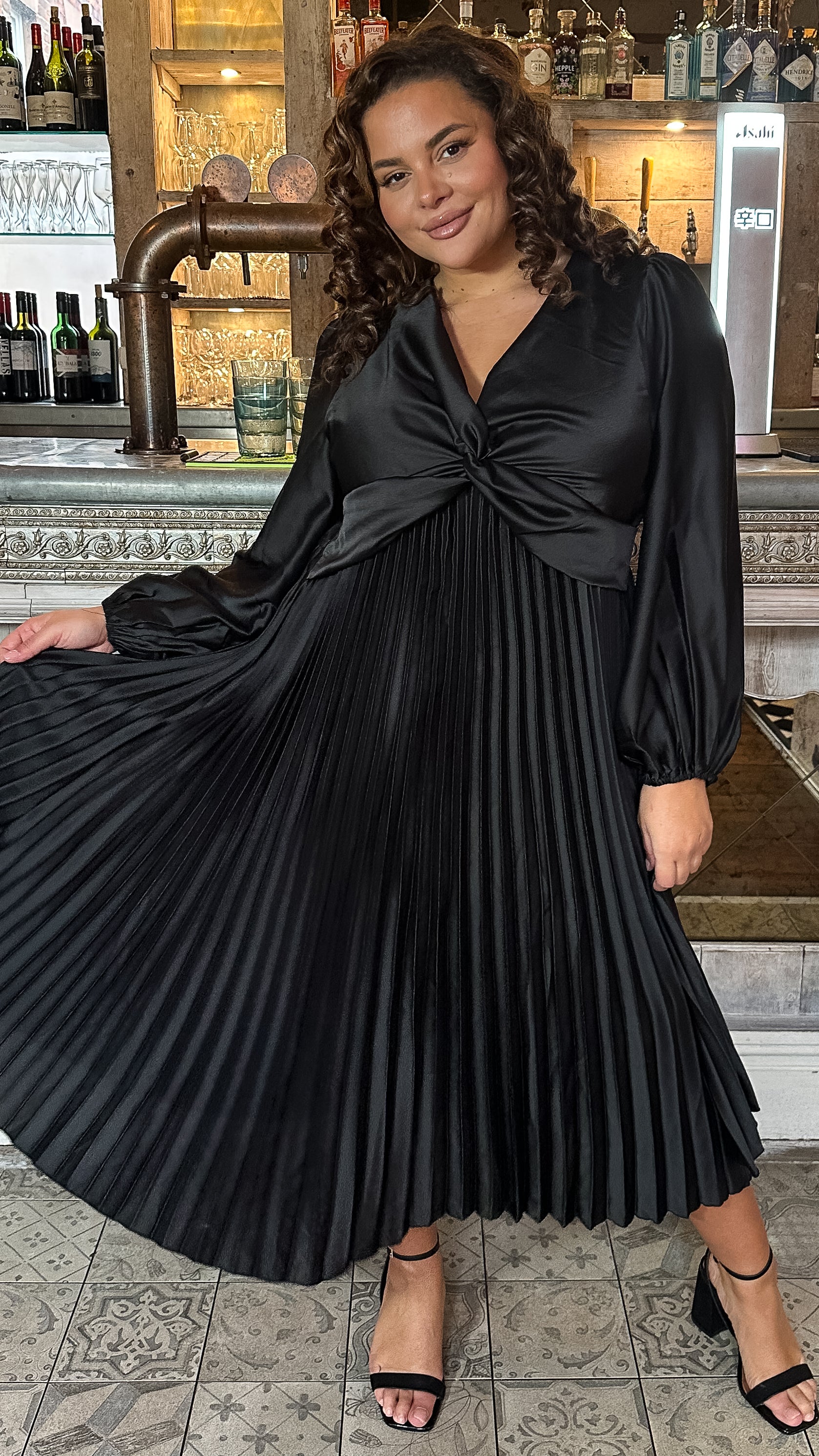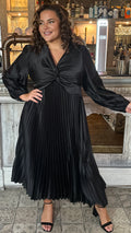 CurveWow Twist Front Satin Midi Black