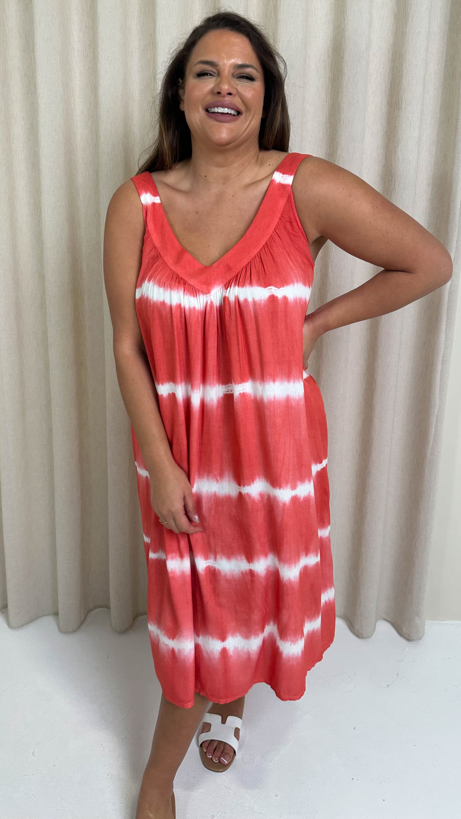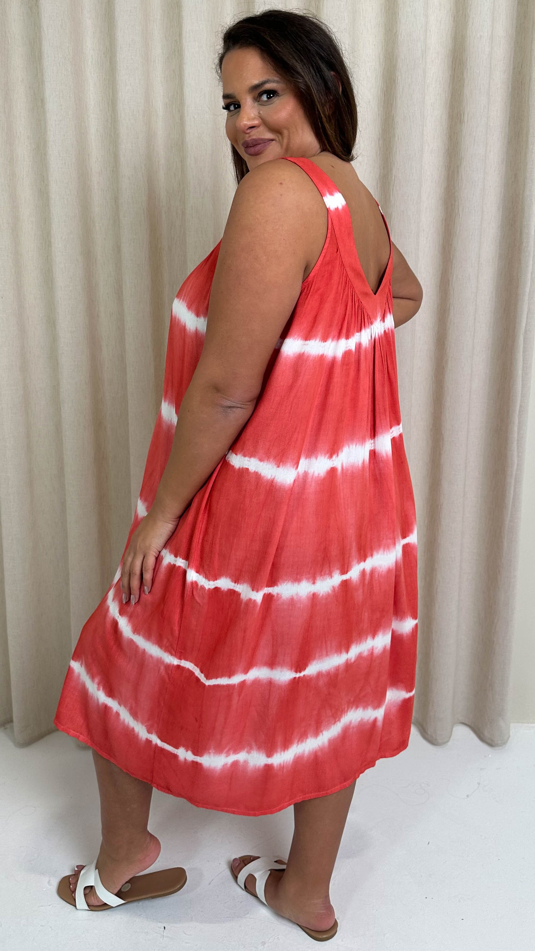CurveWow Tye Dye Sun Dress Salmon