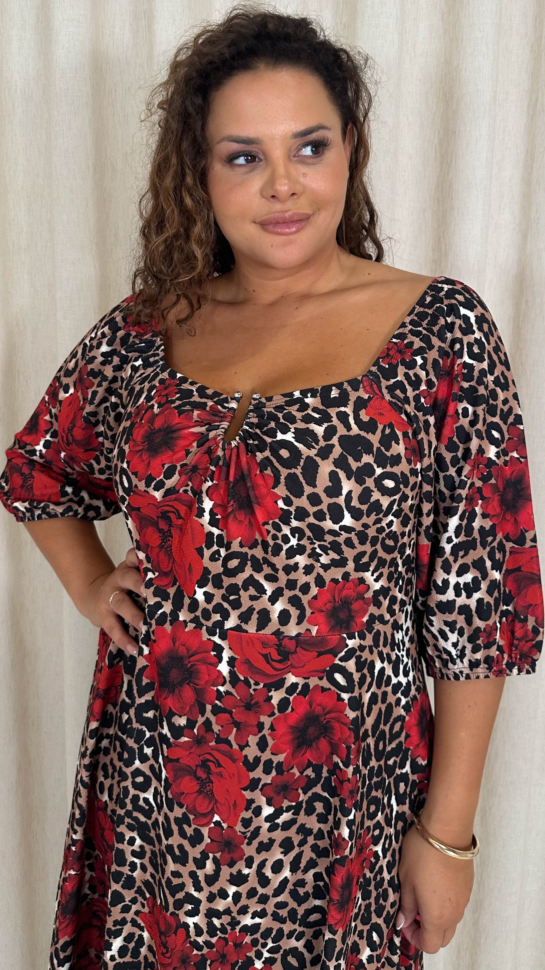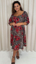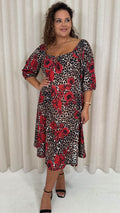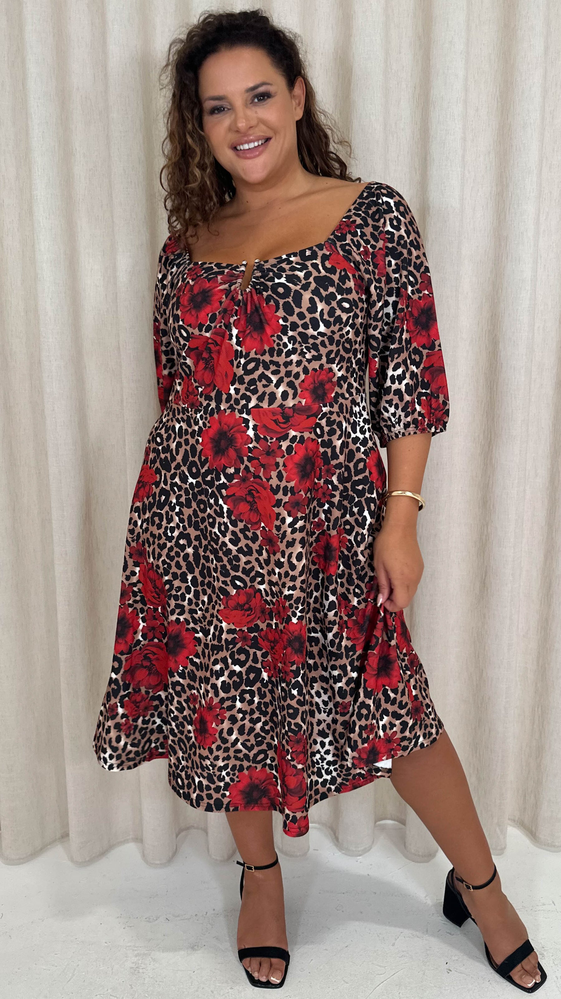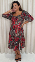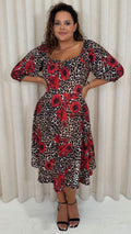 CurveWow Ubar Midi Dress Leopard Rose Print