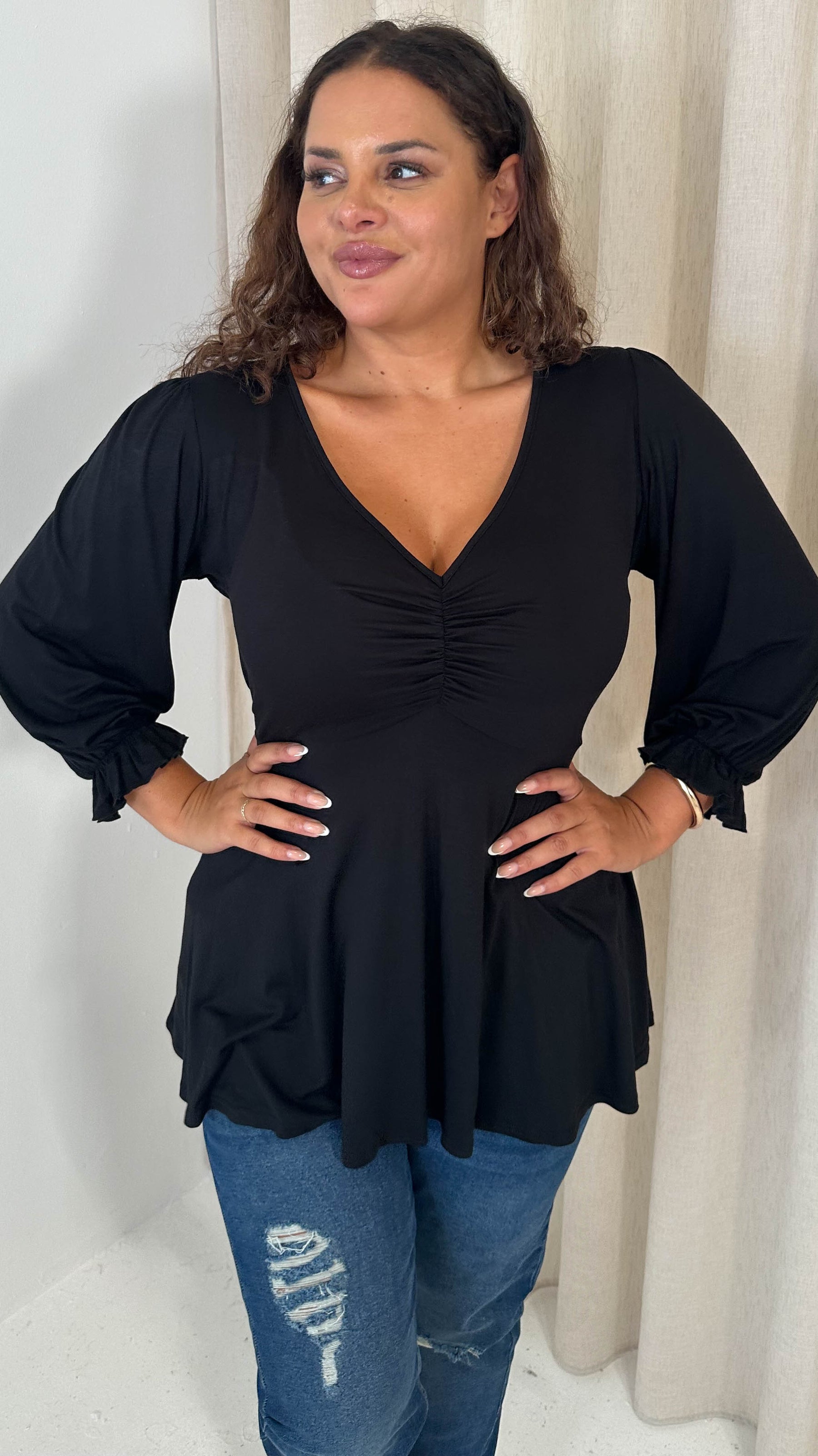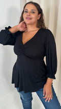 CurveWow V Neck Peplum Top Black