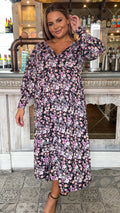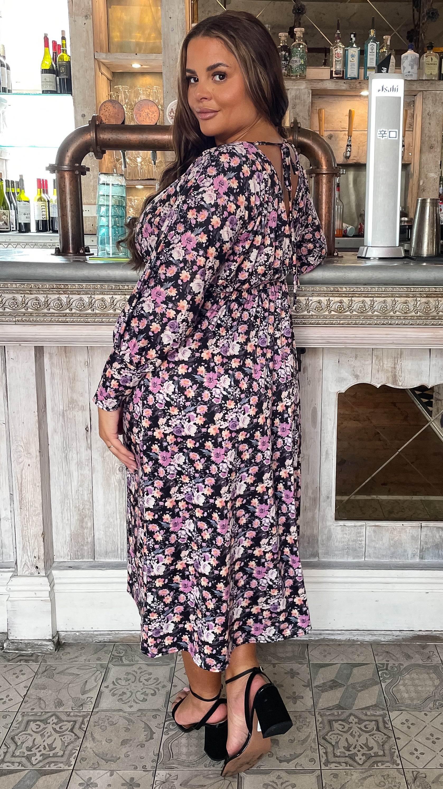 CurveWow Long Sleeve Tie Back Wrap Dress Floral