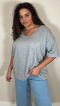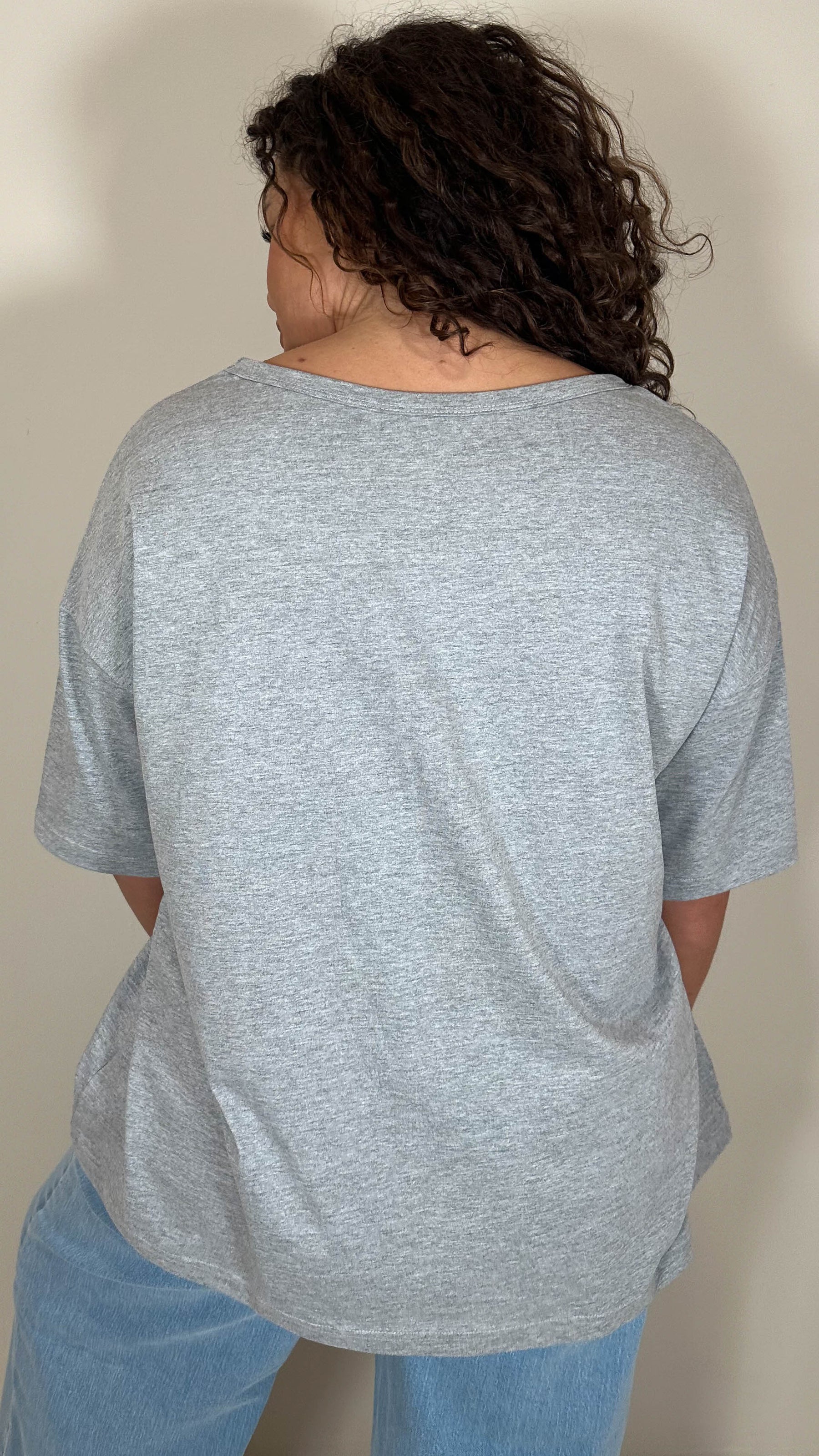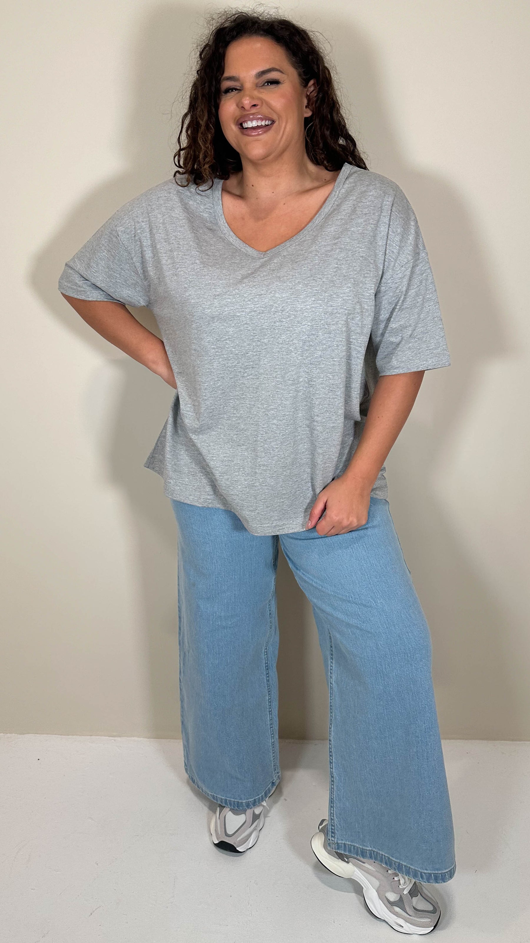 CurveWow Oversized V Neck Basic T-Shirt Grey