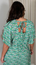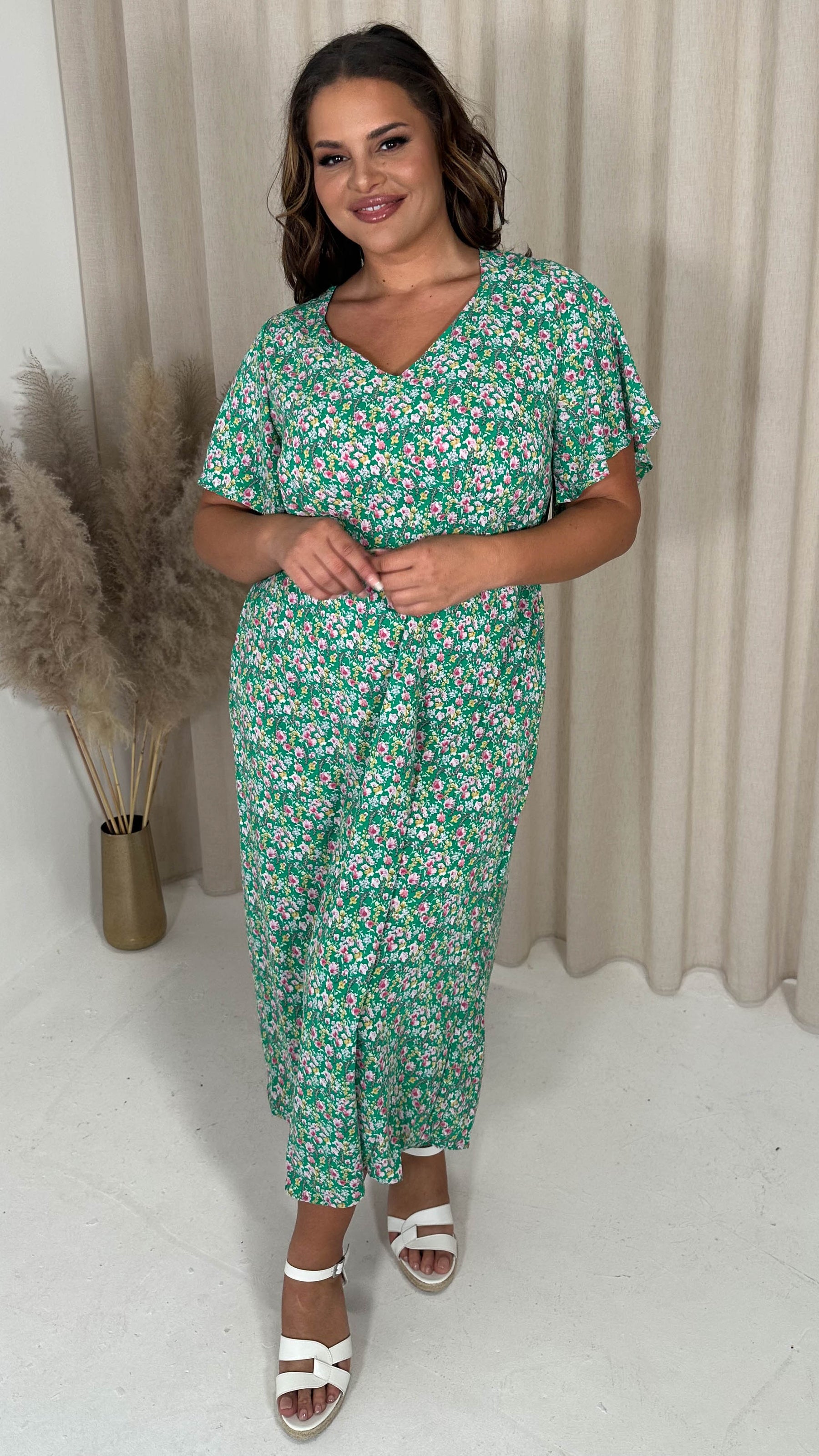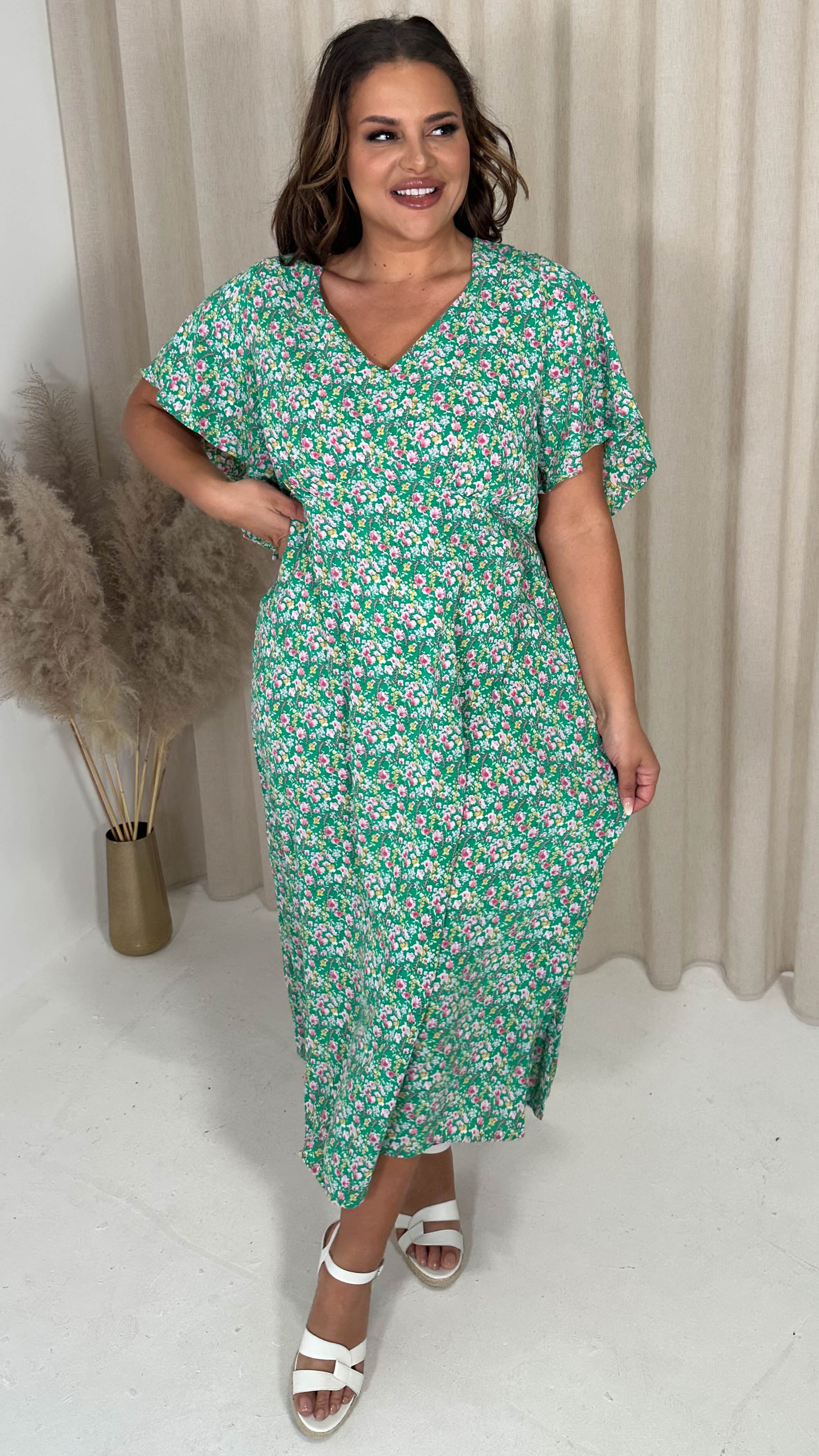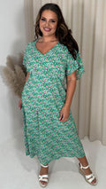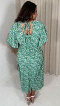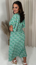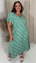 CurveWow Vneck Tie Back Midi Dress Green Ditsy