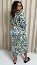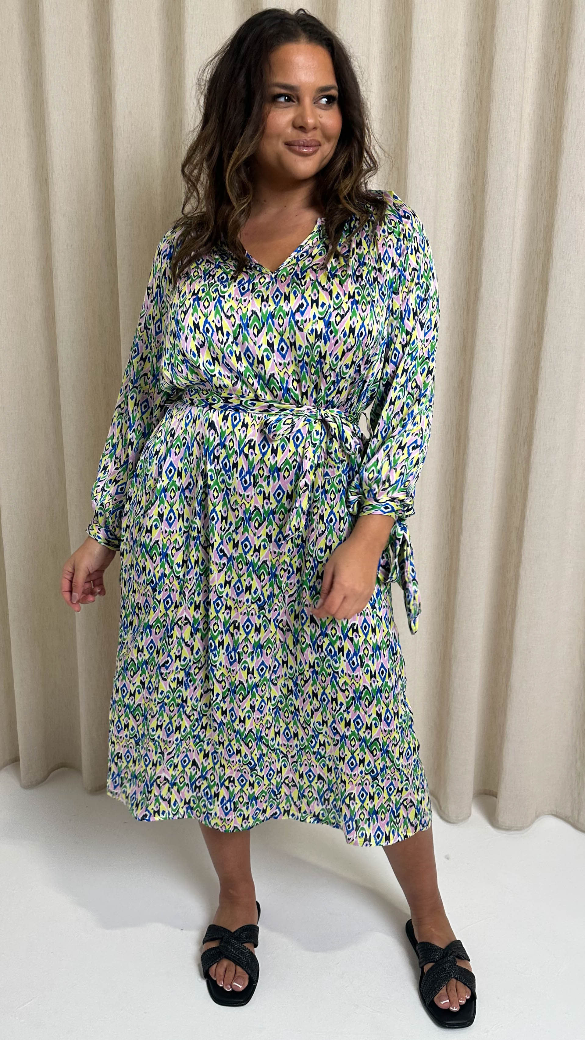 CurveWow V Neck Tie Waist Dress Multi Aztec