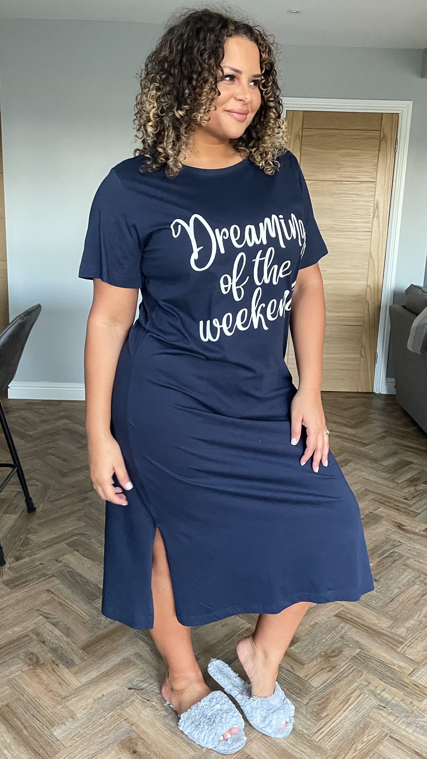 CurveWow 'Weekend' Slogan Nightgown Navy