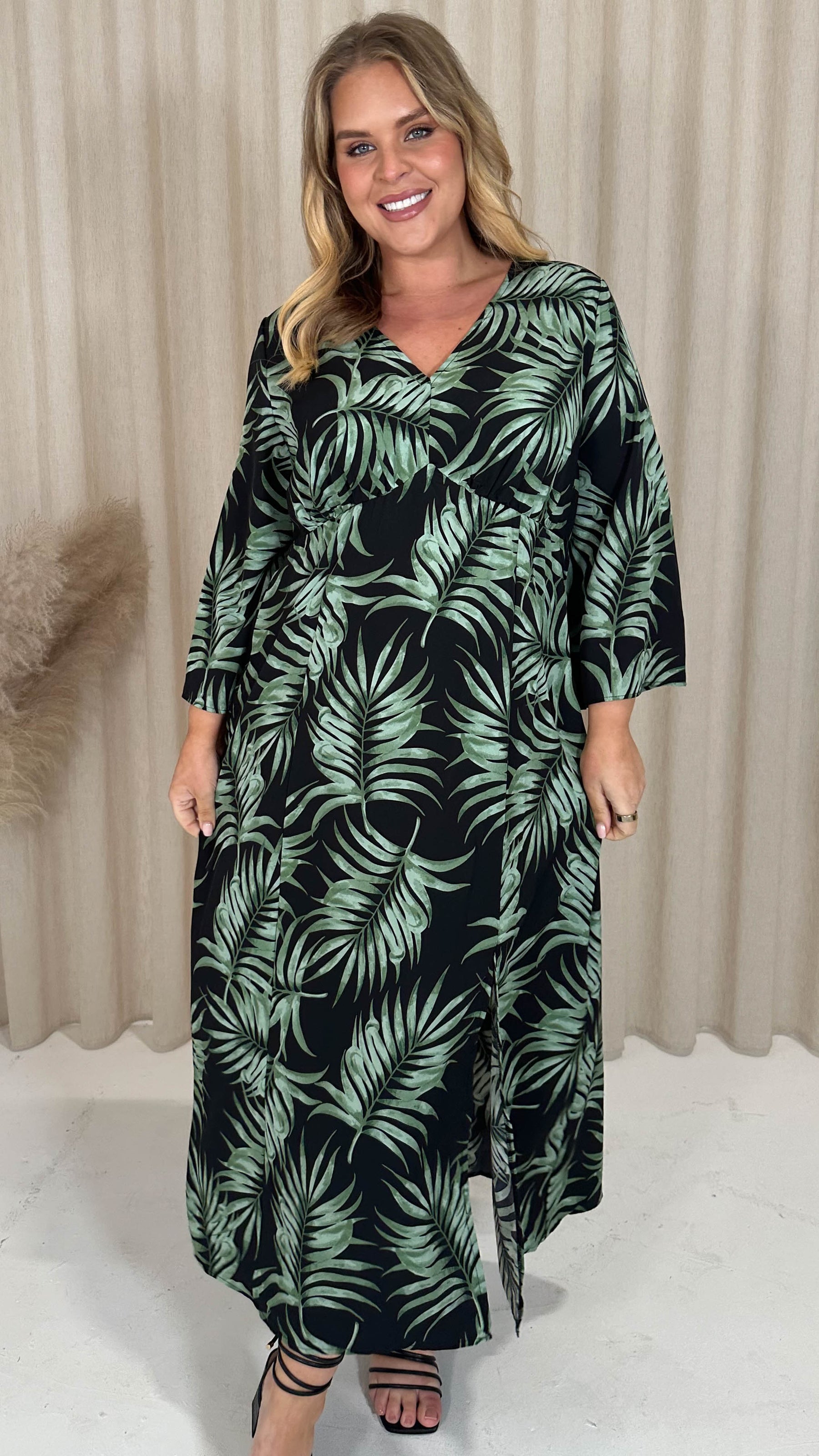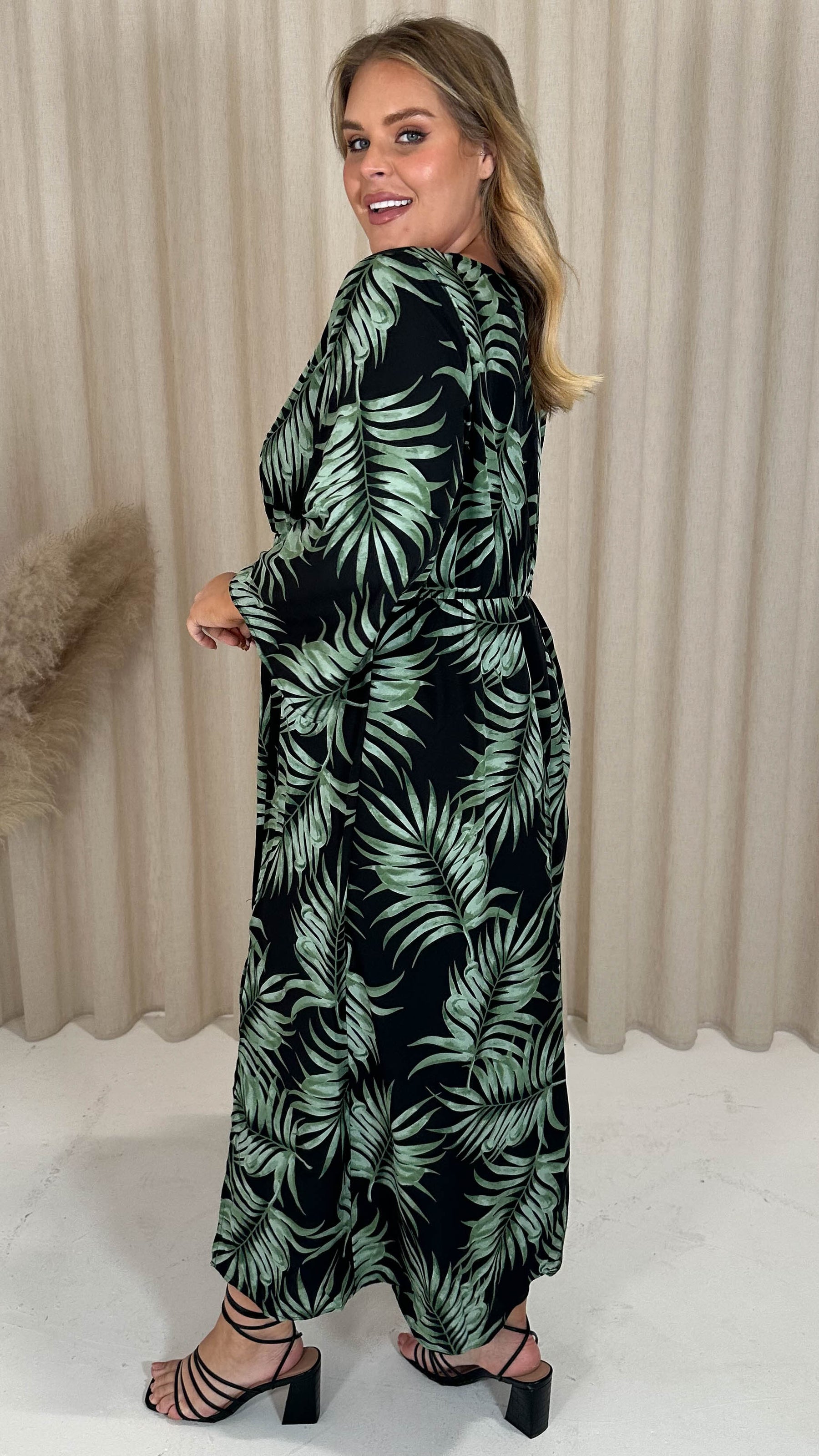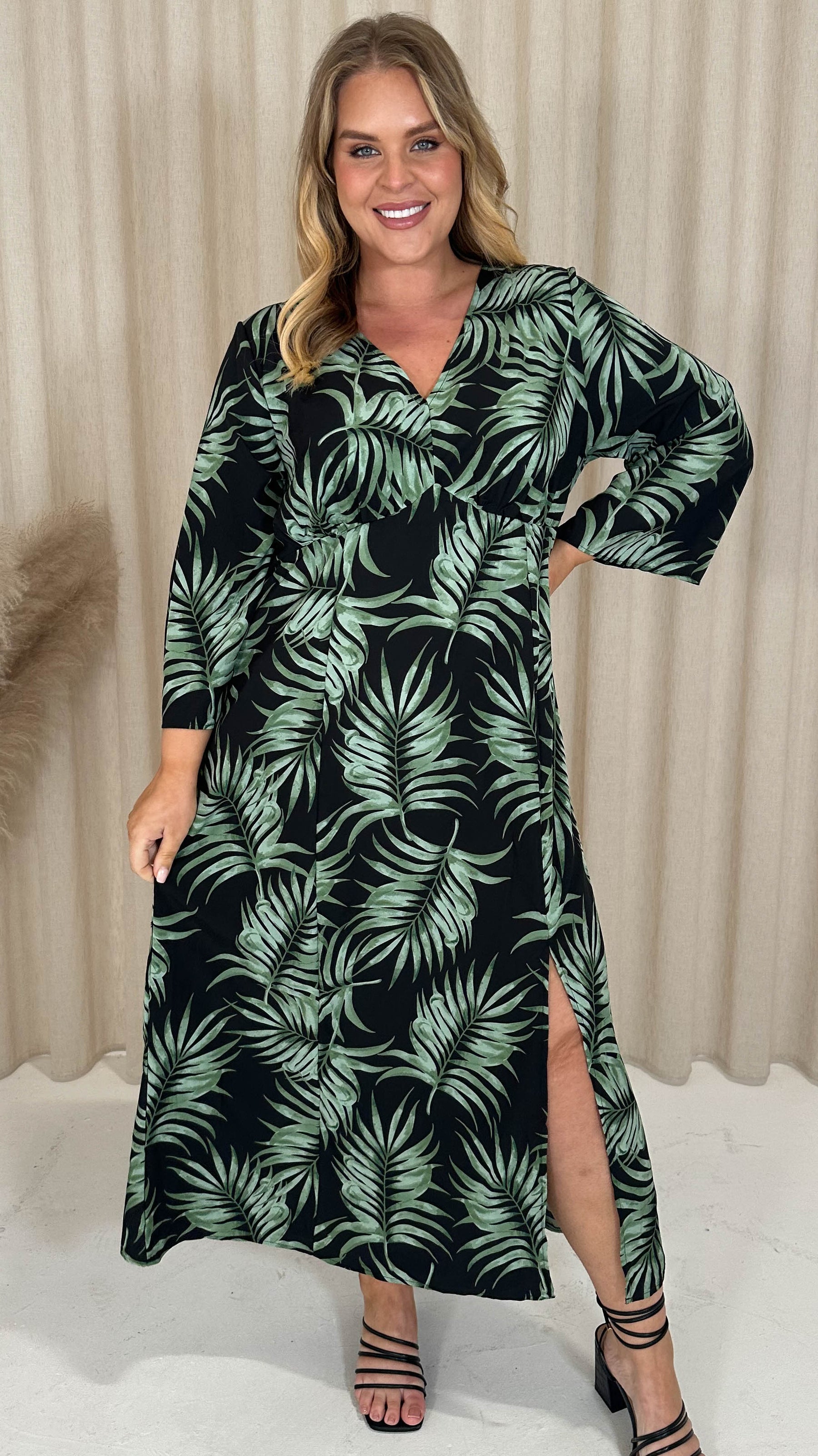 CurveWow 3/4 Balloon Sleeve Wrap Midi Dress Red
