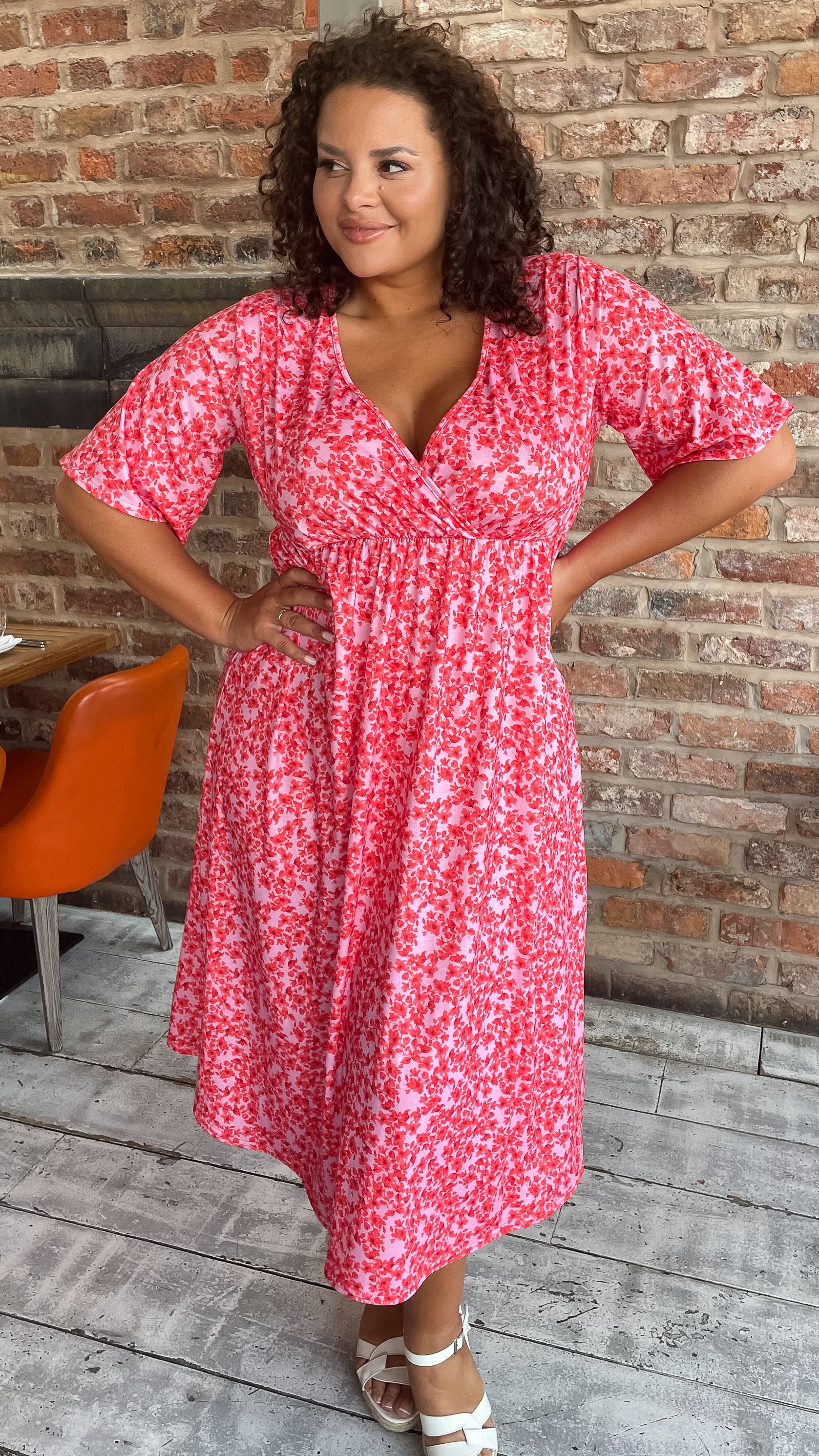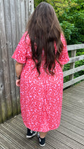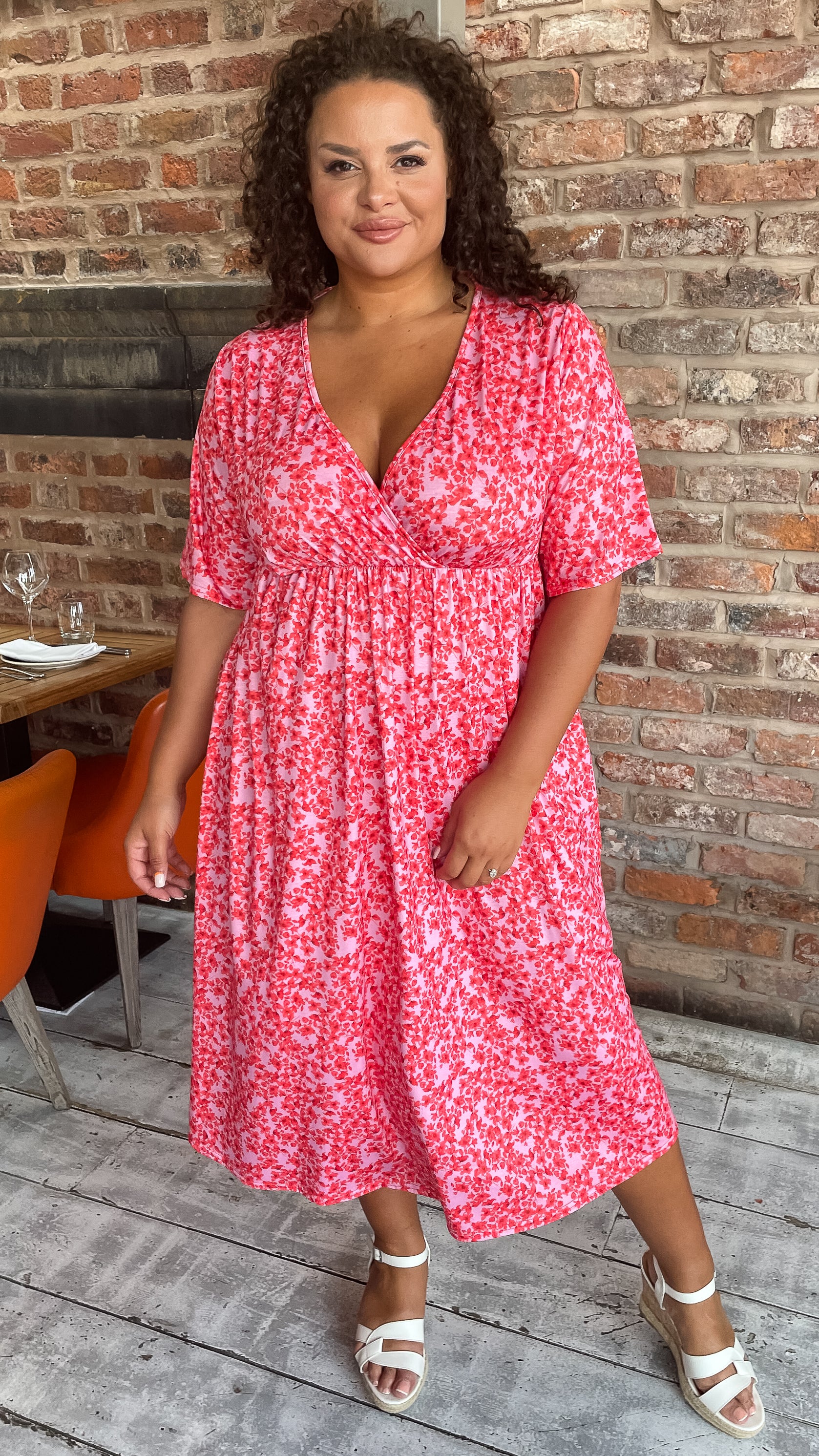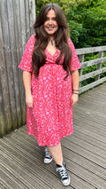 CurveWow Wrap Midi Dress Pink Ditsy Floral