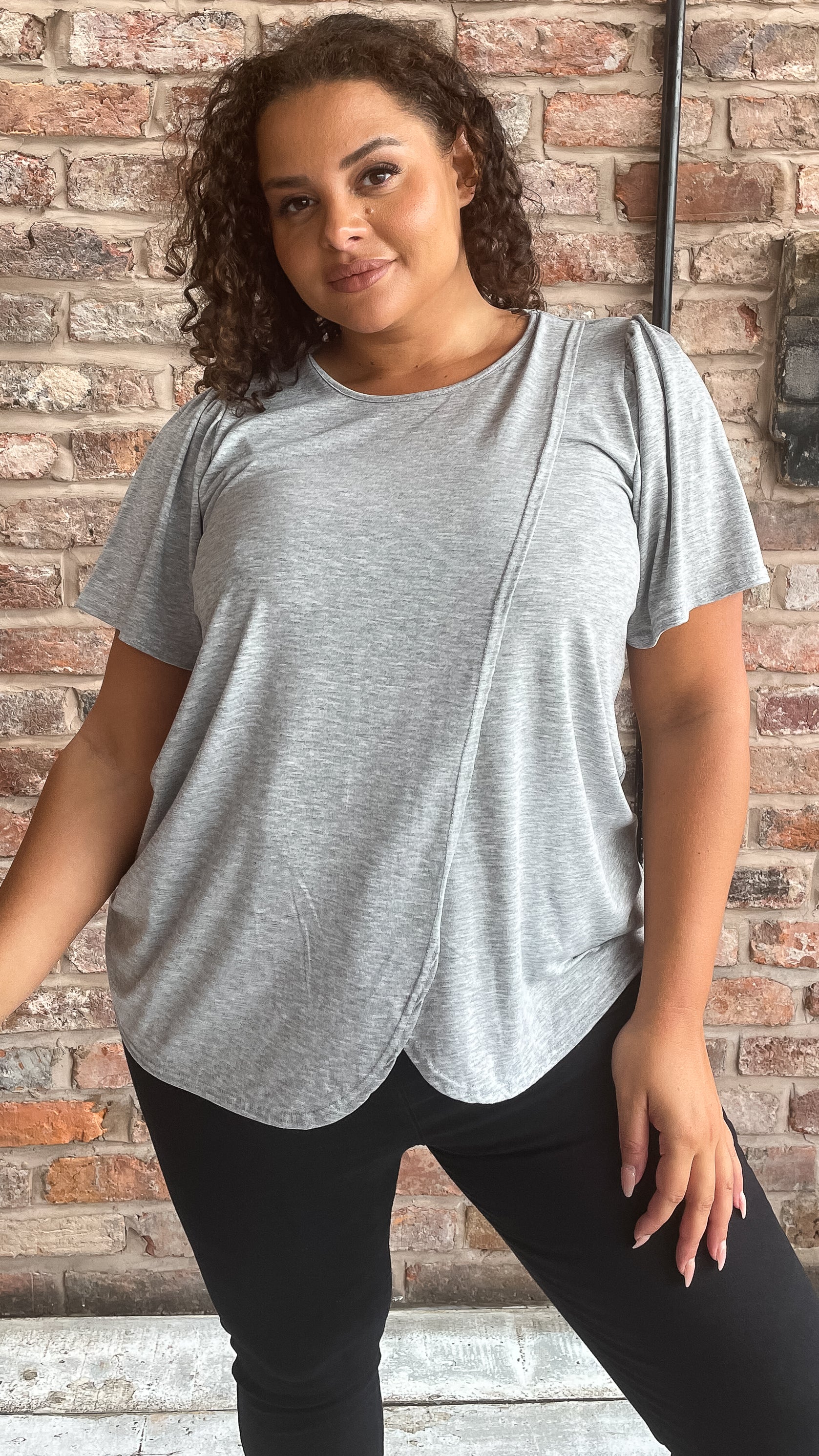 CurveWow Mesh Angel Sleeve Twist Neck Top Black