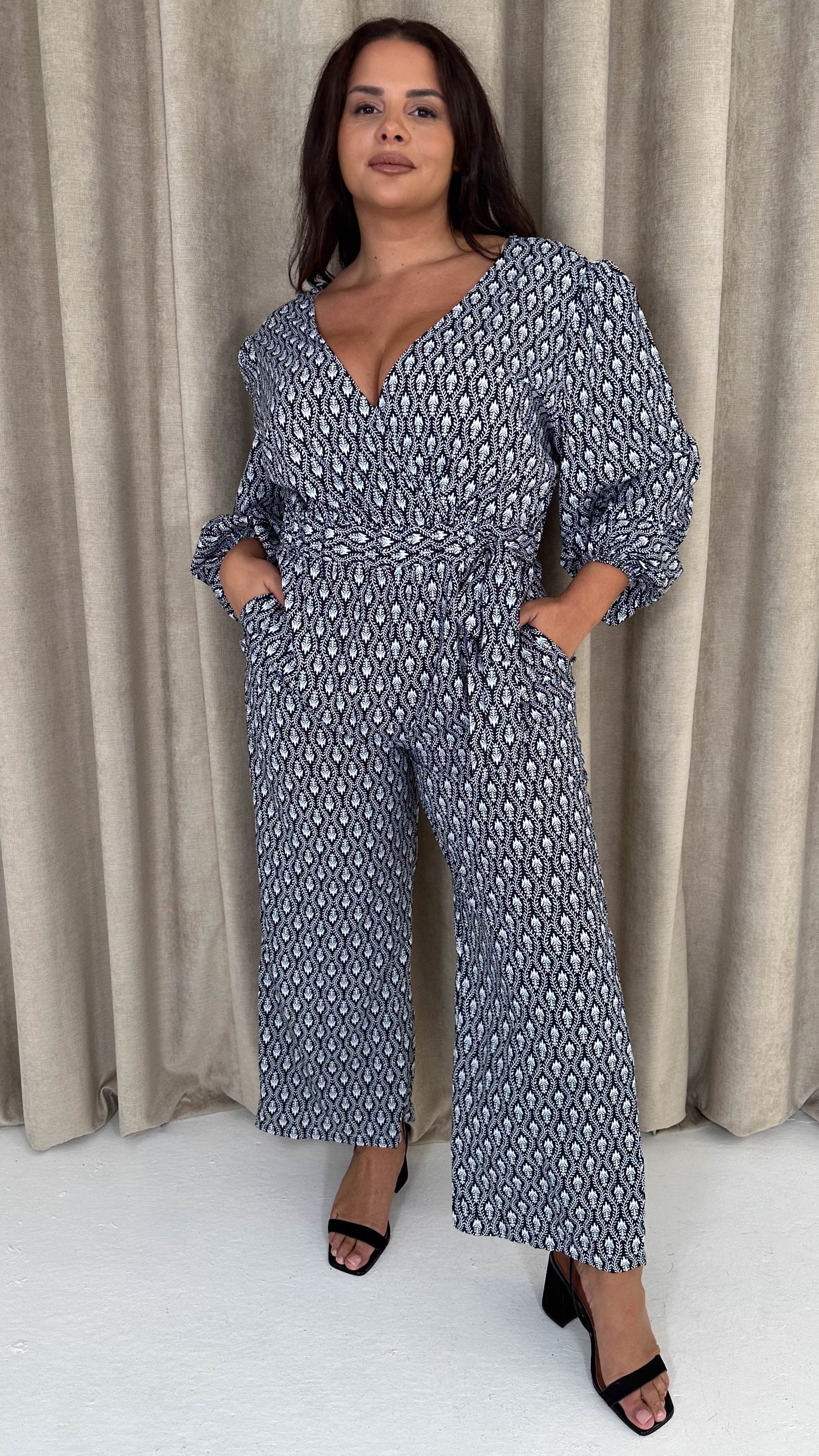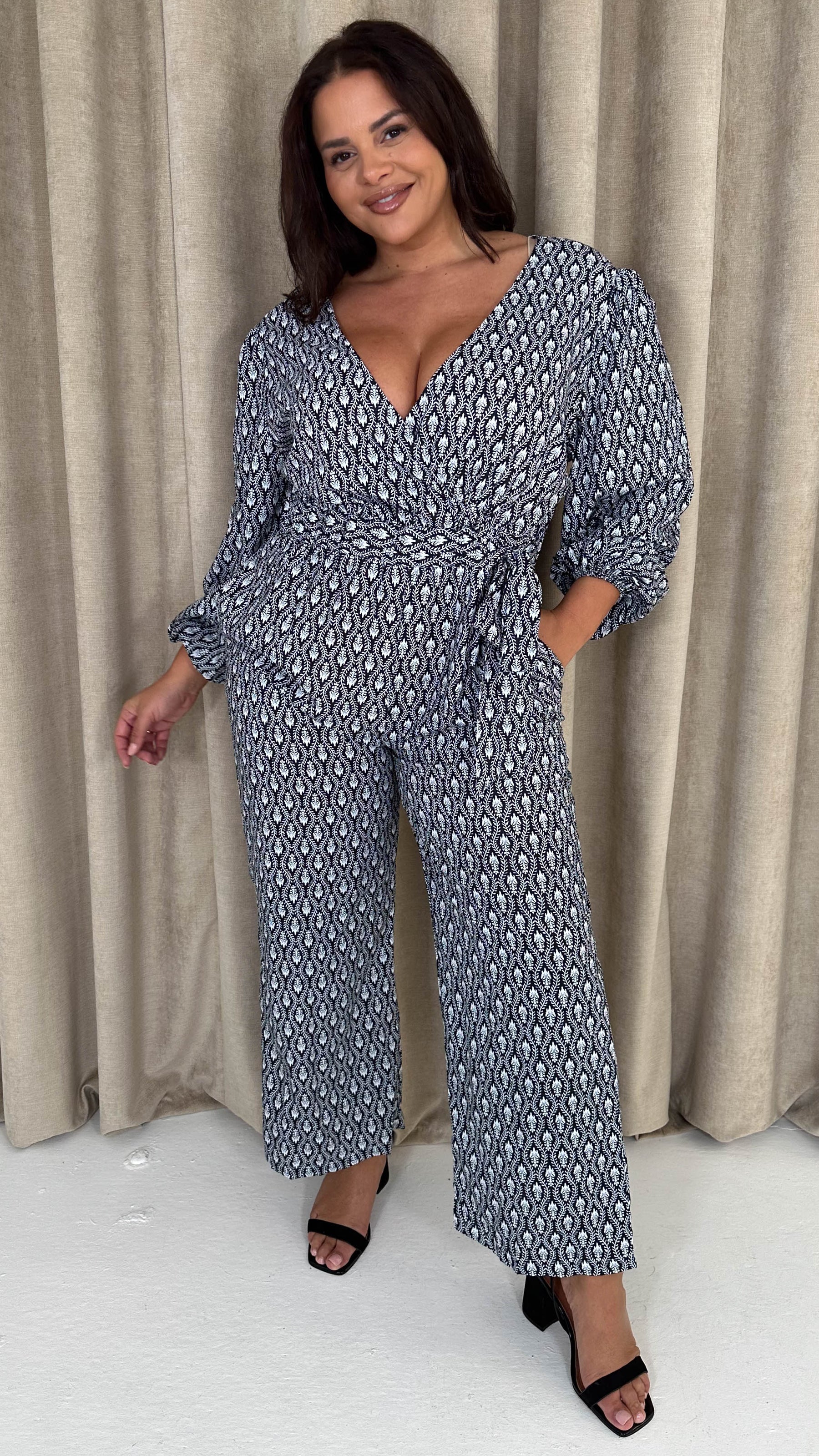 CurveWow Wrap Tie Side Jumpsuit Black Mono