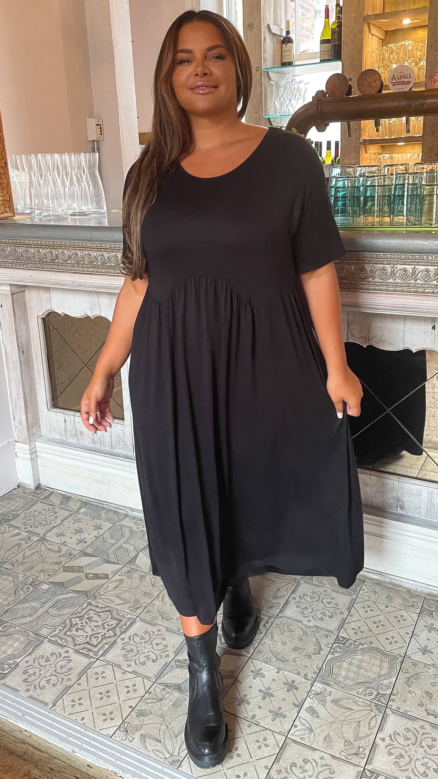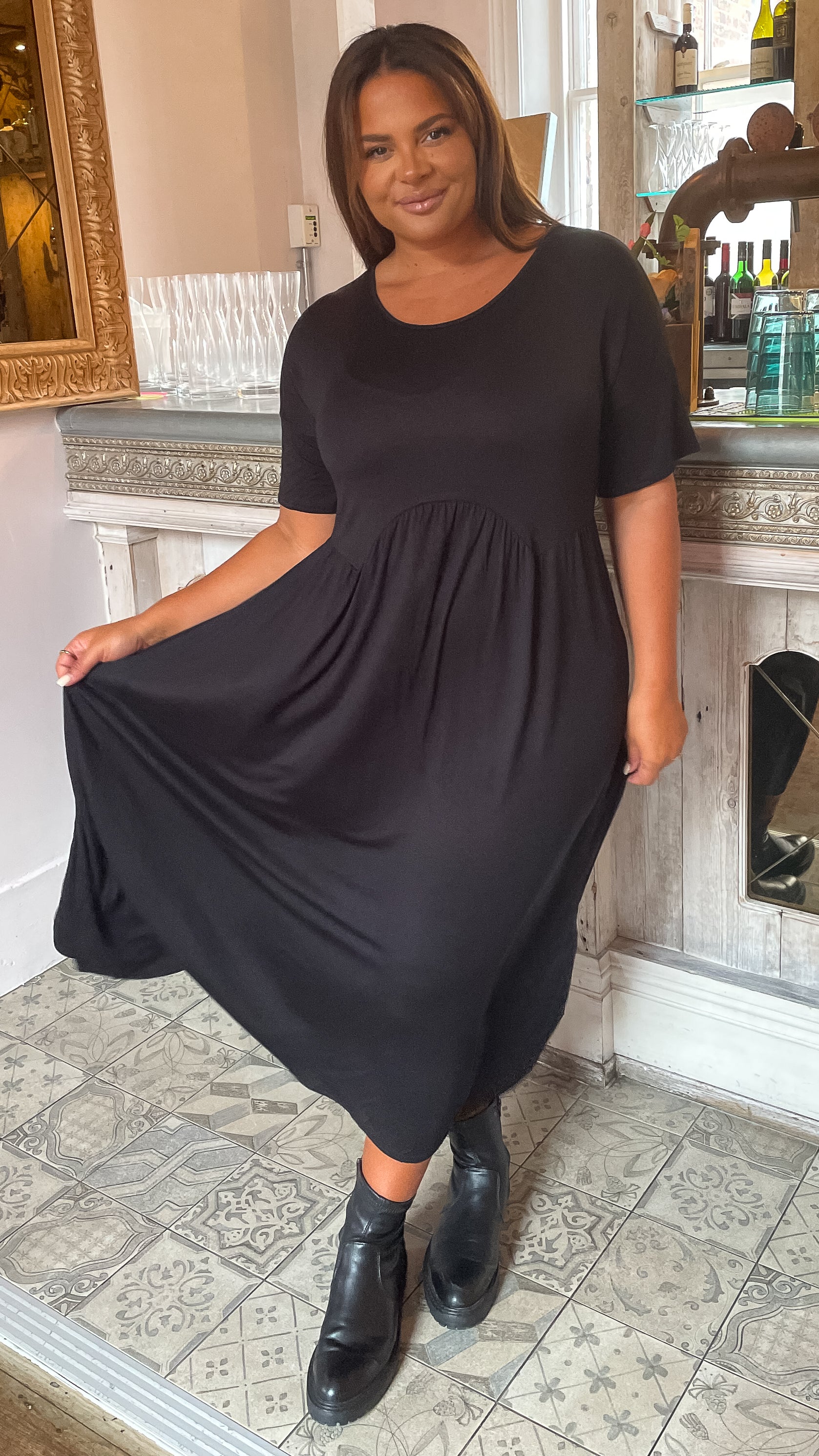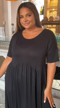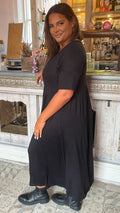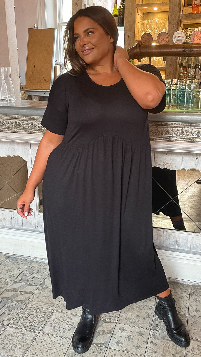 CurveWow Drop Shoulder Shaped Waist Midi Dress Black