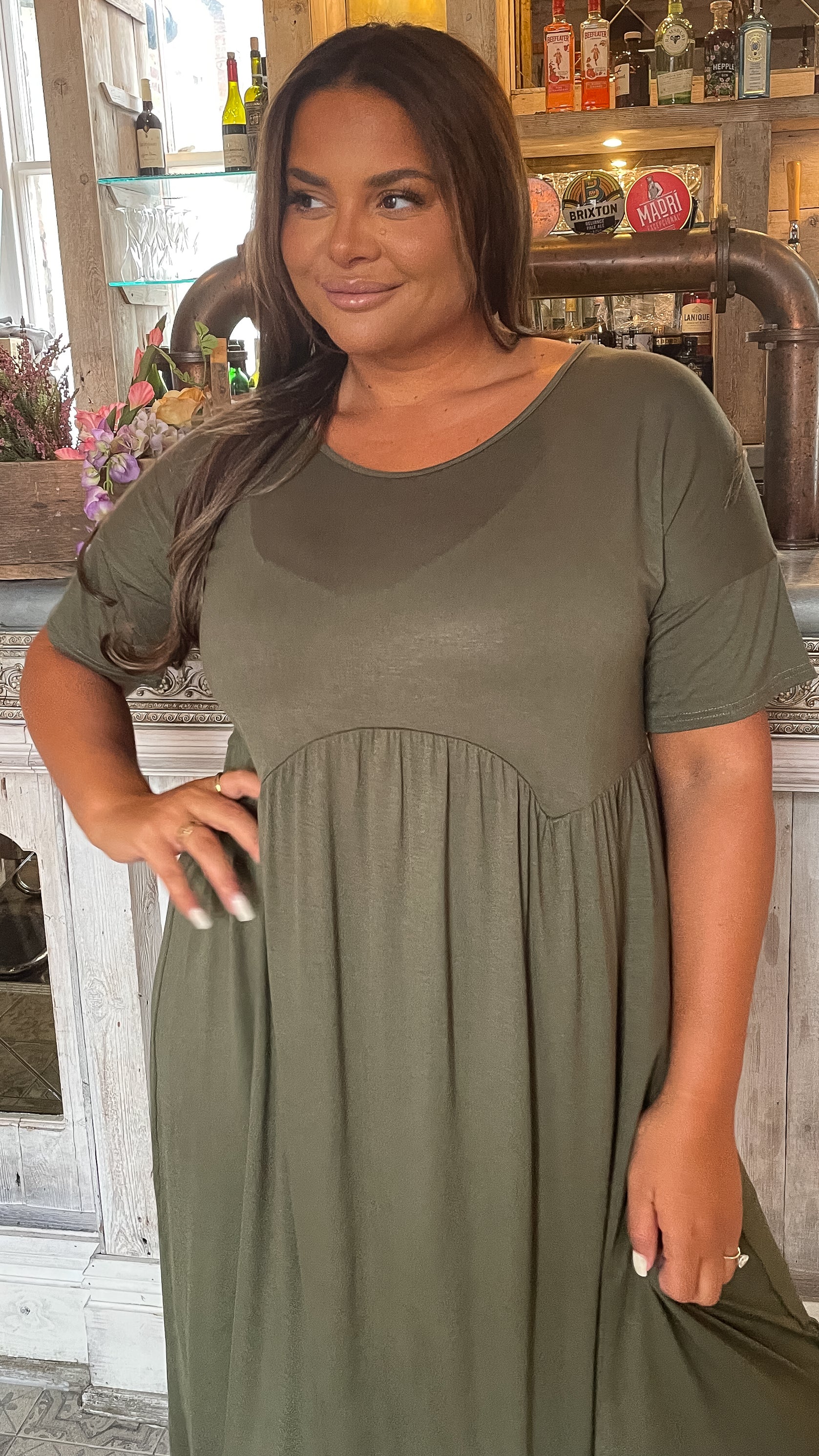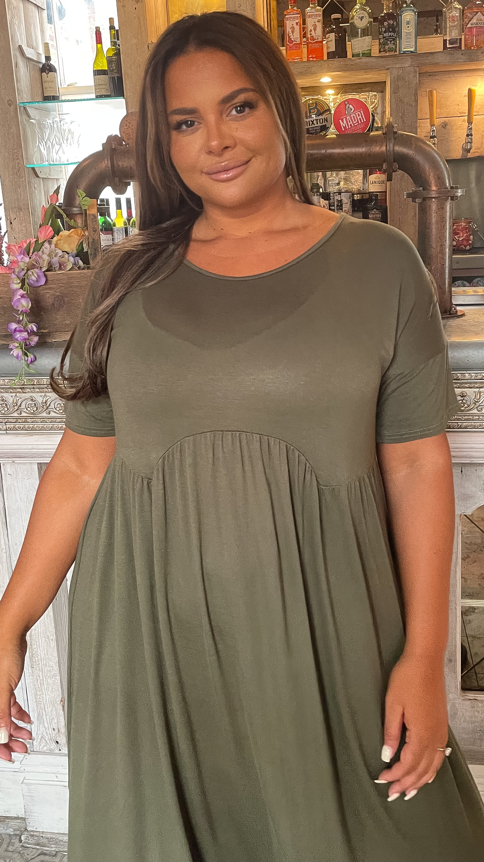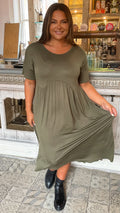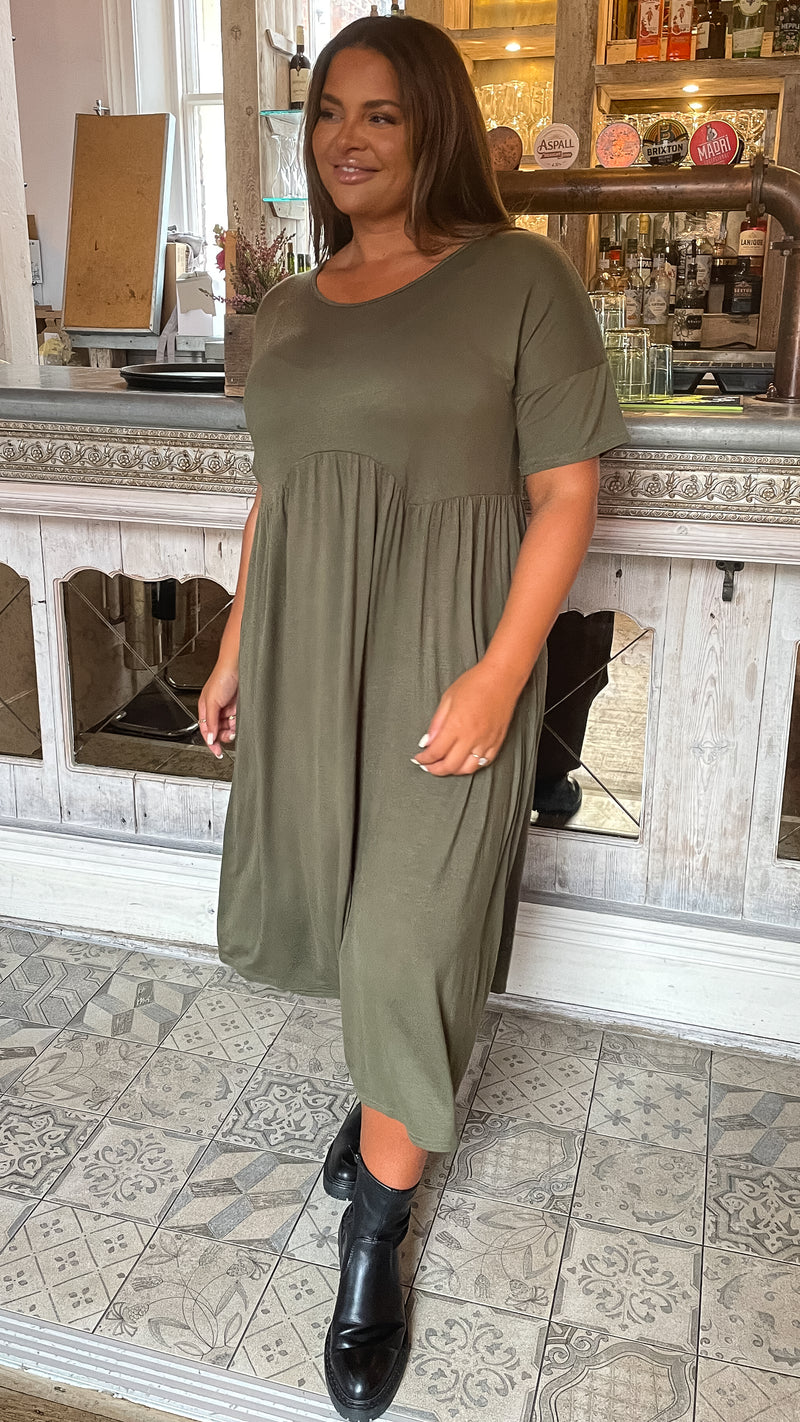 CurveWow Drop Shoulder Shaped Waist Midi Dress Khaki