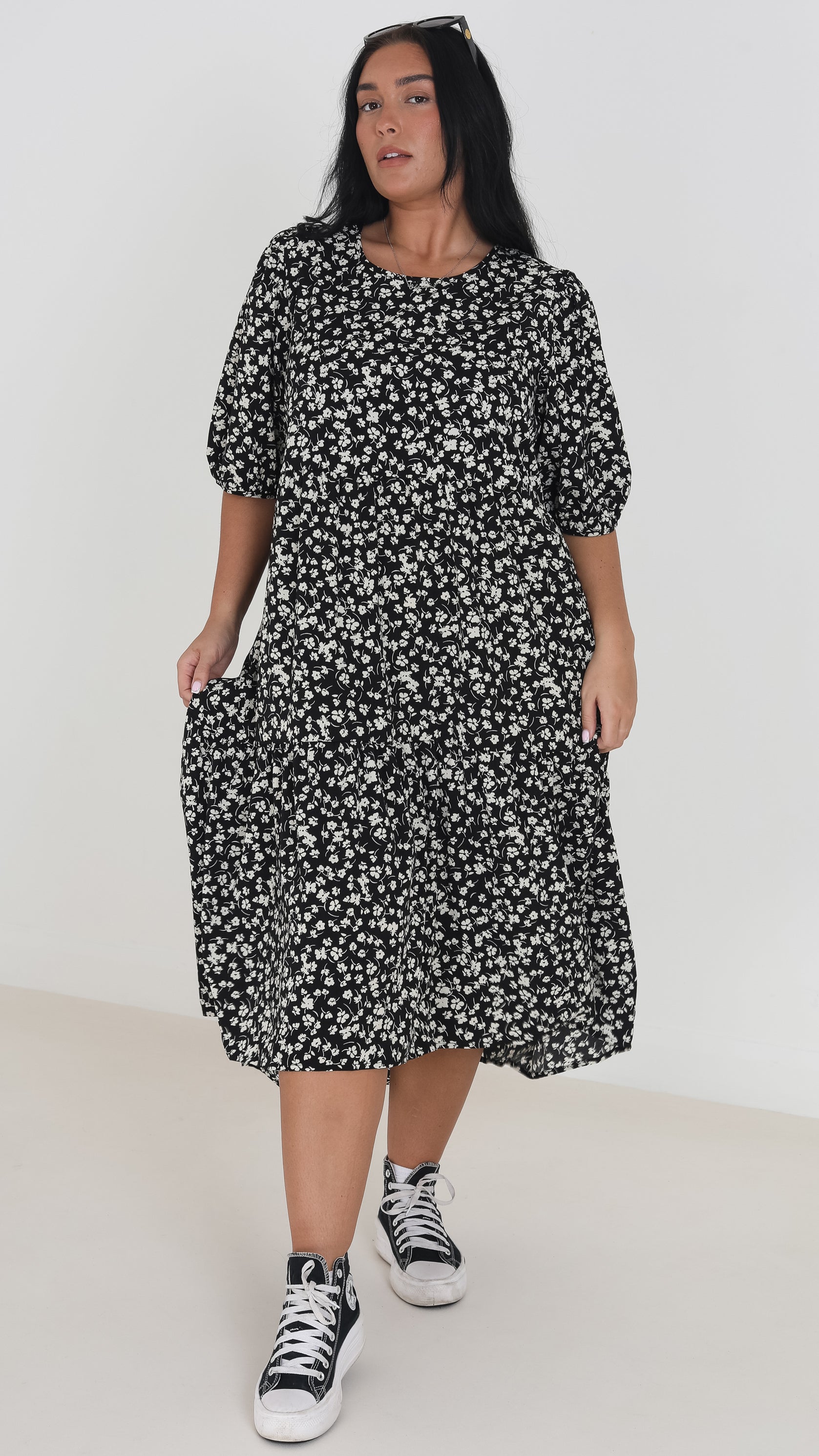 CurveWow Cowl Neck Maxi Dress Black Floral