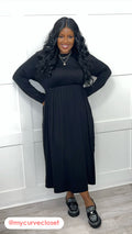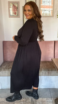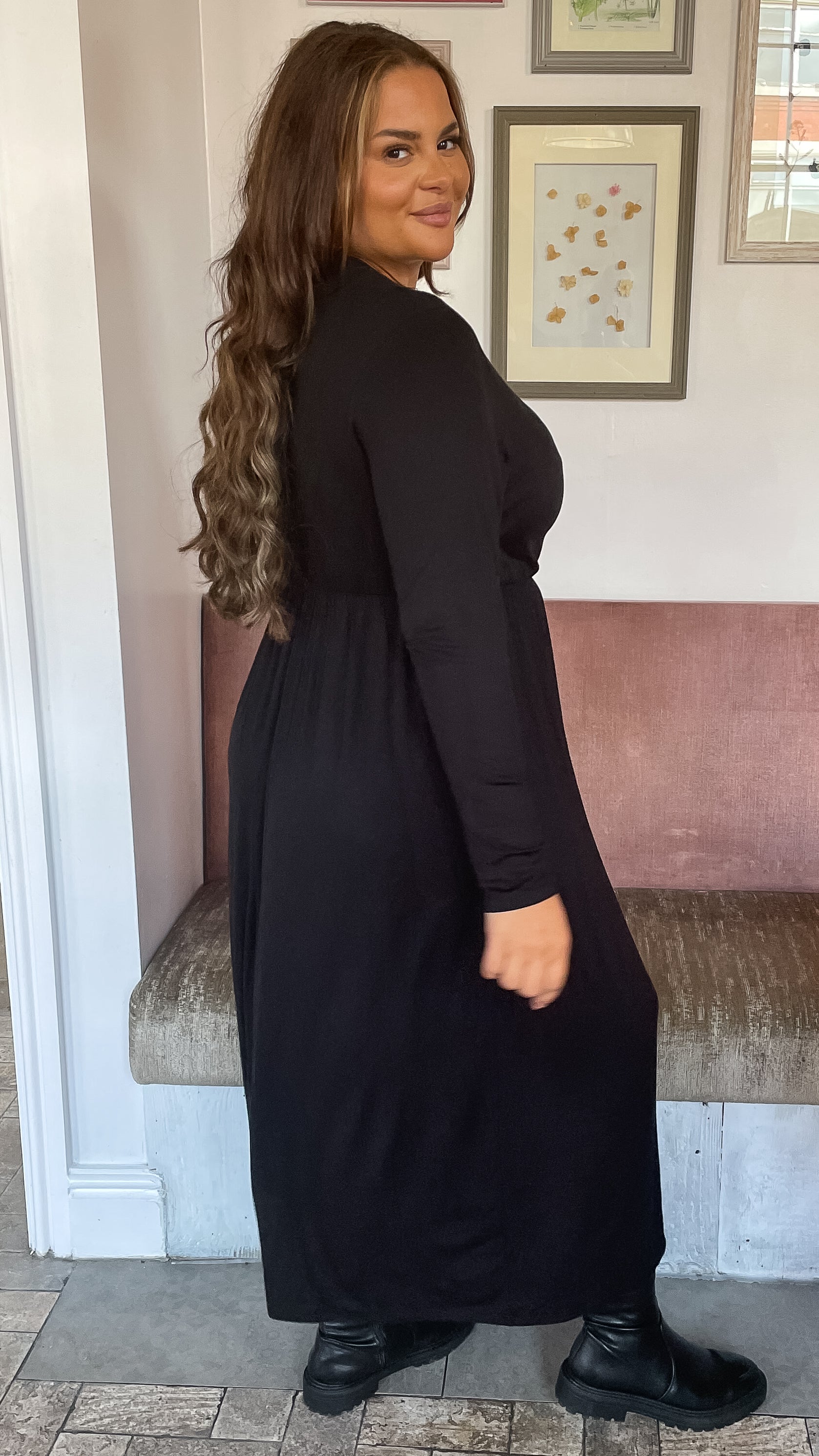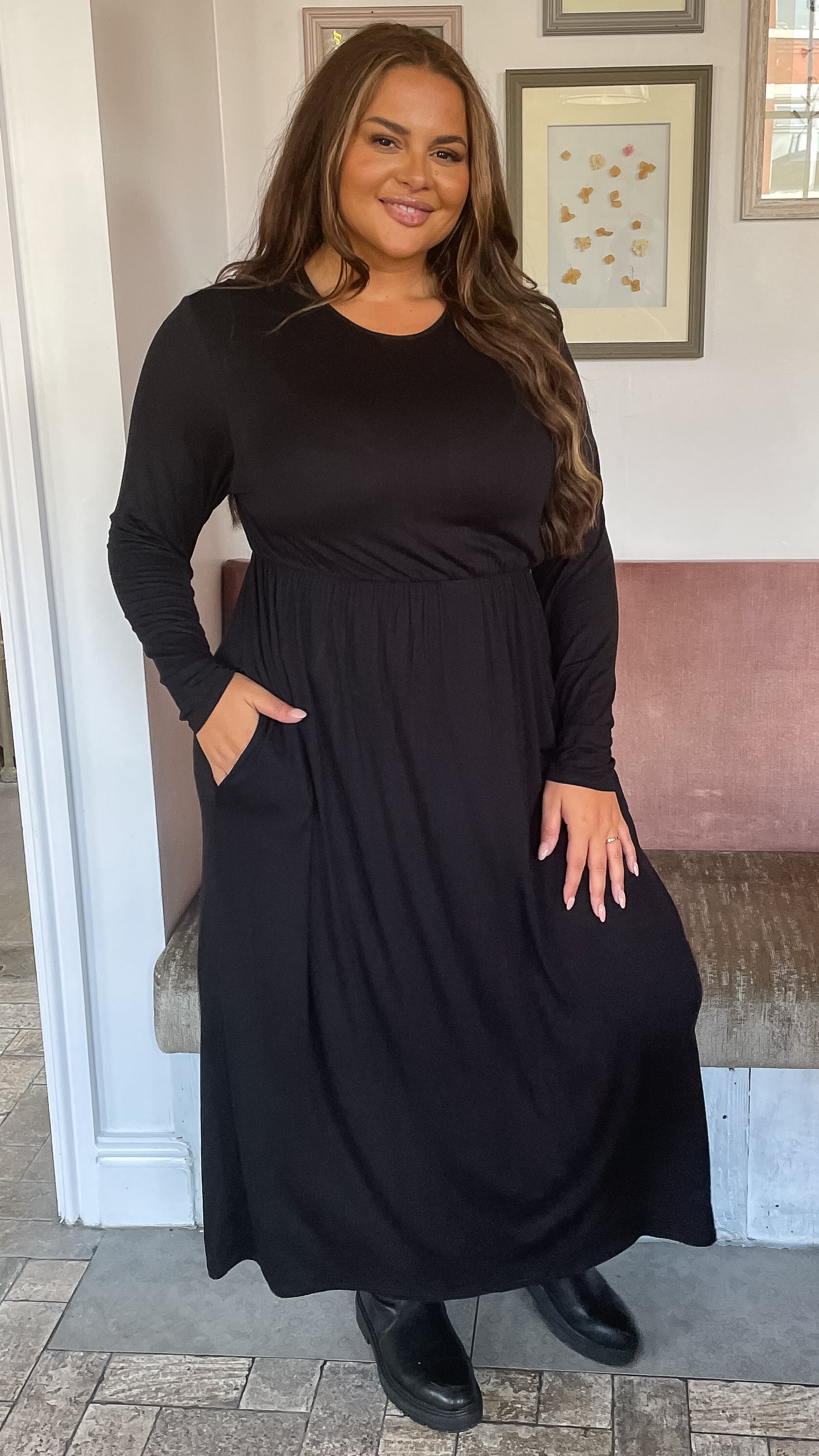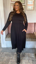 CurveWow Long Sleeve Jersey Pocket Midi Dress Black