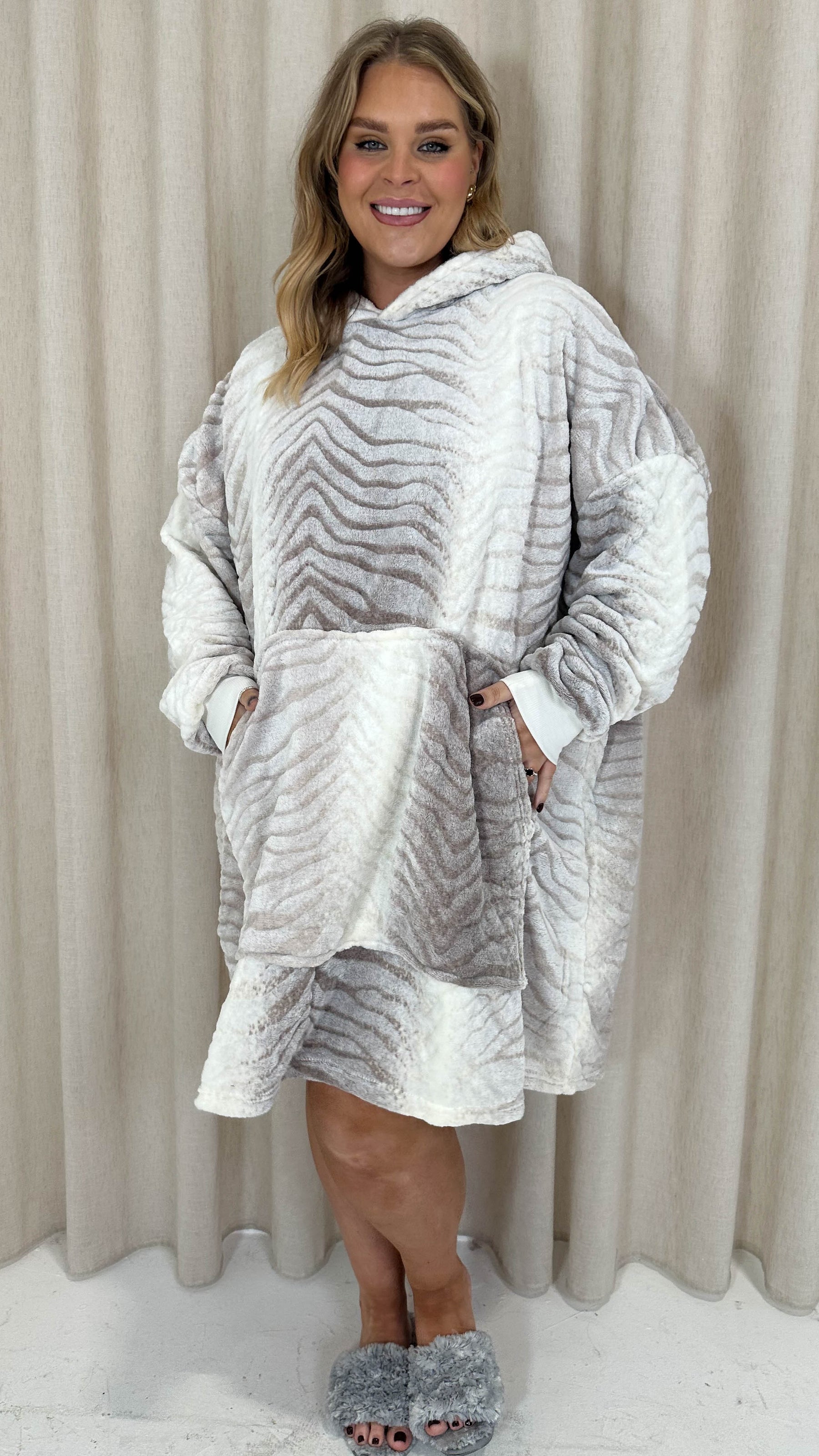 Luxury Fleece Snuggle Hoodie Ombre Taupe Tiger Print
