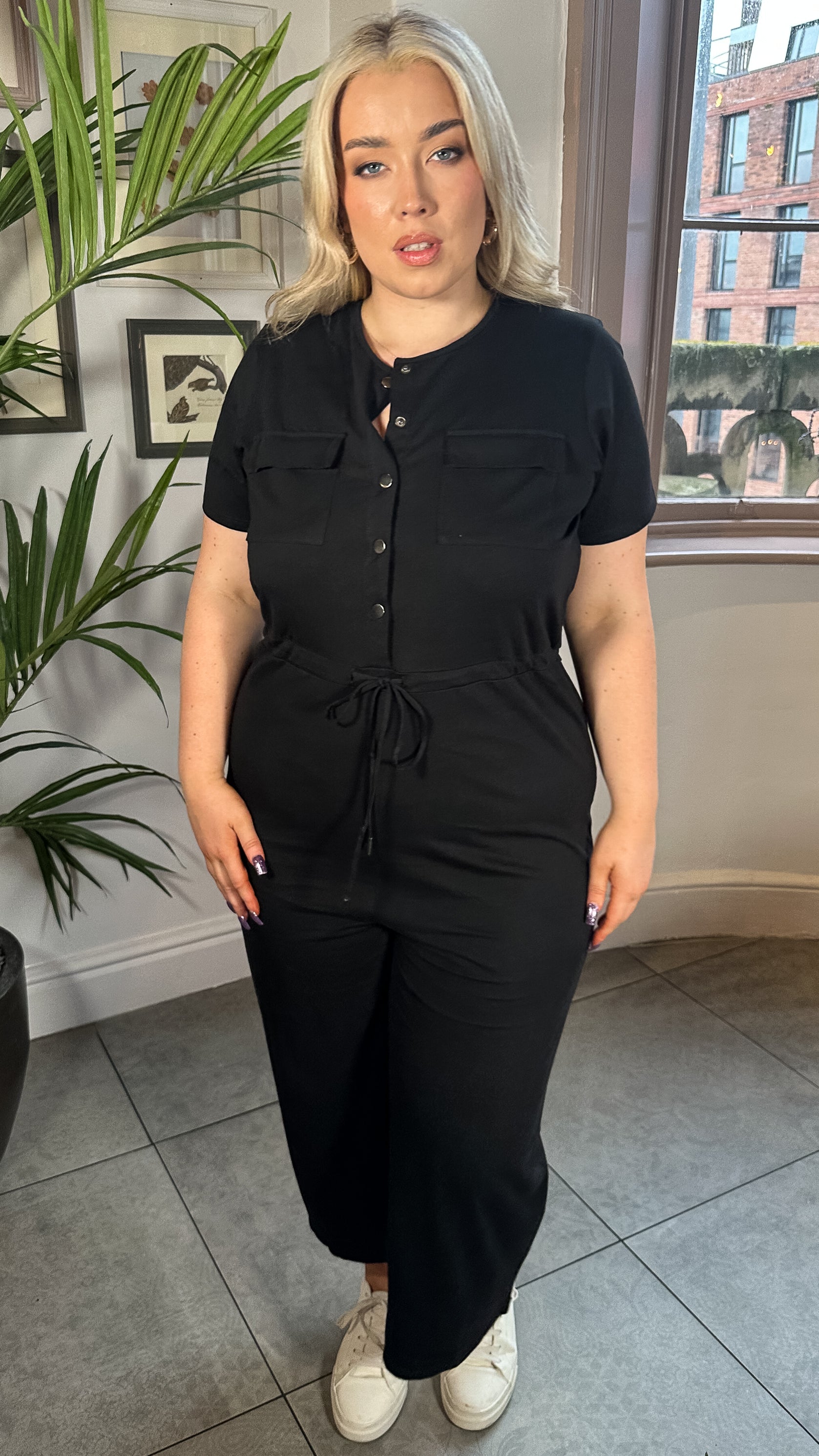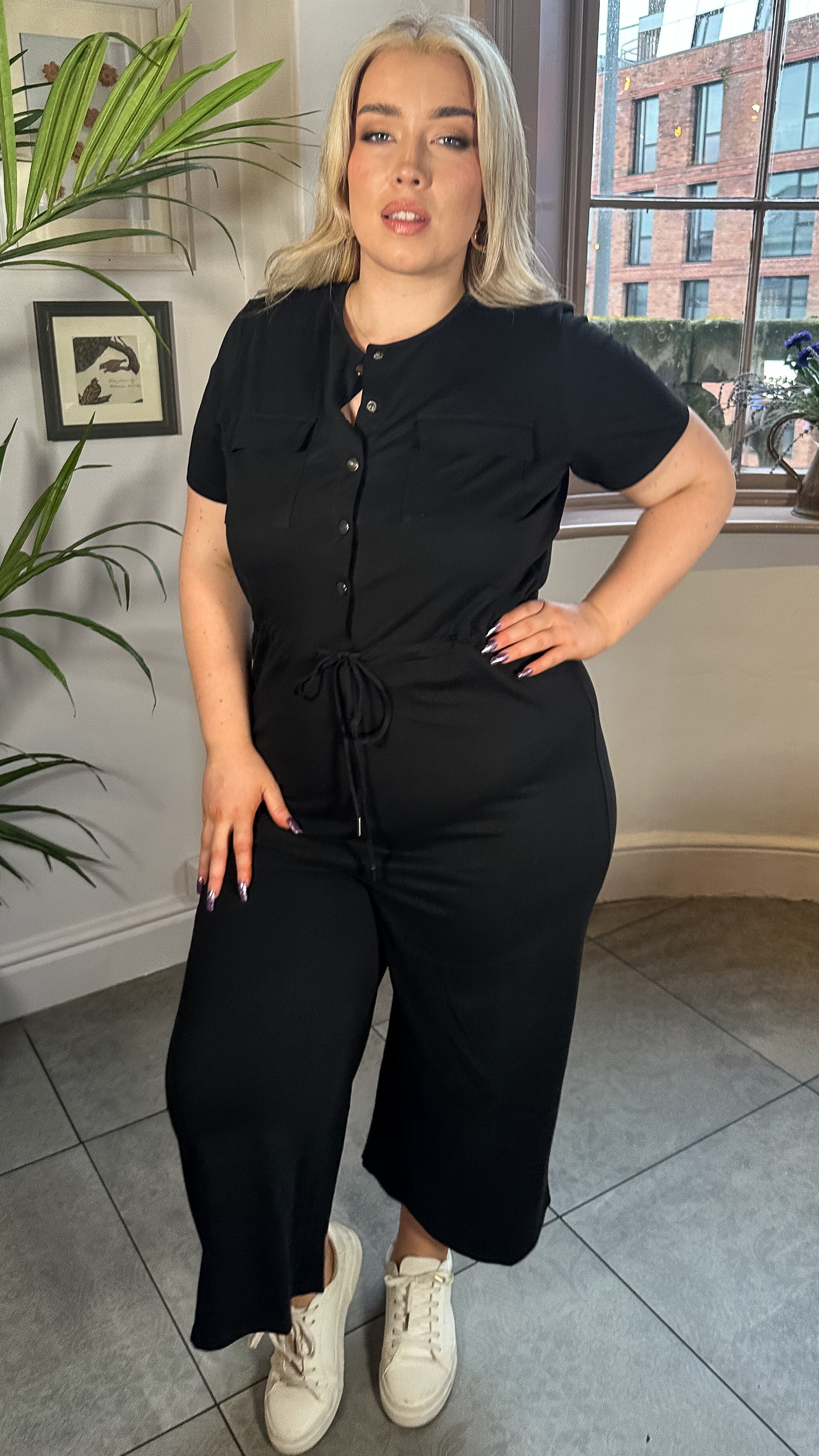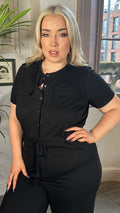 CurveWow O-Ring Milkmaid Wideleg Jumpsuit Black