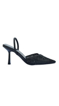 Wide Fit Diamante Sling Back Pointed Heel Black