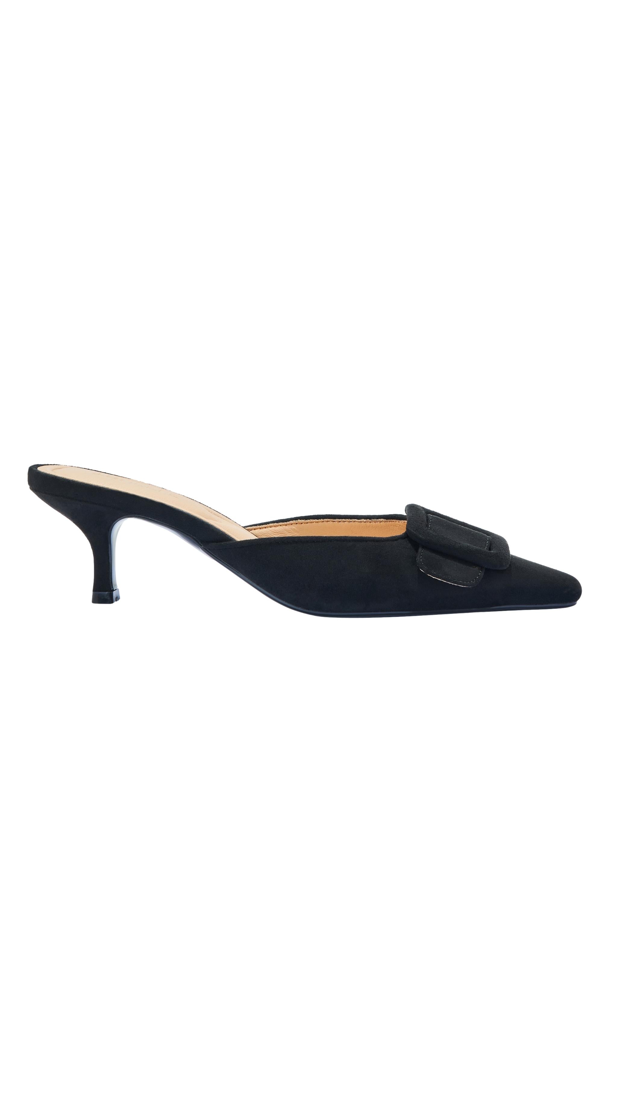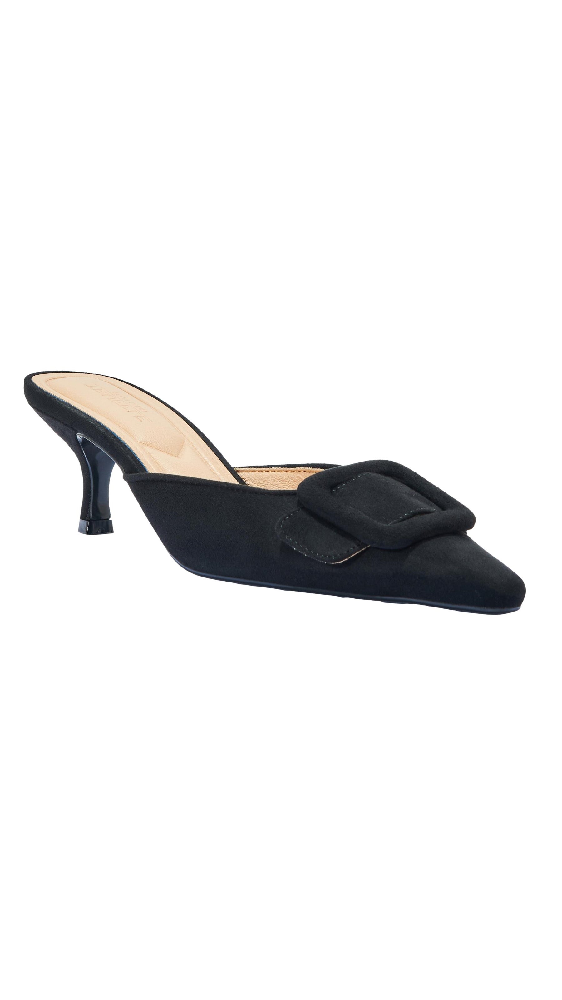 Wide Fit Faux Suede Buckle Pointed Mule Black